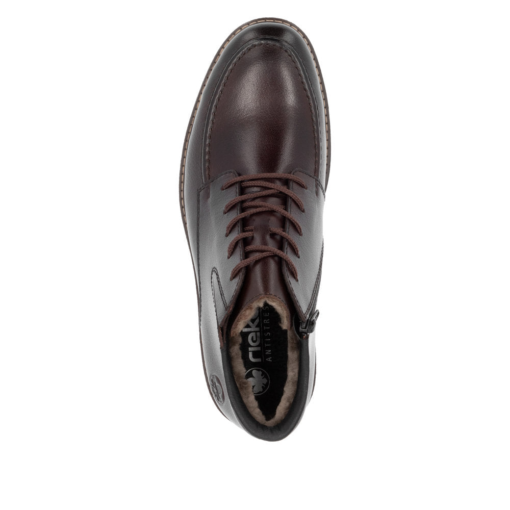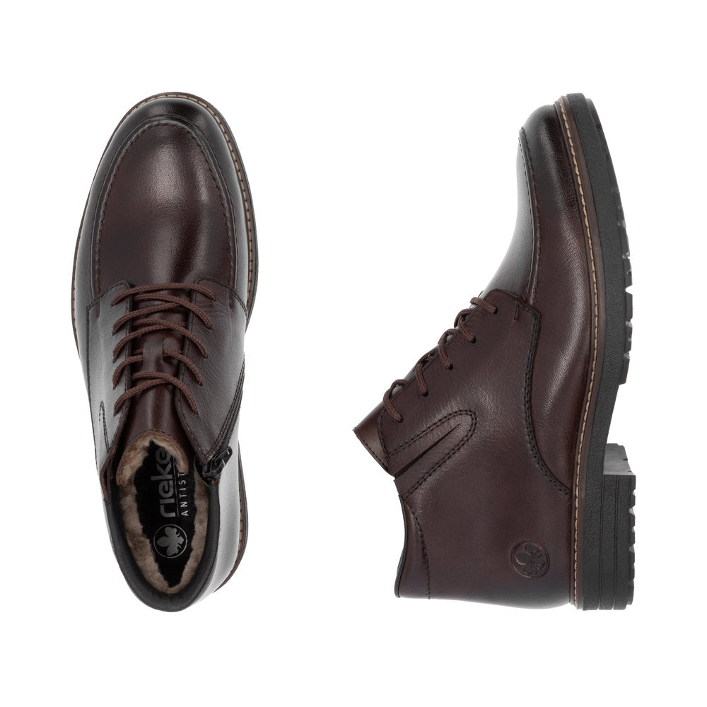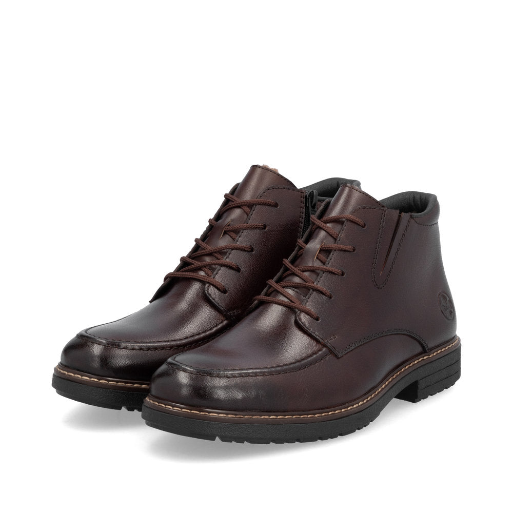 On the fashion radar! These dark brown Rieker lace-up boots are made of smooth leather and flatter your feet with a cloud-soft interior. The lacing complements the zipper for functionality and comfort. The grippy sole convinces all along the line and the cover sole is extra soft. Thanks to the comfort width G 1/2, there is enough space in the forefoot area. Comfortably warm and moisture-regulating lamb fur keeps the feet warm all day long. So let's get going!