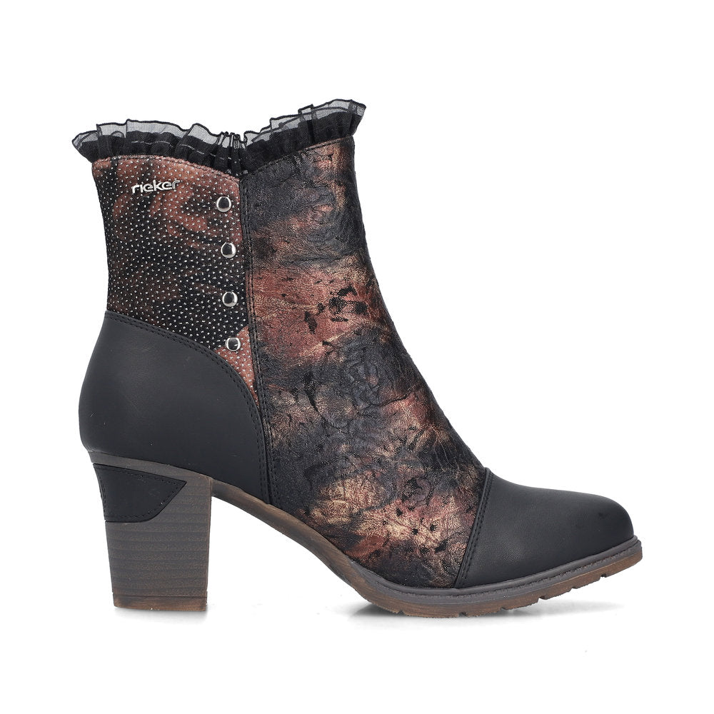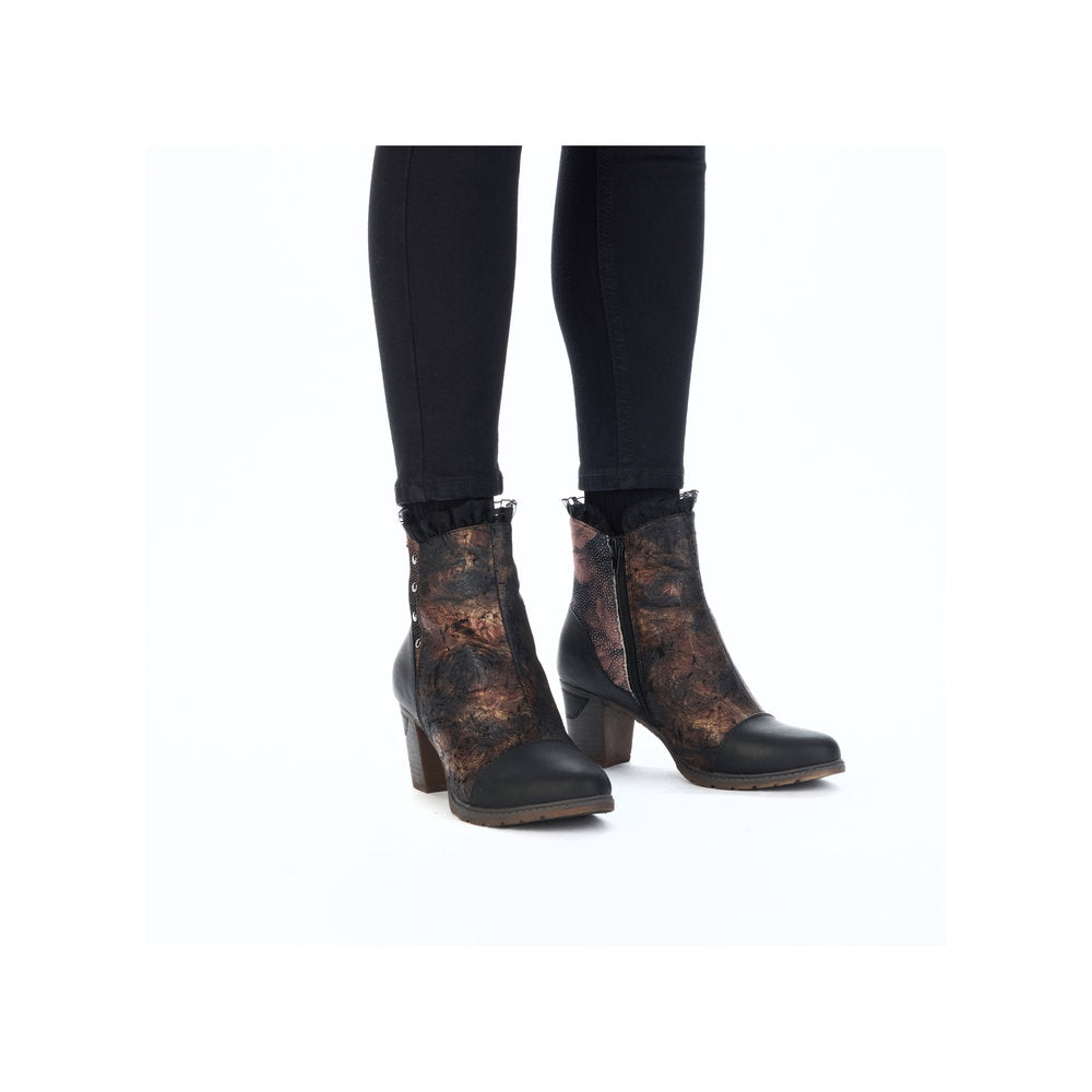 We love multi-coloured! These multi-coloured Rieker ankle boots not only look super fashionable, they also protect your feet from the cold. The zipper makes the shoe easy to put on and take off. The grippy sole with block heel gives good traction at every step. Cozy warm lining is guaranteed to keep the feet warm all day long. A nice side effect: you're a few centimetres taller!