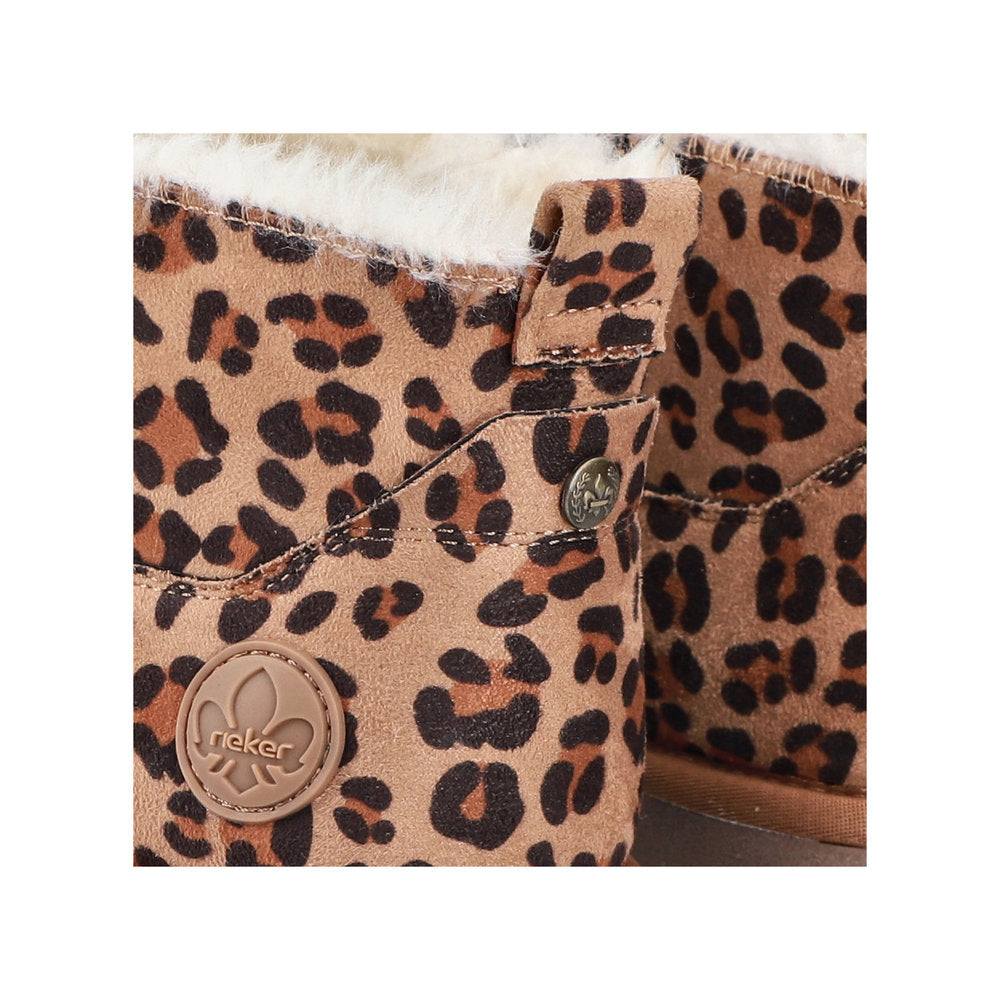 Always one step ahead! Freezing is a foreign word with these brown Rieker ankle boots. Made with the stitchdown construction, the model is robust, flexible and offers a perfect fit. The shoe has no fastener and can therefore be put on in no time at all. The leopard print effectively freshens up the design. The sole is grippy and ensures good traction at all times. The comfort width gives you more space in the shoe. Soft warm lining makes these boots the perfect companions - no matter when, no matter where! Well-being included!