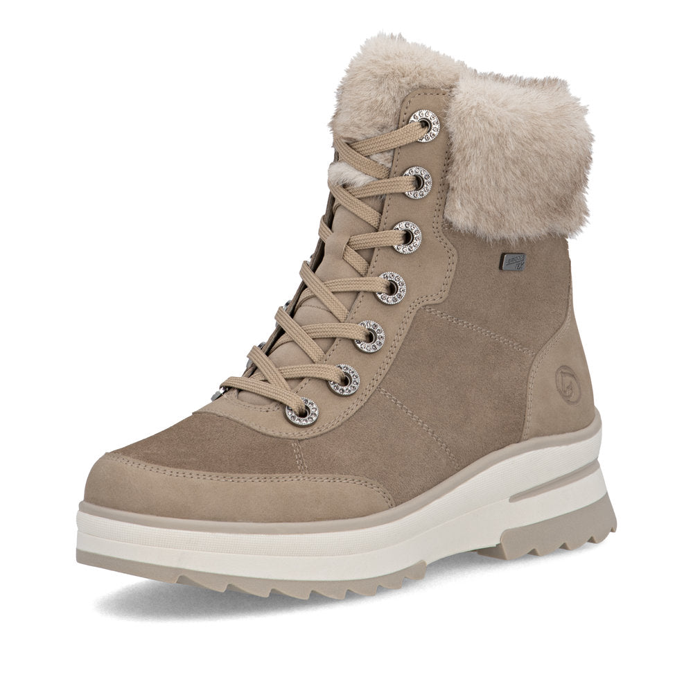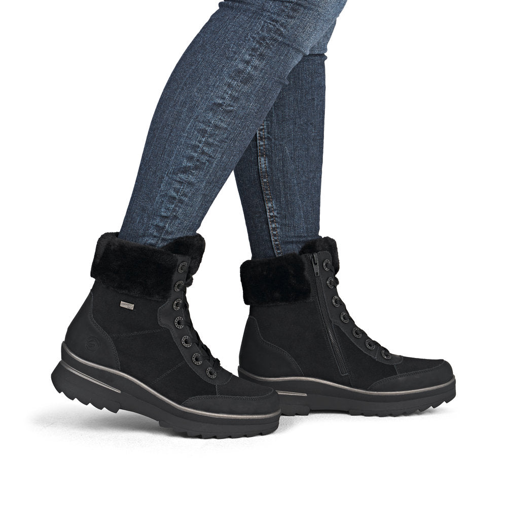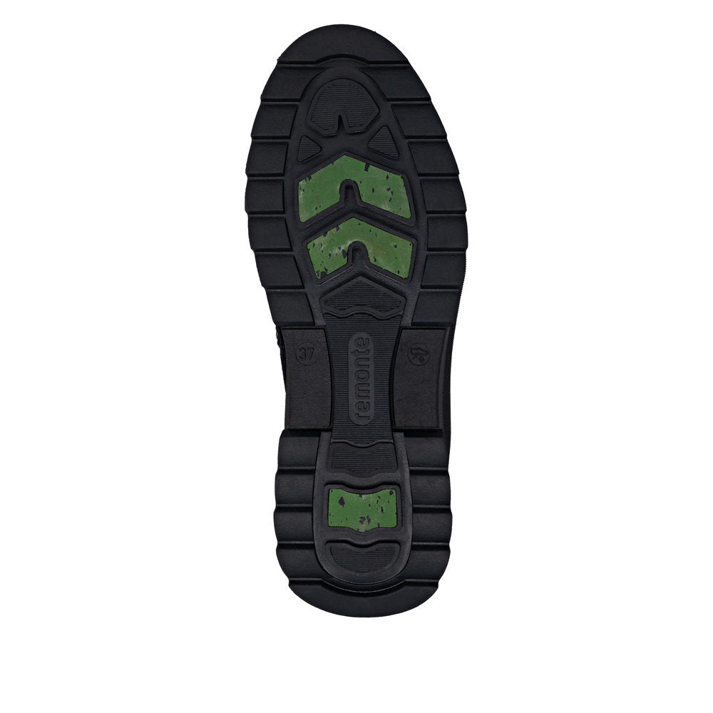 Classy chic! The black remonte lace-up boots made of suede leather are an absolute must-have in every shoe cupboard. Despite the lacing, the shoe can be easily closed by the zipper. The cushioning and grippy sole provides good support. The comfort width offers sufficient freedom of movement for the toes. The water-repellent upper protects against wetness, the thermal insole keeps the inside of the shoe warm and the Glass-Fibre technology provides extra grip. Brave the icy weather with style and comfort!