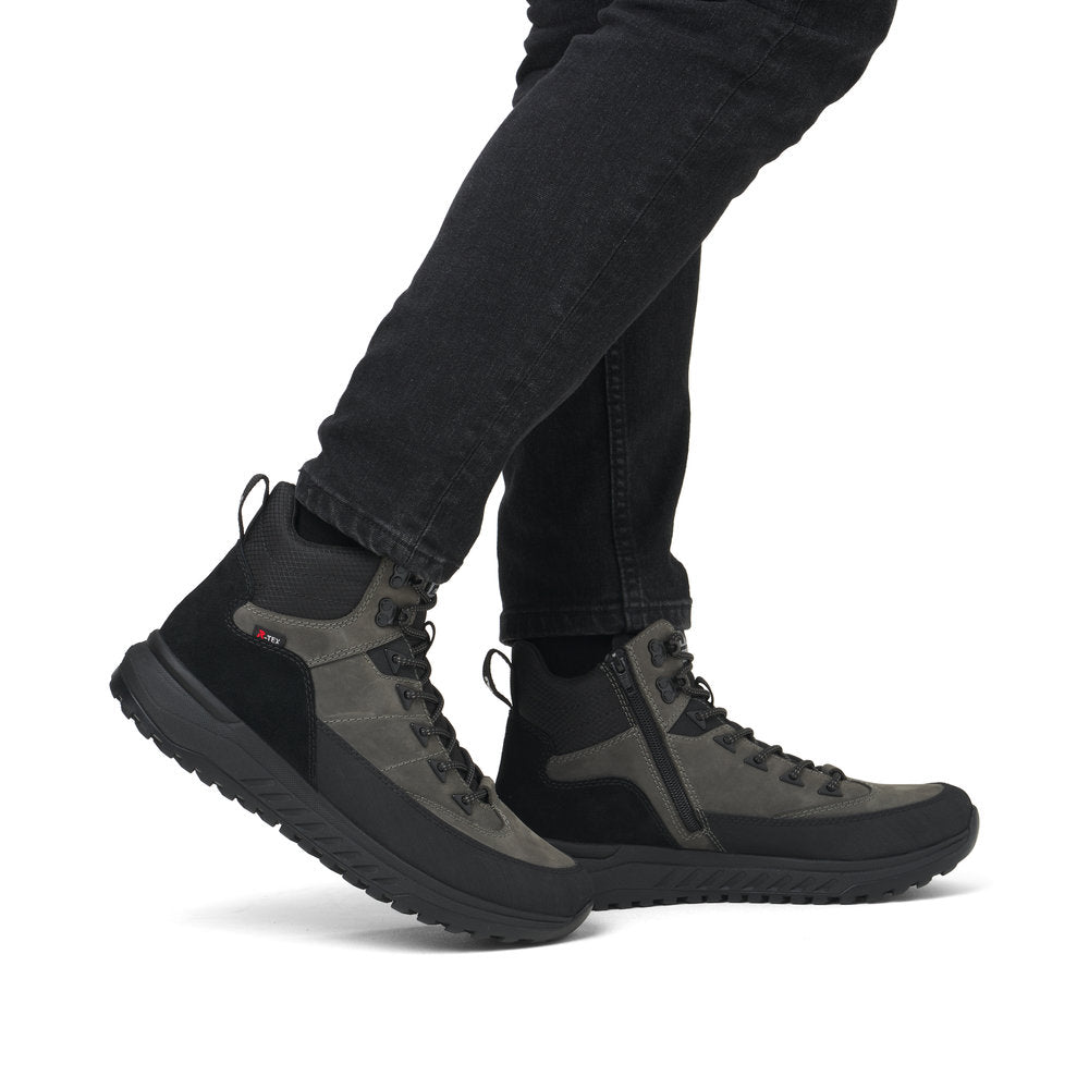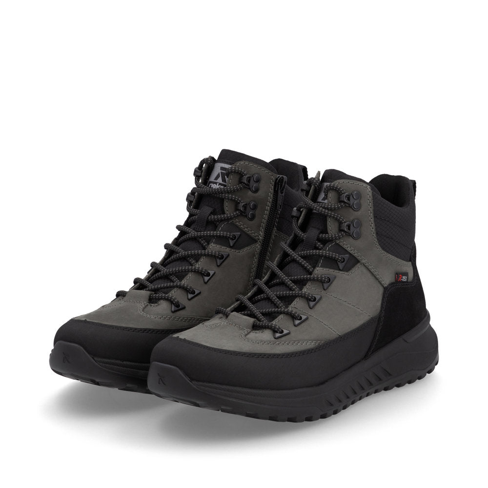 Wow factor! These Rieker high-top sneakers are the perfect companion for those who love practicality! The lacing complements the zipper for functionality and comfort. The super light and flexible sole offers lasting comfort - even on long days. Moreover, the comfort width G 1/2 offers your feet more freedom of movement in the forefoot area. Thanks to the water-repellent properties of the upper material, best weather protection is provided. The thermal insole keeps the inside of the shoe warm and the Fiber-Grip sole offers additional grip. The shoe is lined with cozy and very warm virgin wool, guaranteeing long-lasting protection from the cold. Very cool!