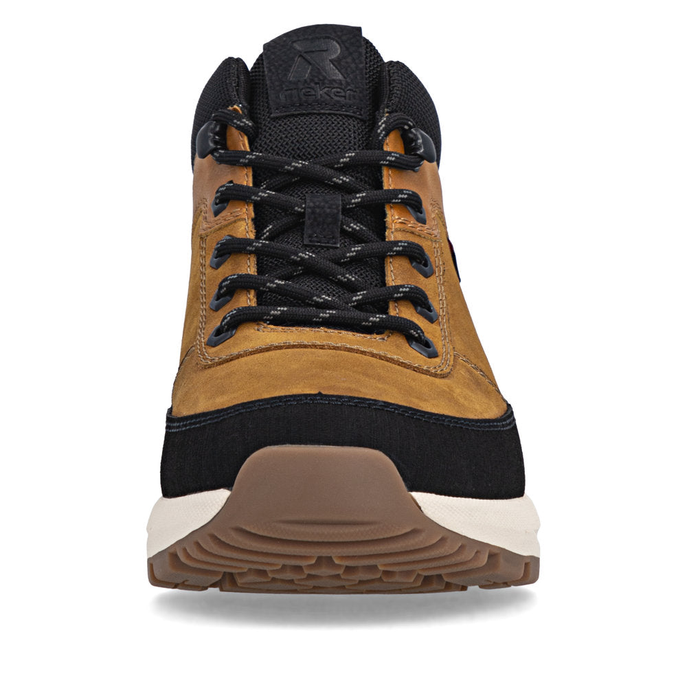 Fashionable must-have! These yellow black Rieker lace-up boots are stylish, comfortable and functional for cold days. The lacing also makes the shoe perfectly adjustable. With the very light and flexible sole, your feet will be pampered at every step. The comfort width offers sufficient freedom of movement for the toes. Thanks to the water-repellent upper material, protection against wetness and wind is provided, while the insole with thermal effect ensures warmth within the shoe. Your best buddies for the new season!