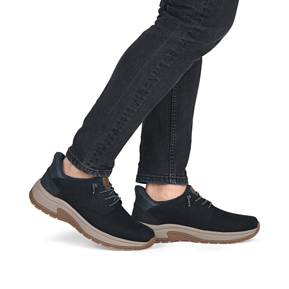More freedom of movement for the feet! These black Rieker shoes made of suede leather are super casual and totally comfortable. The elastic bands allow for easy donning. The sole is both flexible and very light, offering a double sense of well-being at every step. The shoe has a padded and removable insole, which is an impressive comfort feature. Thanks to the extra width, there is enough space in the forefoot area. Ready2GO: just slip them on, no hands and no creases - the stiff heel part keeps the shoe in shape! Just slip in and go!