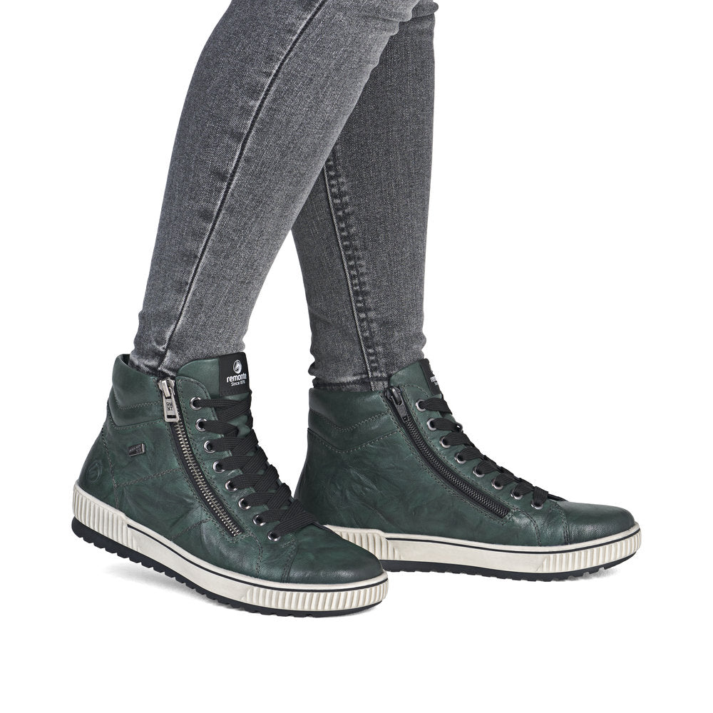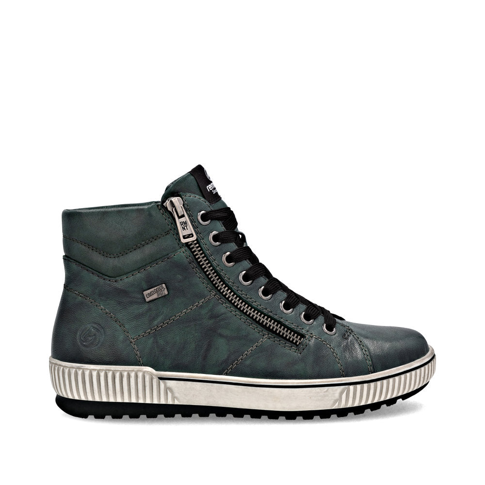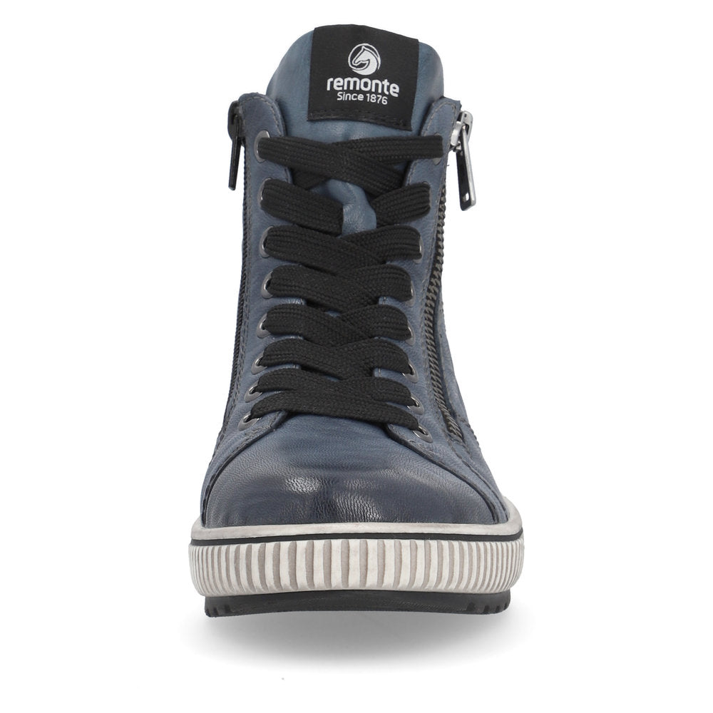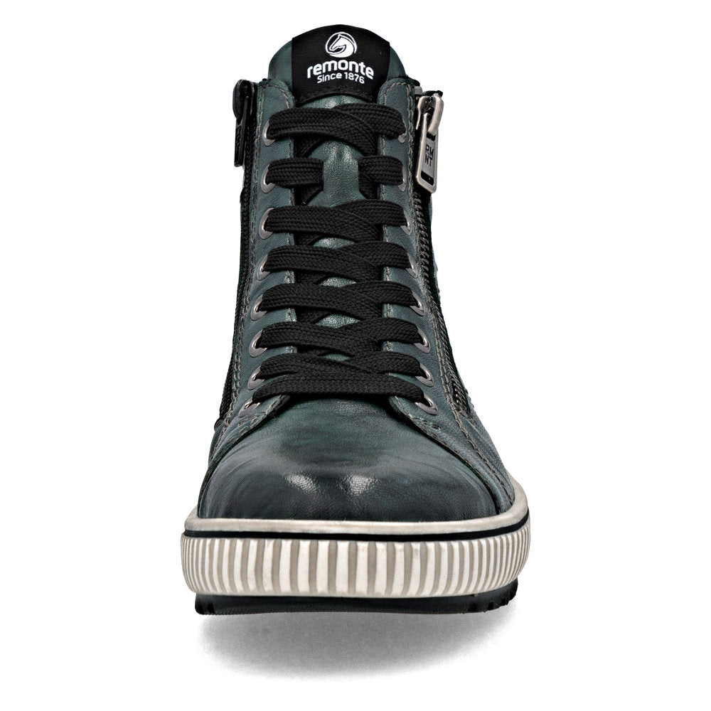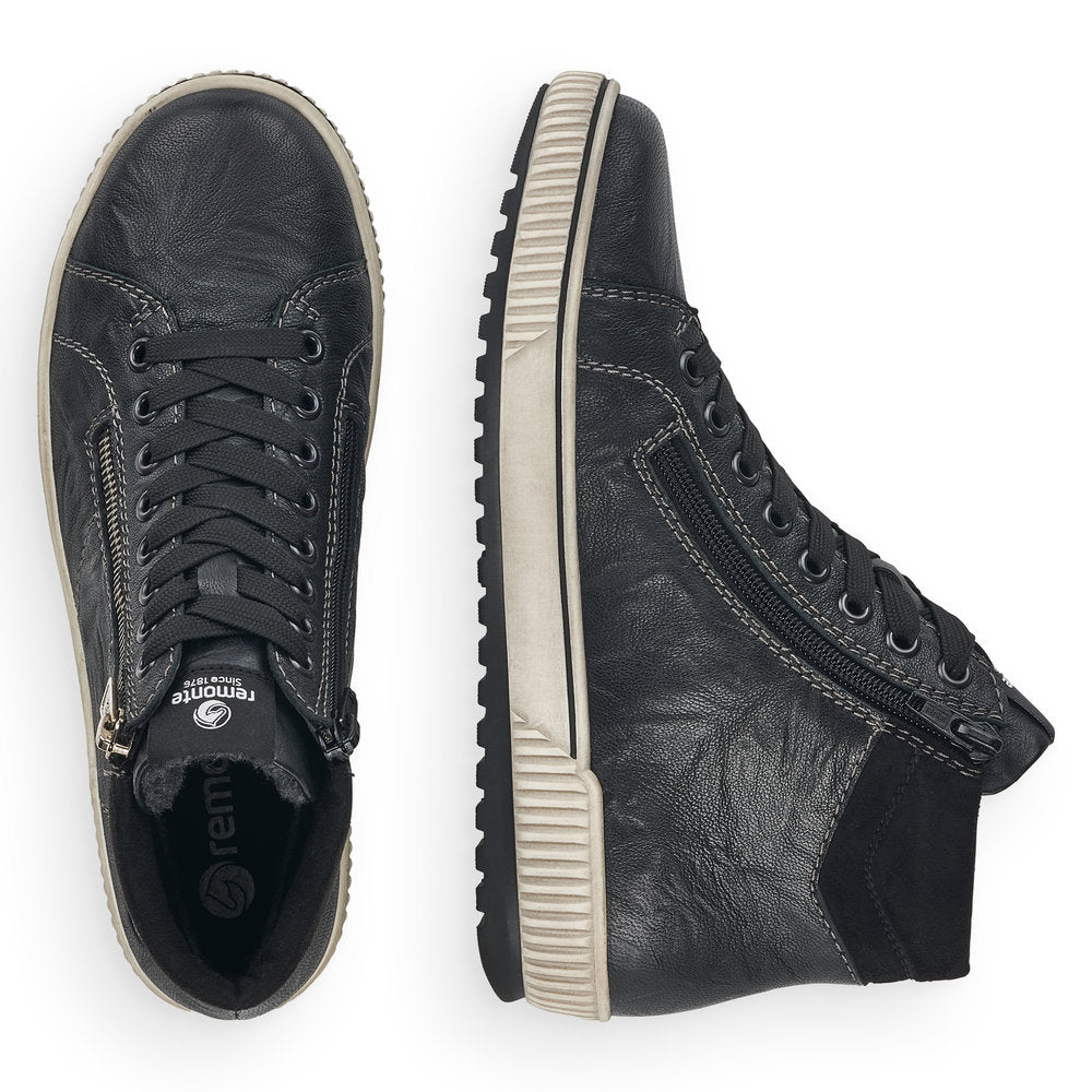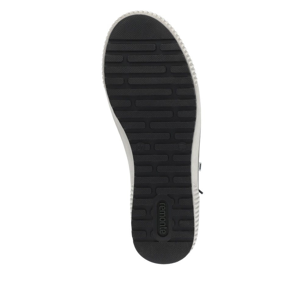 Clear the stage! These black remonte lace-up boots made of smooth leather know how to inspire. The lacing complements the zipper and thus guarantees optimal support and perfect fit. The contrasting beige stitching adds that certain something. The grippy and cushioning sole together with the padded and removable insole creates a feeling of well-being at every step. The comfort width gives you more space in the shoe. Thanks to the remonteTEX technology, the boots are water-repellent and therefore suitable for any weather. You can't get more style than this!