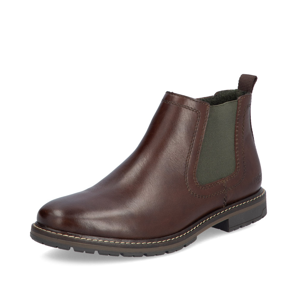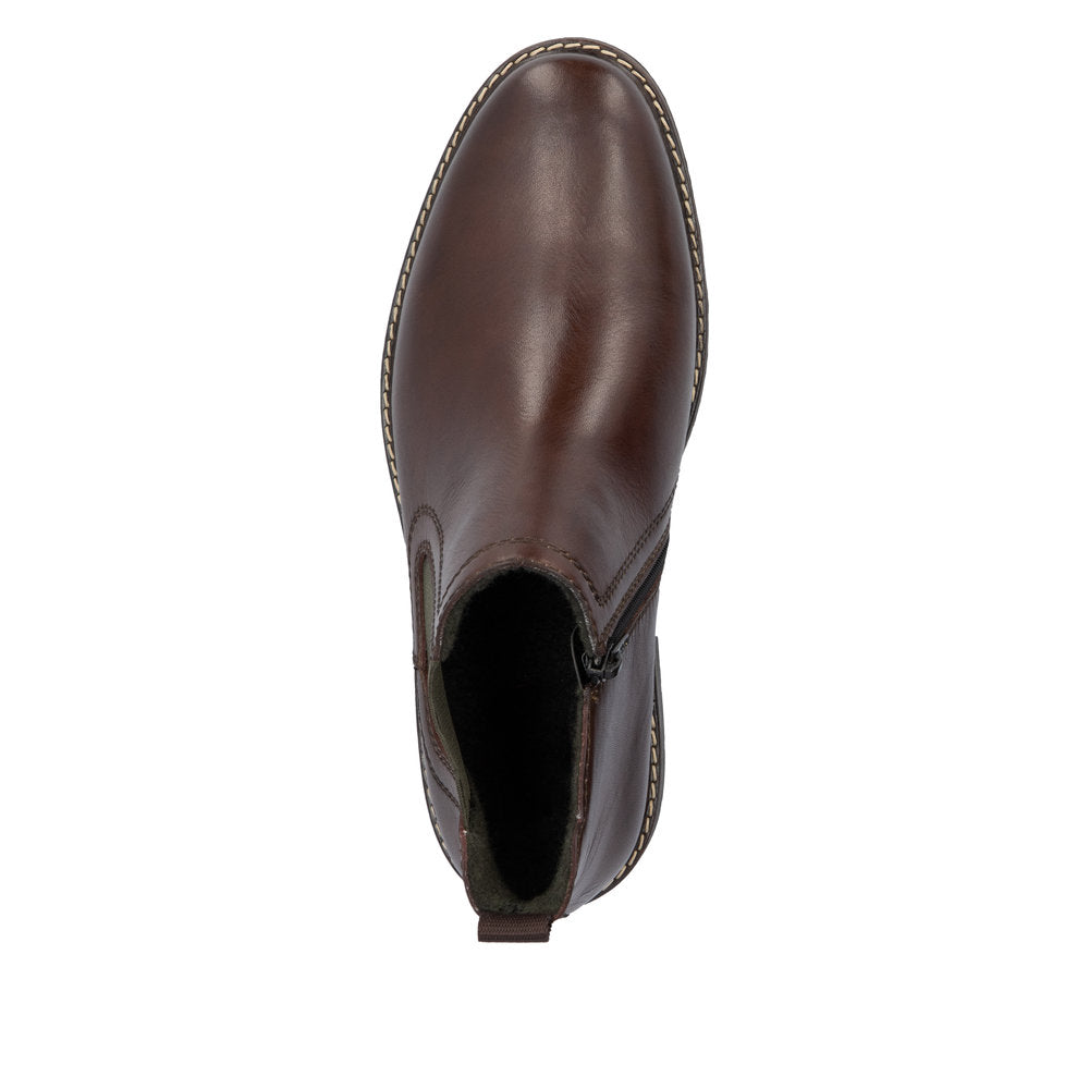 More space for your feet! These wood brown Rieker Chelsea boots are made of smooth leather and score points with their classic and sporty design. In addition to the zipper, the model has an elasticated shaft edge, making it easy to put it on. The grippy sole provides optimal support at every step of the way. Another plus is the extra soft cover sole. A feel-good factor on top is the comfort width G 1/2, which offers more space in the shoe. Wait for what?