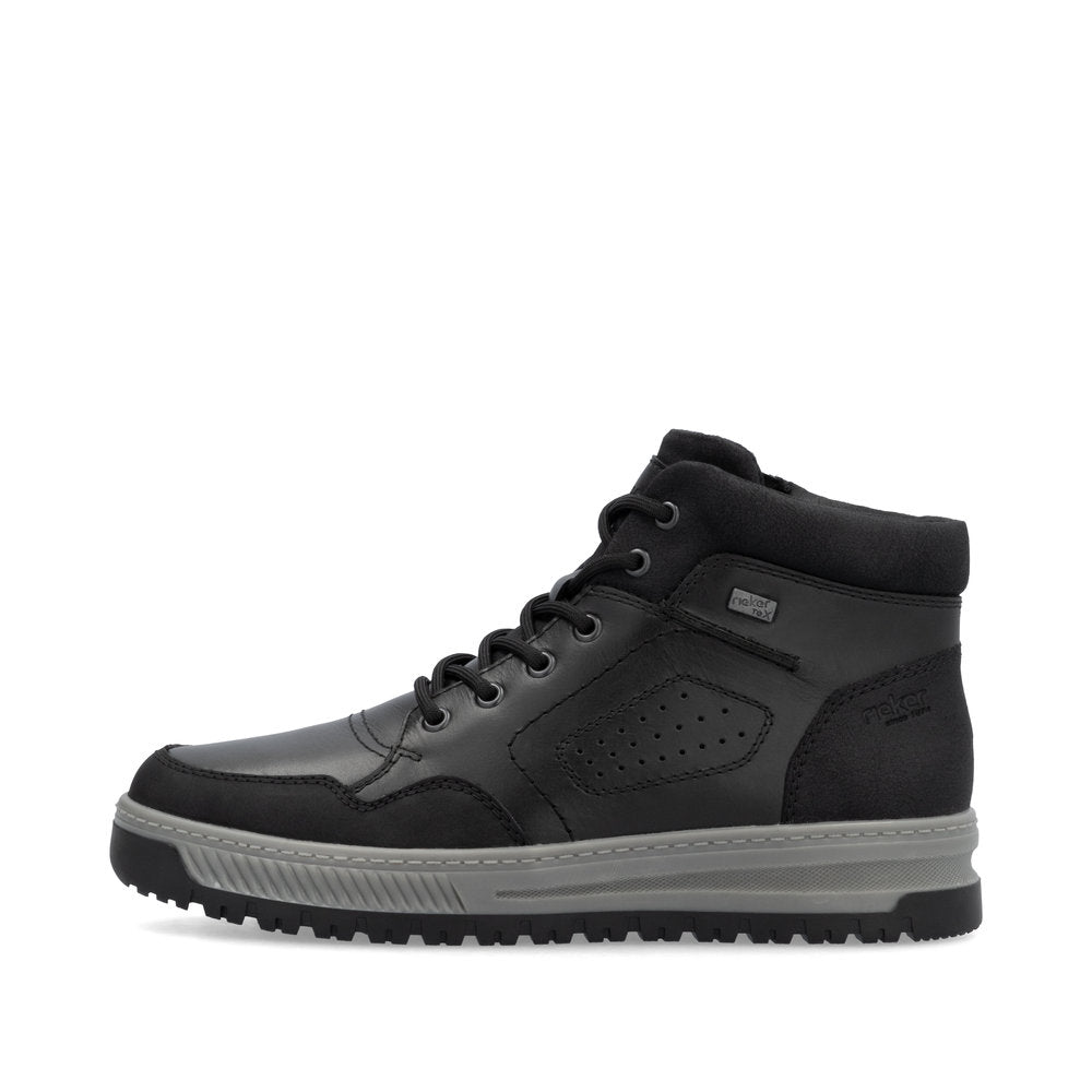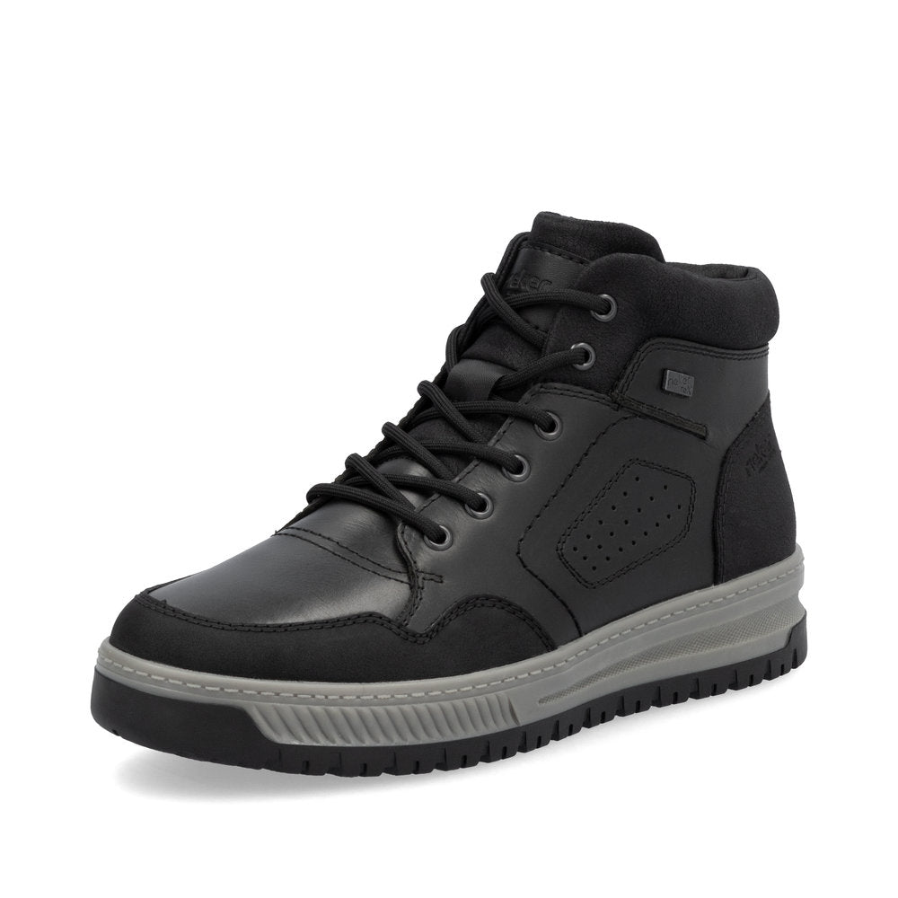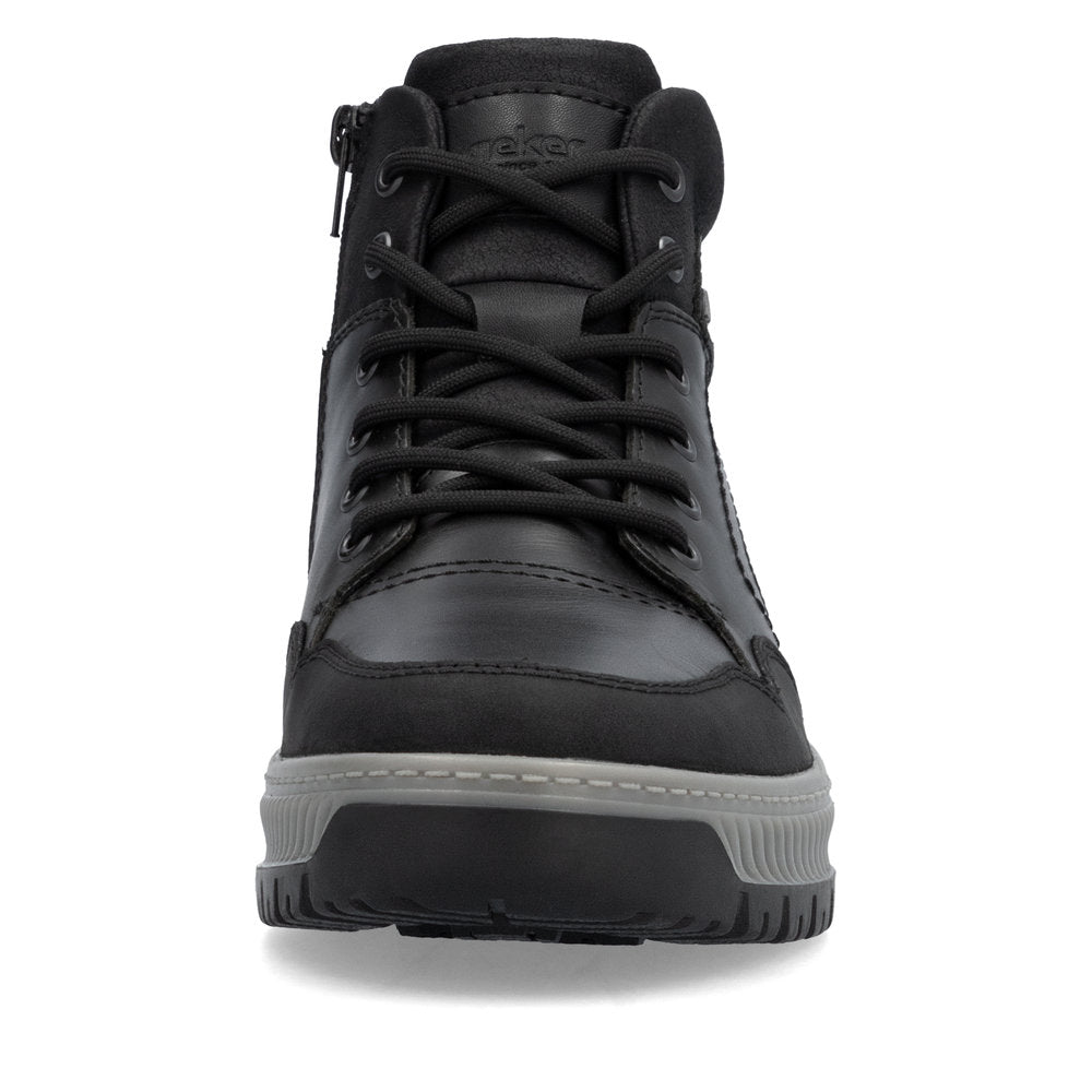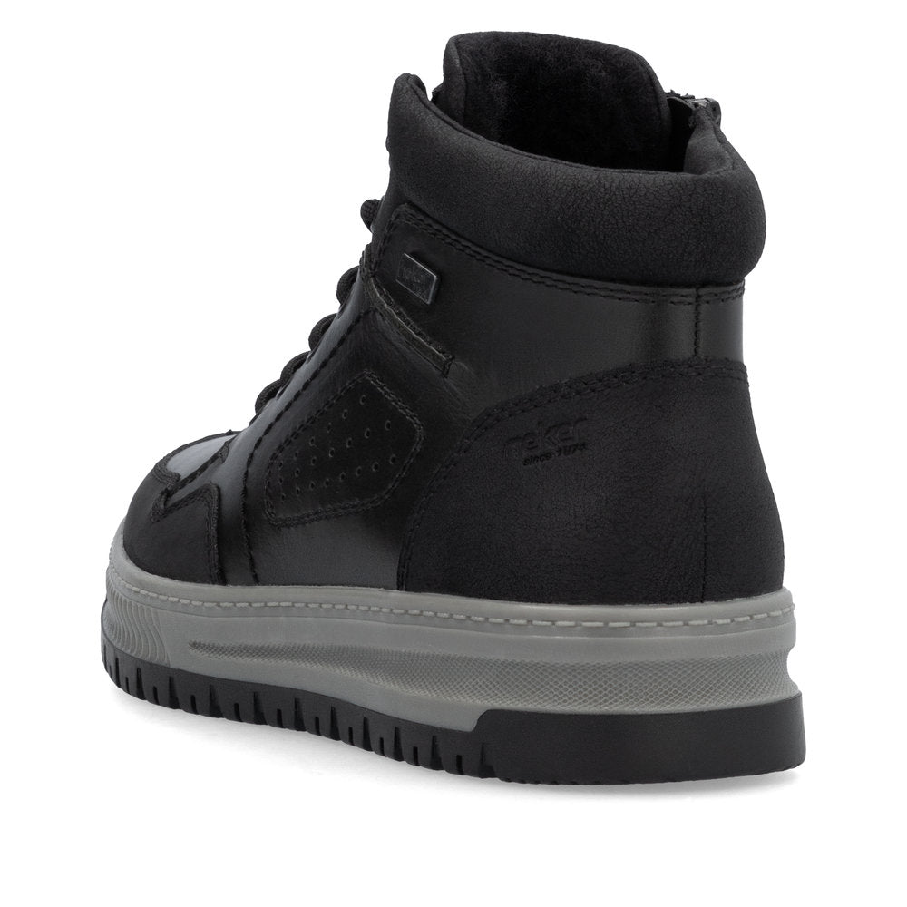 Comfort meets style. Freezing is a foreign word with these urban black Rieker lace-up boots made of smooth leather. The lacing complements the zipper for functionality and comfort. The grippy sole gives sure-footedness at every step. In addition, the cover sole is extra soft. The extra width H gives the toes more freedom of movement. You are also one step ahead in terms of comfort with the water-repellent RiekerTEX membrane and the cozy and very warm virgin wool lining. All in one - top!