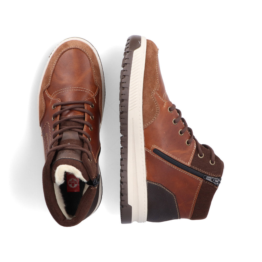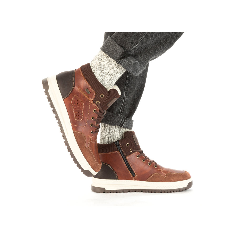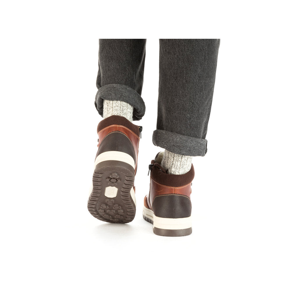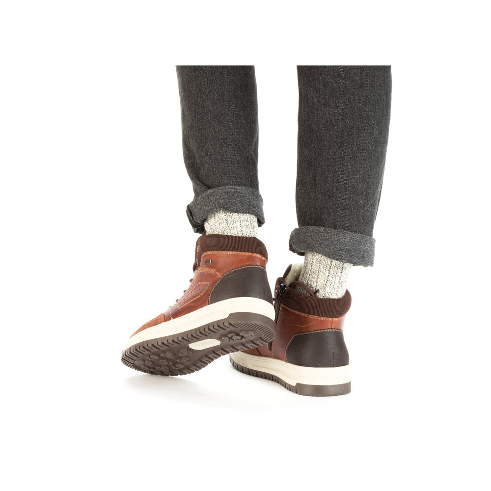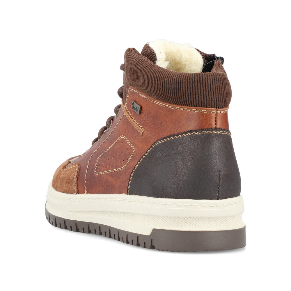 Comfort meets style. Freezing is a foreign word with these urban black Rieker lace-up boots made of smooth leather. The lacing complements the zipper for functionality and comfort. The grippy sole gives sure-footedness at every step. In addition, the cover sole is extra soft. The extra width H gives the toes more freedom of movement. You are also one step ahead in terms of comfort with the water-repellent RiekerTEX membrane and the cozy and very warm virgin wool lining. All in one - top!