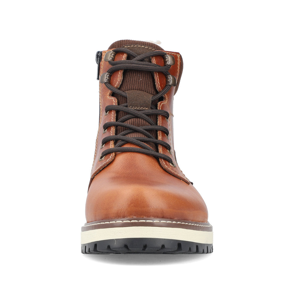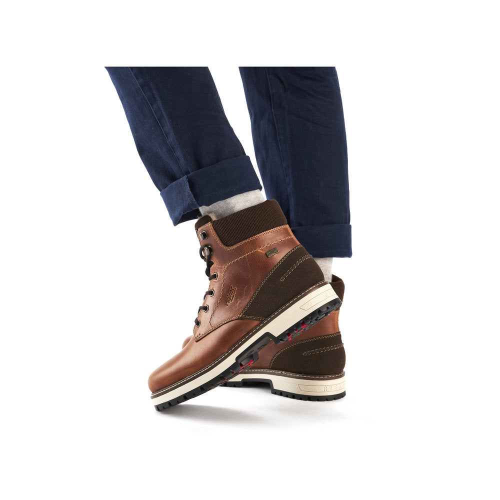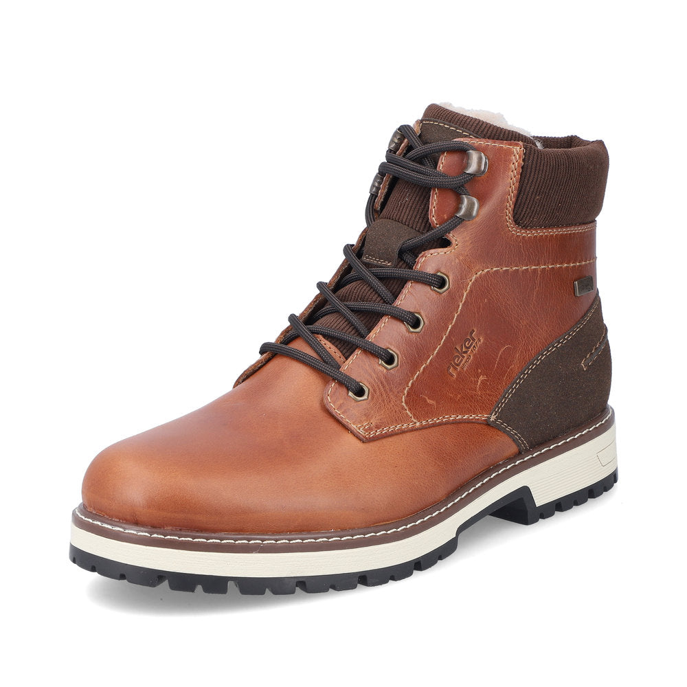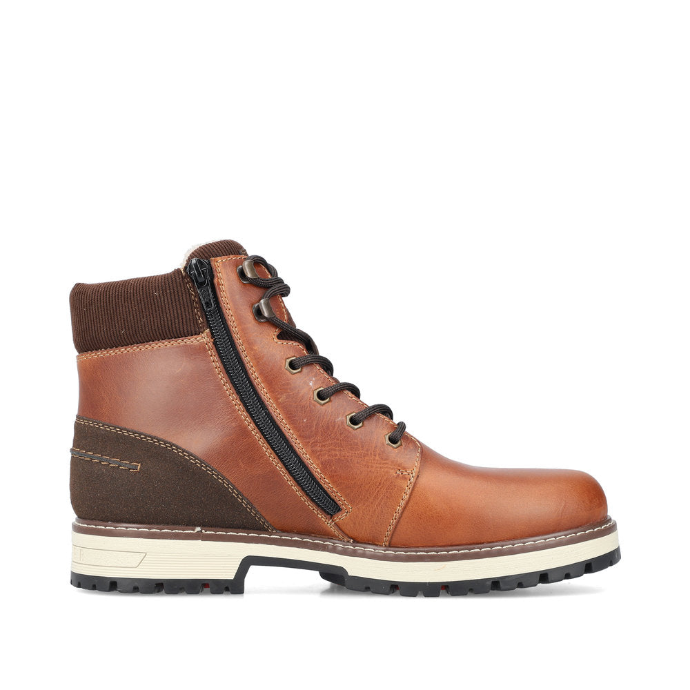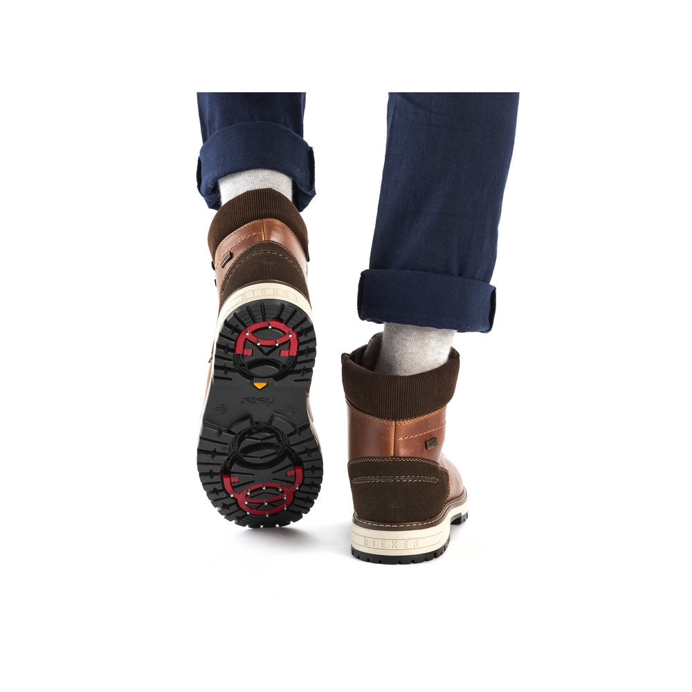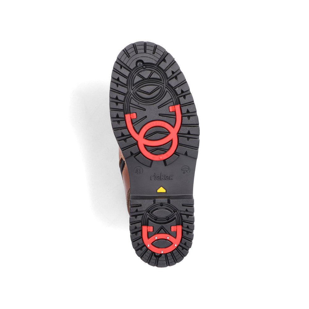 Holiday feeling for your feet! These maroon Rieker lace-up boots made of smooth leather guarantee a heavenly feeling. Despite the lacing, the shoe can be easily closed by the zipper. The used look provides the perfect finish and a striking look. The shoe has a grippy sole that impresses with good traction for a secure step. The lace-up boots are super comfortable thanks to the removable insole. The comfort width G 1/2 offers enough space for the feet to feel comfortable even when worn for longer periods. The water-repellent RiekerTEX membrane protects against wet feet and the fold-out spikes provide extra grip in icy conditions. Cozy and very warm virgin wool makes these lace-up boots the perfect companions no matter when, no matter where! Let's rock the cold days!