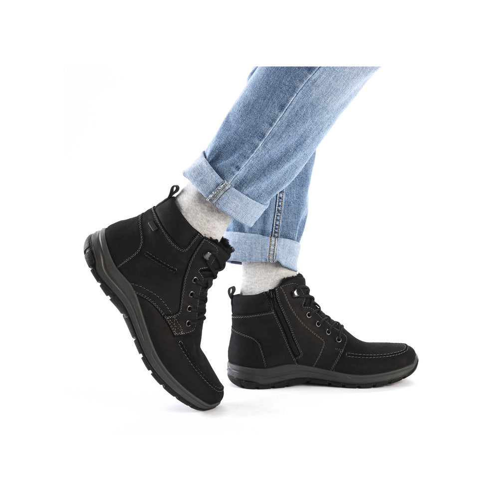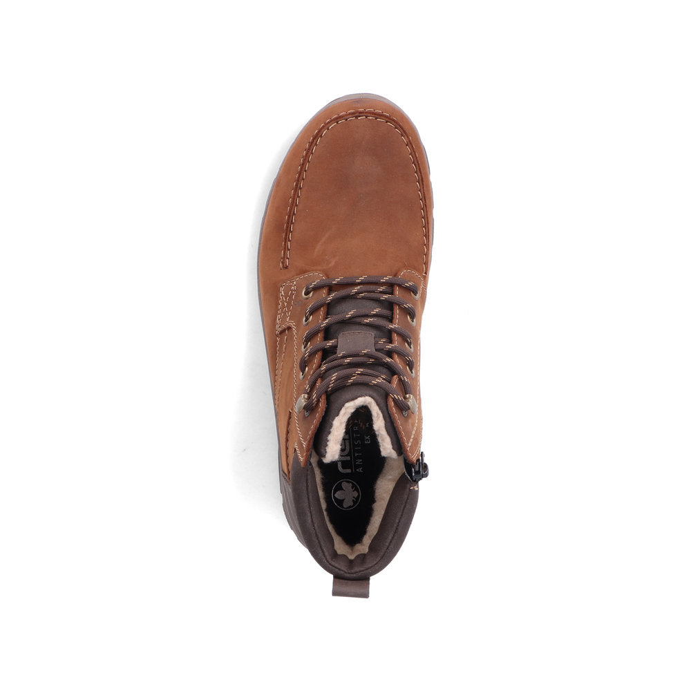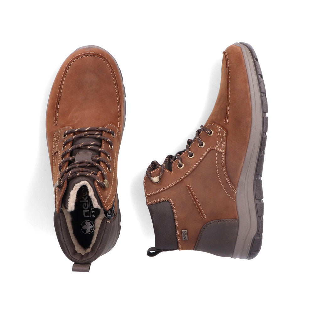 It doesn't get any cozier than this! Freezing is a foreign word with these nougat brown Rieker lace-up boots made of suede leather. The lacing complements the zipper and thus guarantees optimal support and perfect fit. With the shock-absorbing and light sole, your feet will be pampered at every step. The lace-up boots also score with a padded and removable insole. The model ensures additional freedom of movement for the foot, as it is cut in extra width H. Your feet are guaranteed to stay warm all day long thanks to the cozy lining and also dry thanks to the RiekerTEX technology. Wait for what?