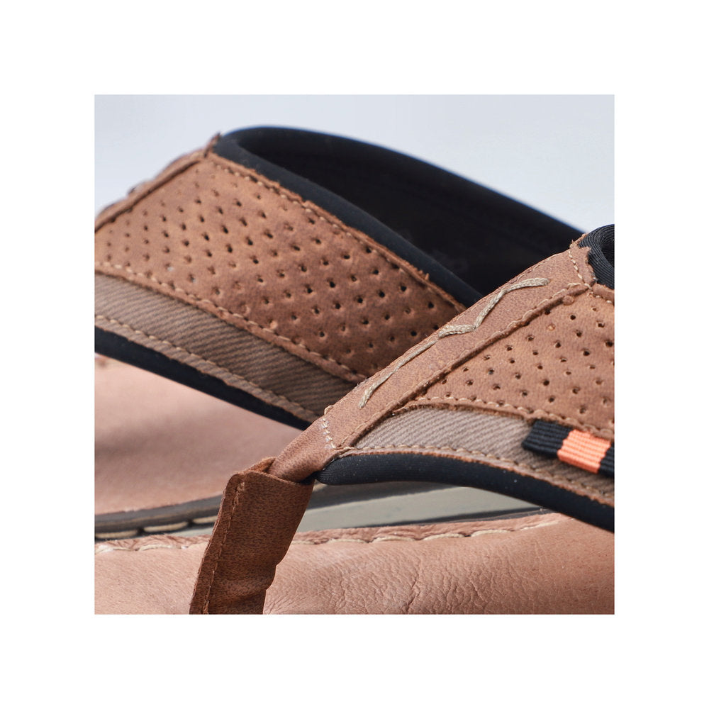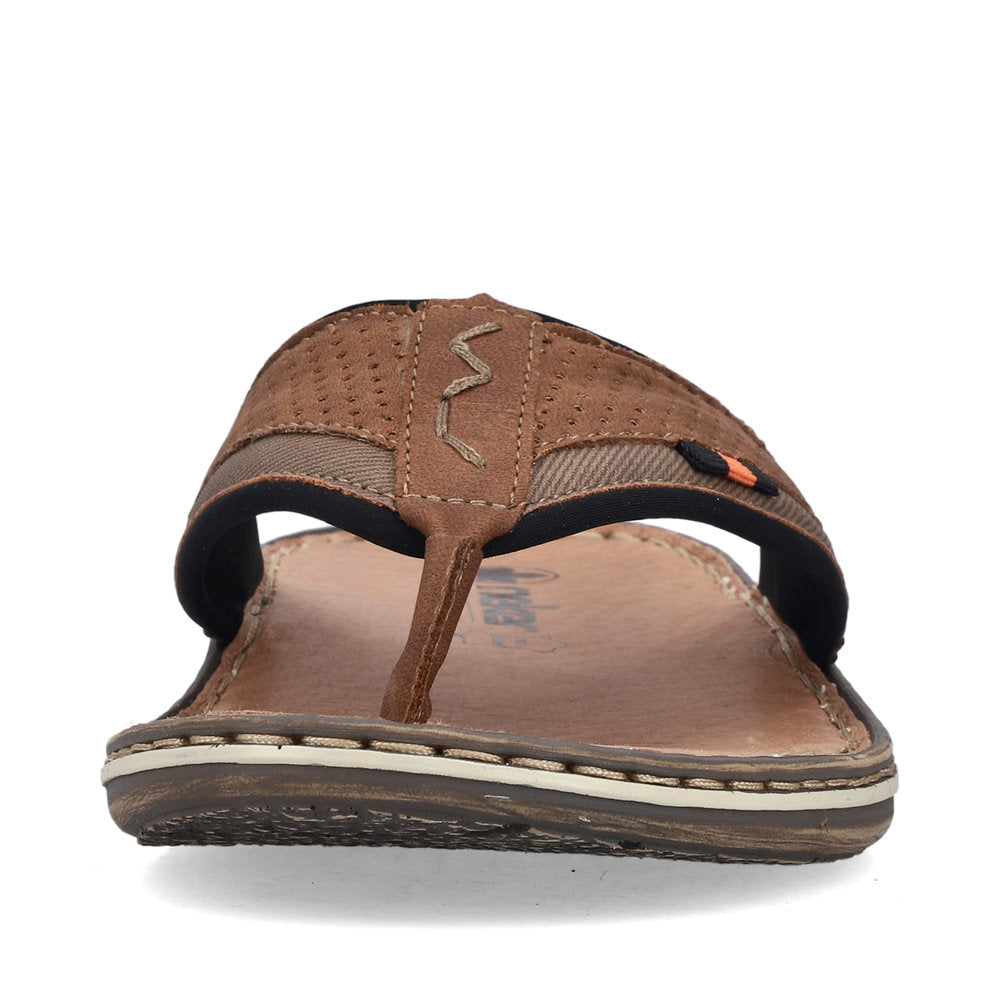 Holiday feeling for your feet! With these Rieker flip flops in brown you can look forward to the beautiful weather even more! Crafted with the traditional stitchdown construction, these shoes are robust, flexible, and provide an excellent fit. With no fastener, these shoes slip on effortlessly. With the shock-absorbing and light sole, your feet will be cushioned at every step. The comfort width offers the perfect amount of freedom of movement for the toes. Sought, found!