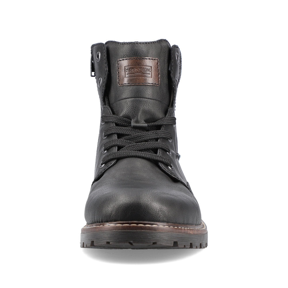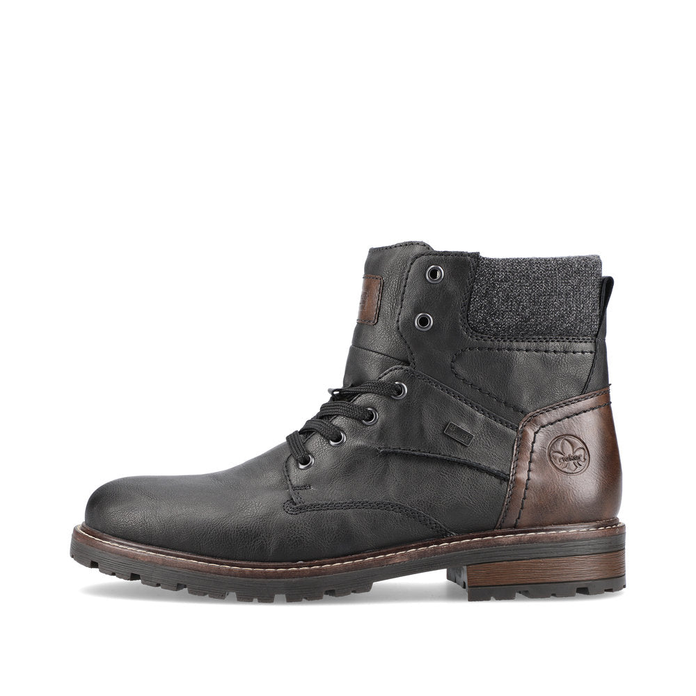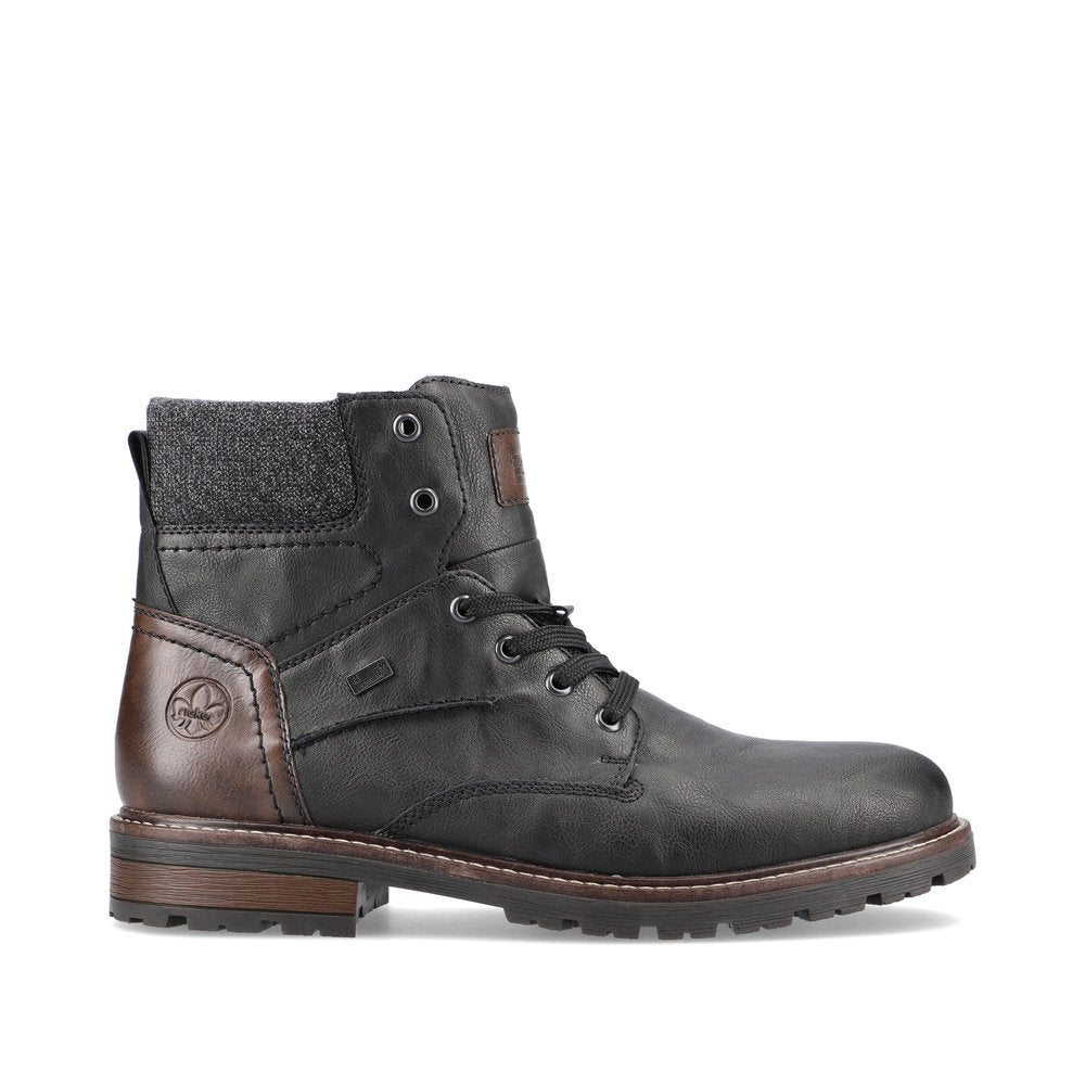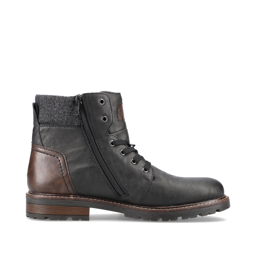 Fashion meets function. These urban black Rieker lace-up boots are perfect for every day. In addition to the lacing, this model is equipped with a zipper that provides optimal support. The grippy sole convinces all along the line and the extra soft cover sole provides additional comfort. Furthermore, the comfort width G 1/2 offers your feet more freedom of movement in the forefoot area. The combination of the water-repellent RiekerTEX membrane and very warm and cozy virgin wool lining ensures warm and dry feet in any weather. Here the cold goes away empty-handed.