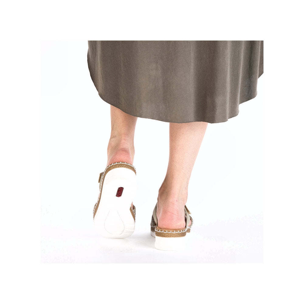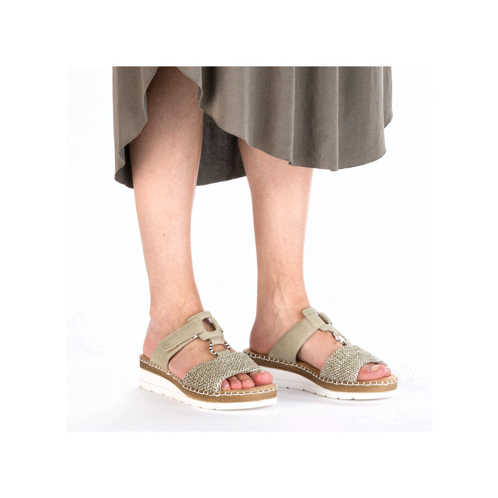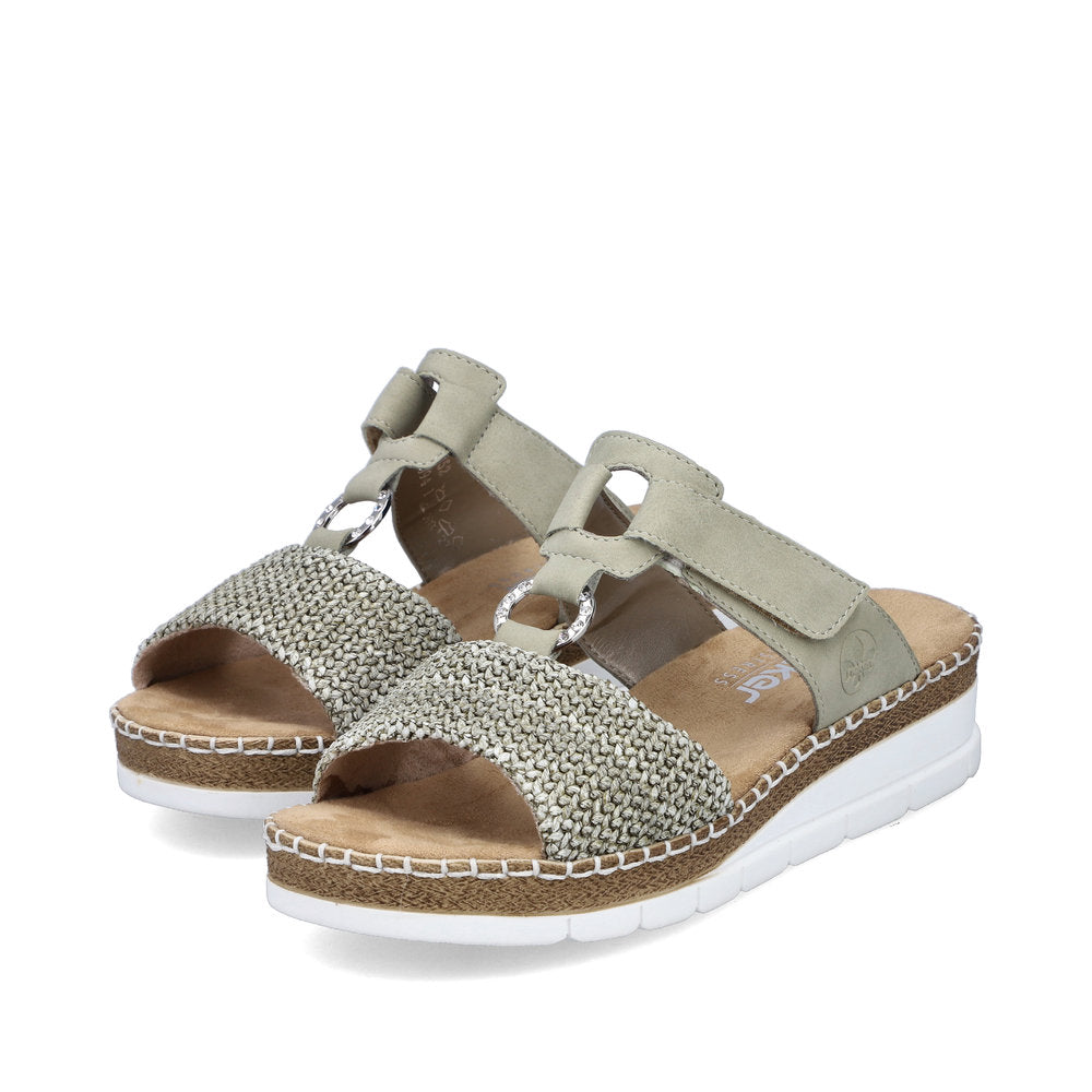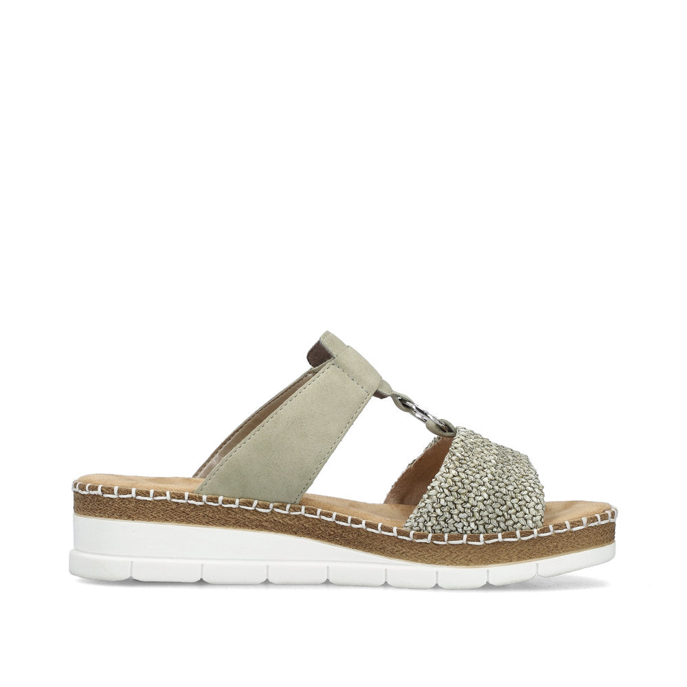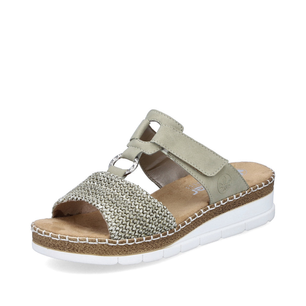 Mules for the win! Go for maximum comfort and ultimate style with these blue Rieker mules. The shoe is constructed in the stitchdown style, which makes it particularly robust and flexible. The mules are put on in no time thanks to a hook and loop fastener. The shock-absorbing and very light sole with wedge heel ensures a pleasant, cushioned feeling with every step, and the extra soft cover sole provides extra comfort. Thanks to the narrow E 1/2 fit, the shoe fits comfortably tight without pinching. Start into summer!