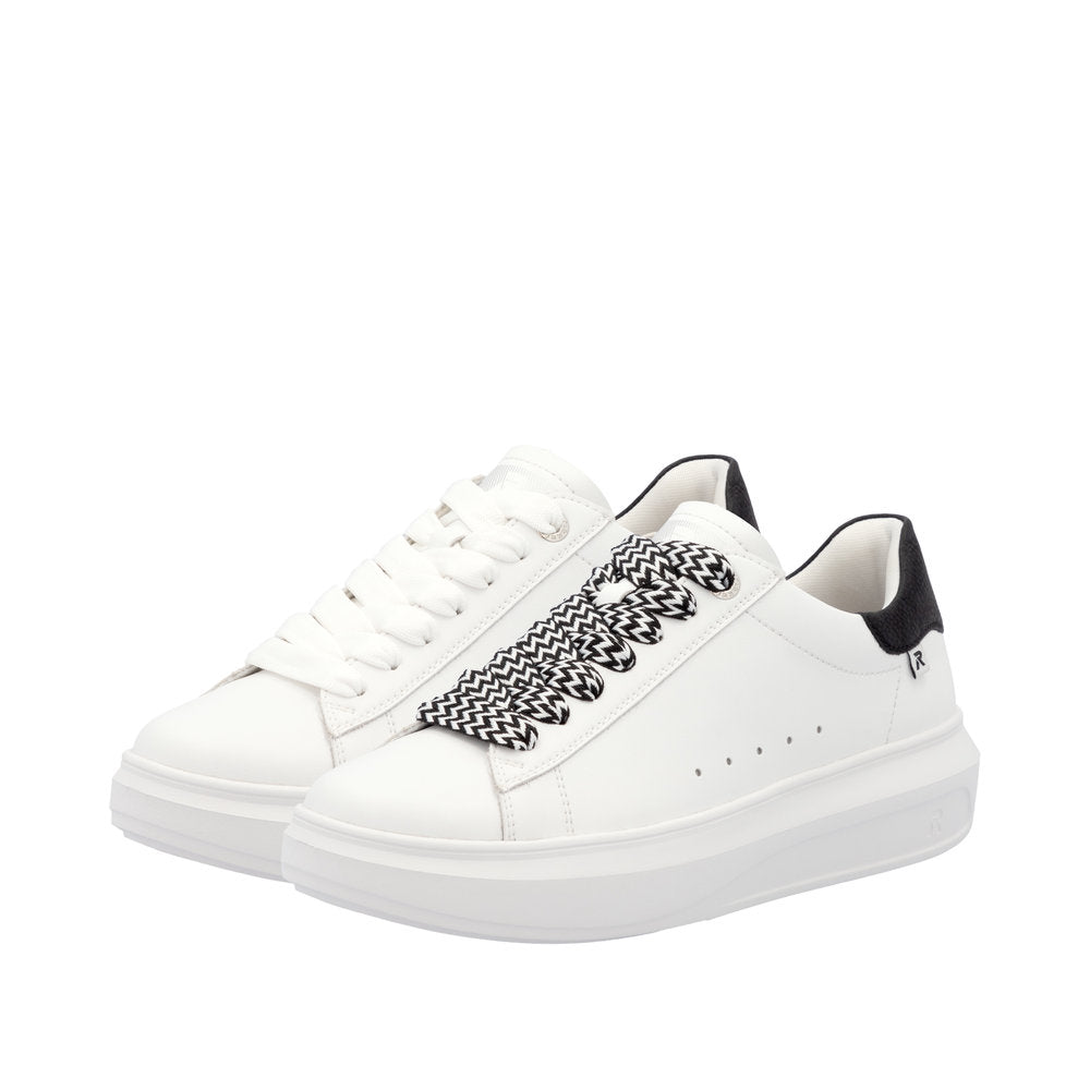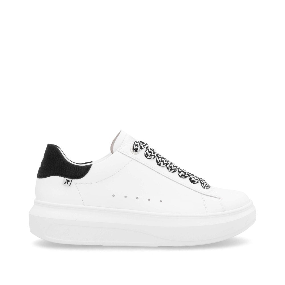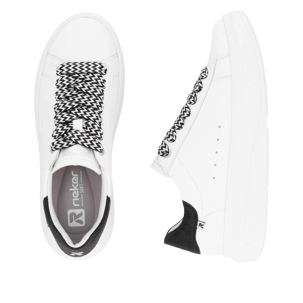 White Rieker low-top sneakers made from high-quality smooth leather. The EVA outsole is flexible and ultra light. The insole is removable, padded and provides a cushioning feeling. Light micro velour and Drysport lining with breathable properties.