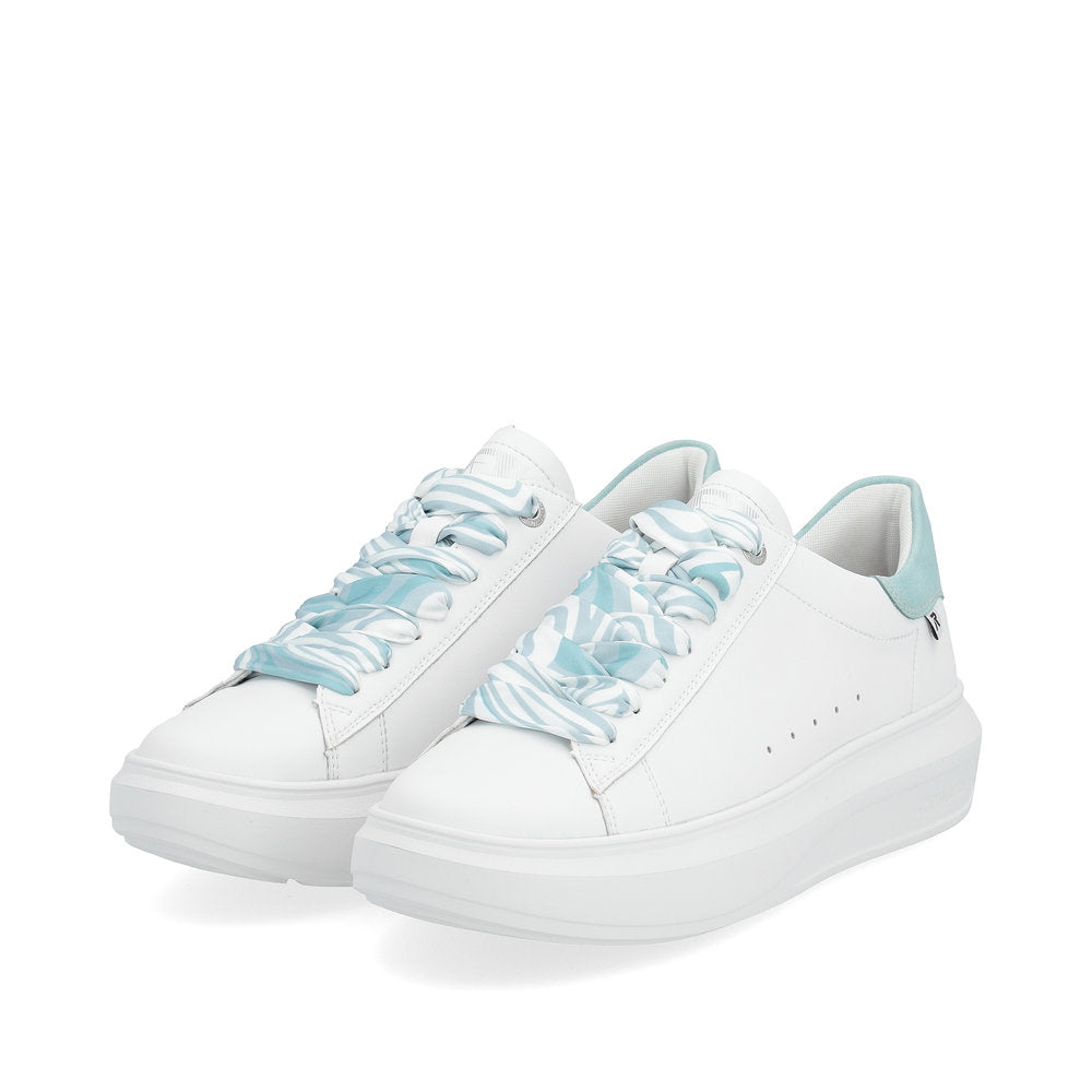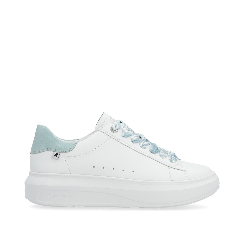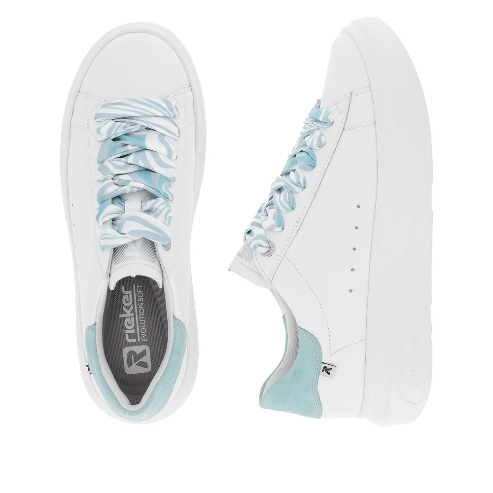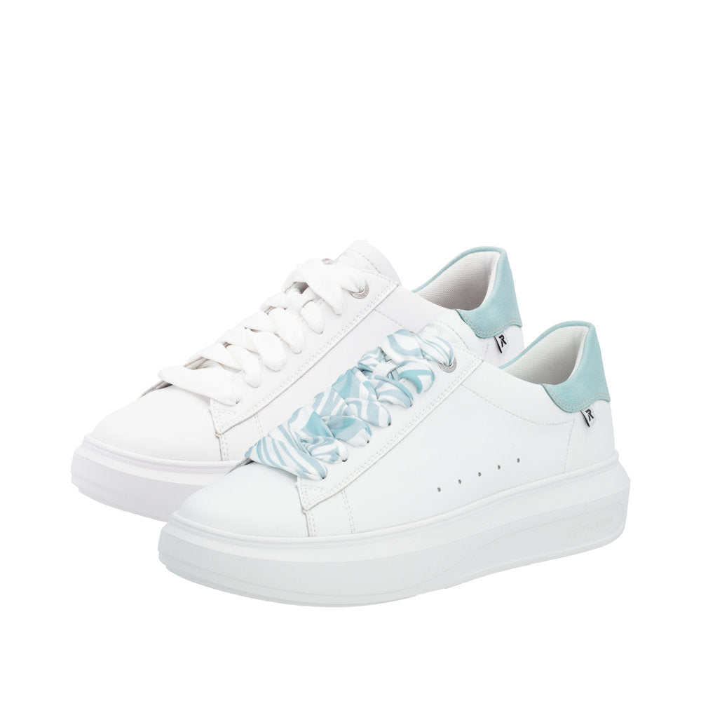 White Rieker low-top sneakers made from high-quality smooth leather. The EVA outsole is flexible and ultra light. The insole is removable, padded and provides a cushioning feeling. Light micro velour and Drysport lining with breathable properties.