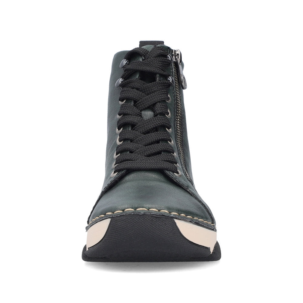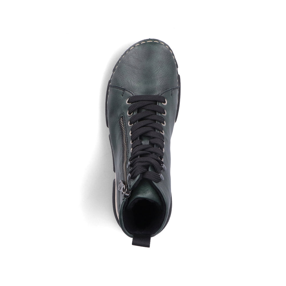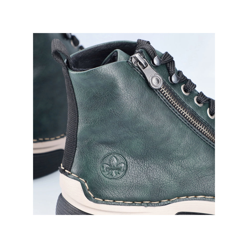 Almost too soft to be true! These leaf green Rieker lace-up boots are a comfortable companion. The stitchdown construction makes the shoe robust and the sole particularly flexible without causing damage at the transition to the upper. The lacing complements the zipper and thus guarantees optimal support and perfect fit. The shock-absorbing and light sole also pampers the feet at every step. On top of that, the extra soft cover sole provides an extra portion of comfort. These shoes are the perfect symbiosis of style and comfort!