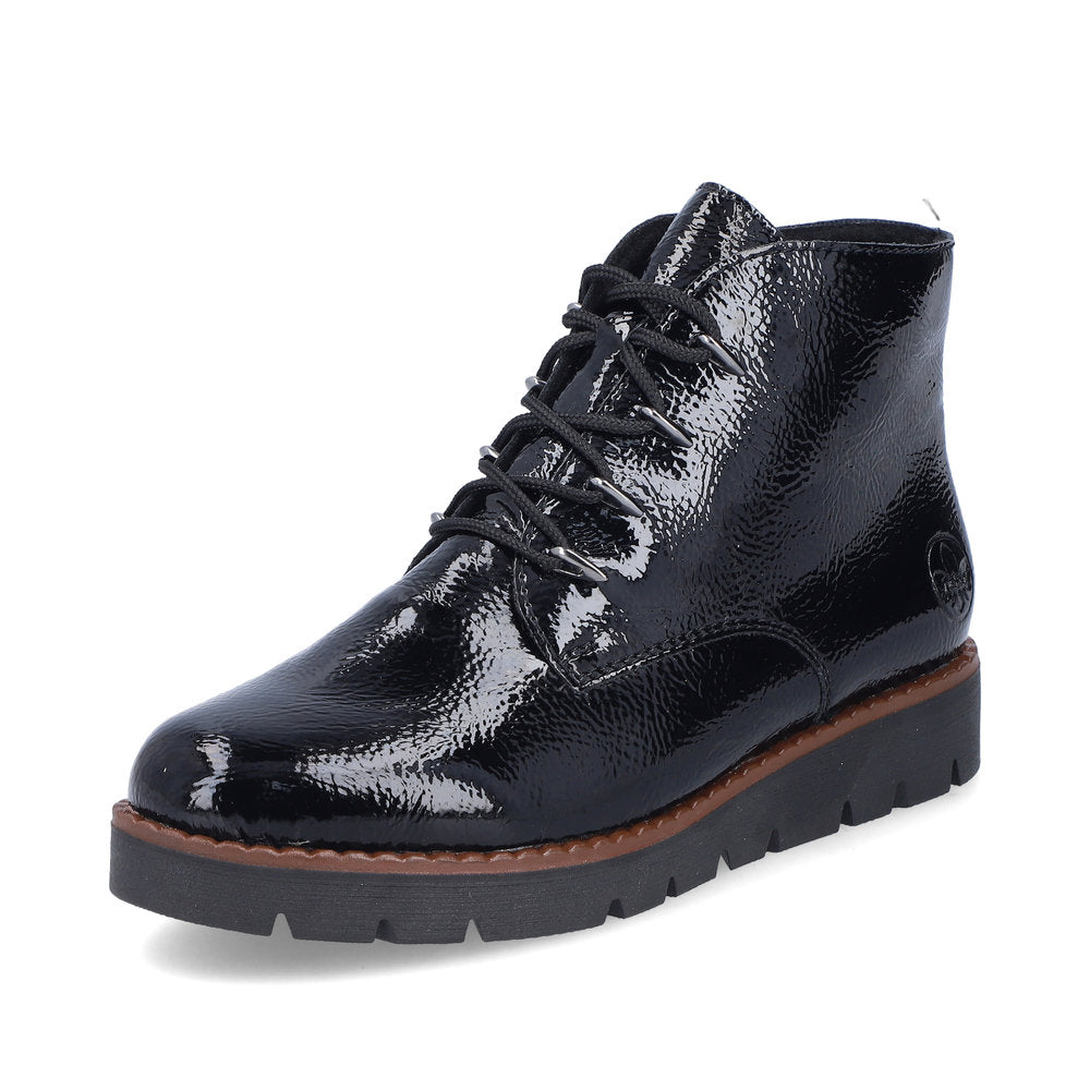 Fashion lovers take note: the Rieker must-haves have arrived! These glossy black Rieker lace-up boots are a comfortable companion. In addition, the lacing ensures that the shoe fits best at all times. The shoe has a grippy and light sole that impresses with good traction for a secure step. Thanks to the padded and removable insole, best comfort and refined functionality is given. Attention, favourite shoe potential!