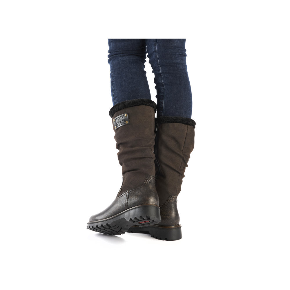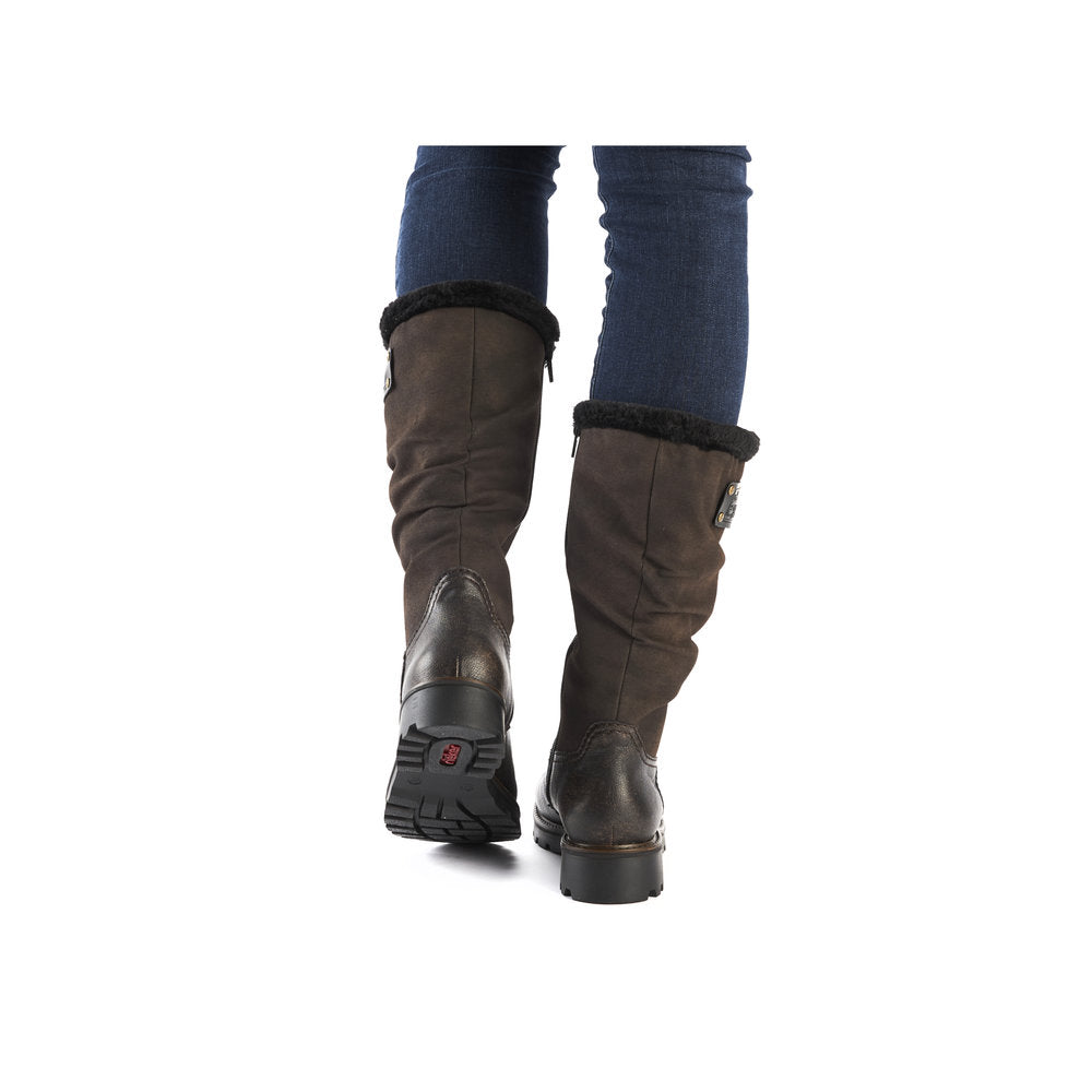 Fashionable must-have! These wood brown Rieker high boots guarantee a heavenly feeling. A zipper allows for a quick and easy entry. The furry shaft edge effectively freshens up the design. With the grippy sole with block heel, sure-footed walking is a matter of course and the extra soft cover sole ensures improved comfort. The RiekerTEX technology and warm lining also guarantee great comfort in any weather. The minus temperatures have the cards stacked against them!