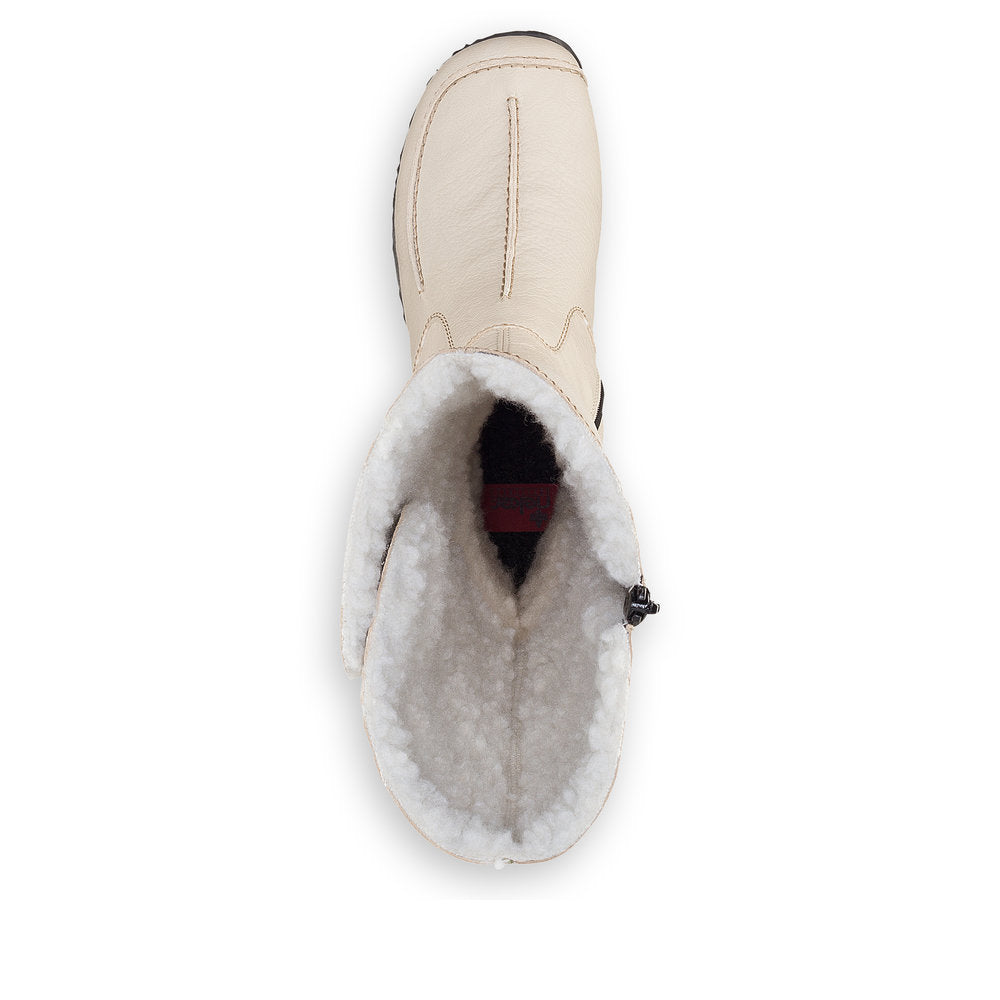 All in one shoe! The cold season would be half the fun without these stylish vanilla beige Rieker high boots. Made with the stitchdown construction, the model is robust, flexible and offers a perfect fit. In addition to the zipper, the model has an elasticated shaft edge, making it twice as easy to put it on. The shoe has a grippy sole that impresses with good traction for a secure step. The removable insole offers comfort and functionality for every day. Extra support is provided by the slim fit E 1/2. The Vario Shaft ensures an optimal fit on the calf. In wet and cold weather, the feet stay dry thanks to the water-repellent surface, while the warm lining provides the best protection against the cold. Your best buddies for the new season!