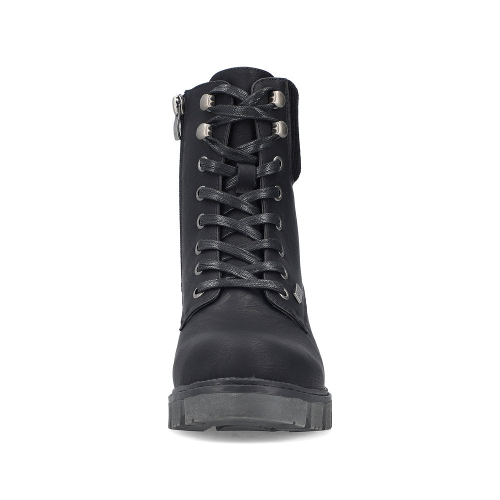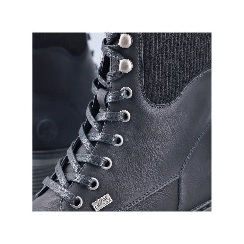 Never cold feet again! These urban black Rieker biker boots impress with a classic design and high comfort. Despite the lacing, the shoe can be easily closed by the zipper. The sole with block heel is grippy and ensures good traction at all times. The water-repellent RiekerTEX membrane protects the feet from wetness and wind, while the cozy lining keeps them warm for a long time. Your best buddies for the new season!