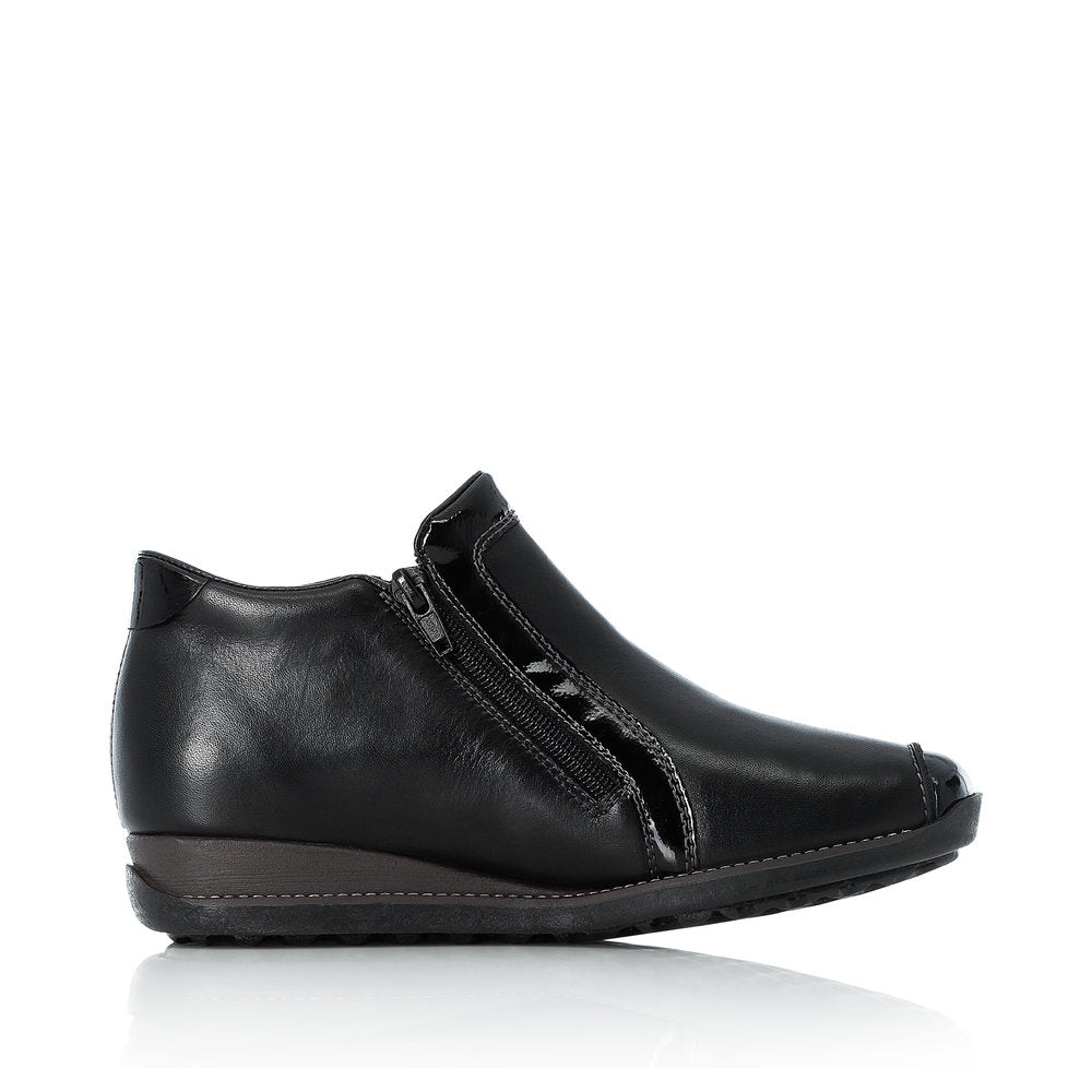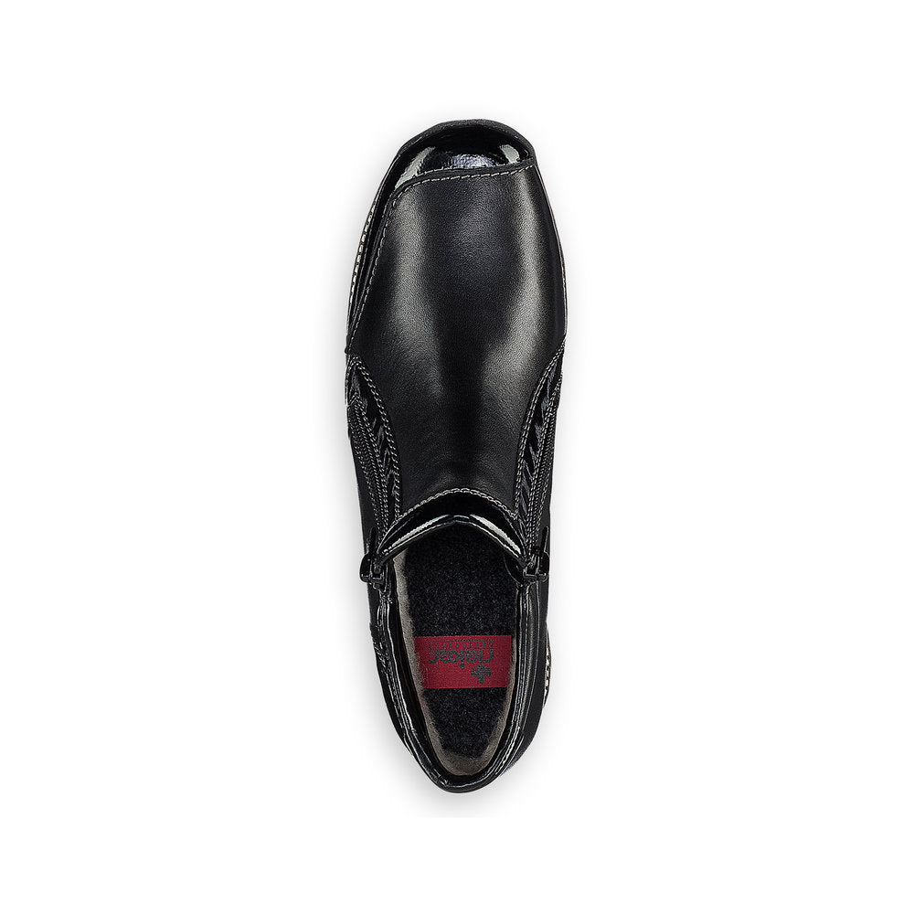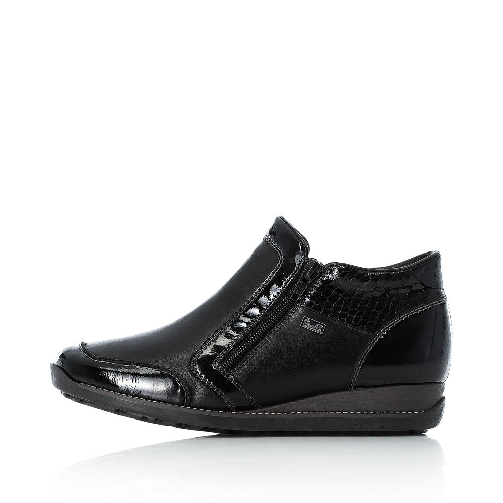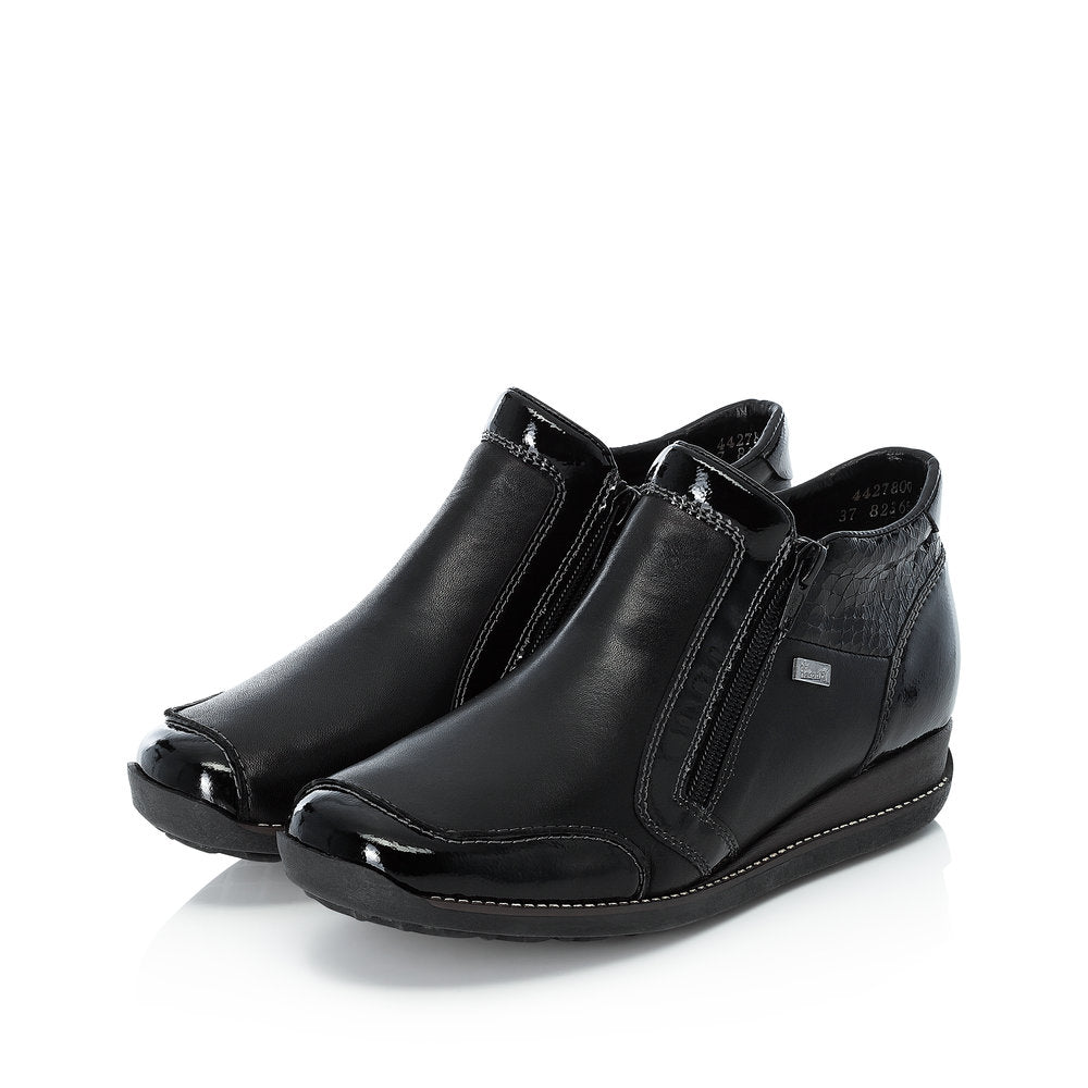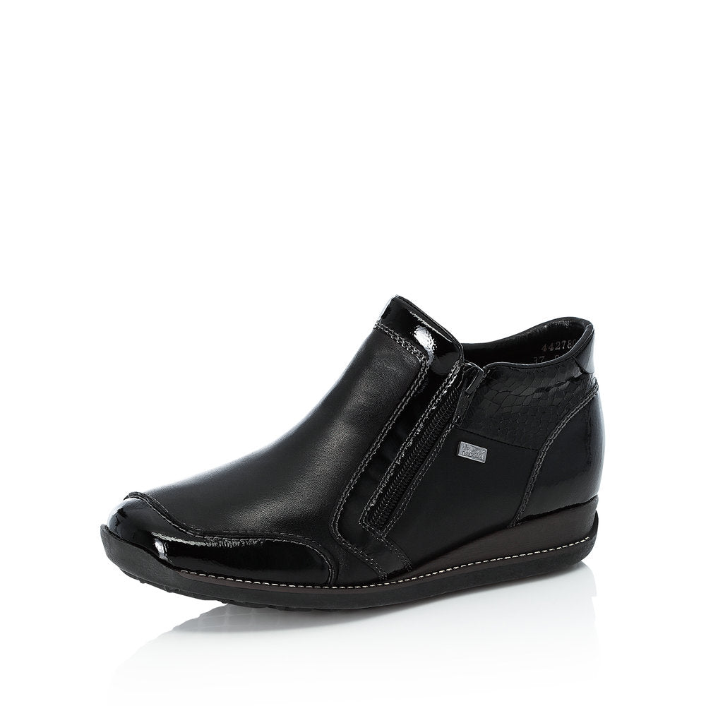 They follow you wherever you go! These matt black Rieker slippers made of smooth leather are a comfortable companion. The traditional stitchdown construction makes the shoe particularly flexible and robust and ensures a great fit. The zipper allows for the shoe to be put on very quickly. The grippy sole with wedge heel gives sure-footedness at every step. Moreover, the narrow E 1/2 fit provides extra support. You are also one step ahead in terms of comfort with the water-repellent RiekerTEX membrane and the very warm and cozy virgin wool lining. Fashionable well-being in the style of Rieker!