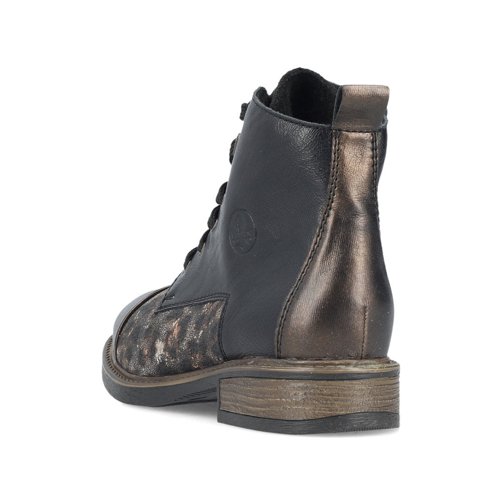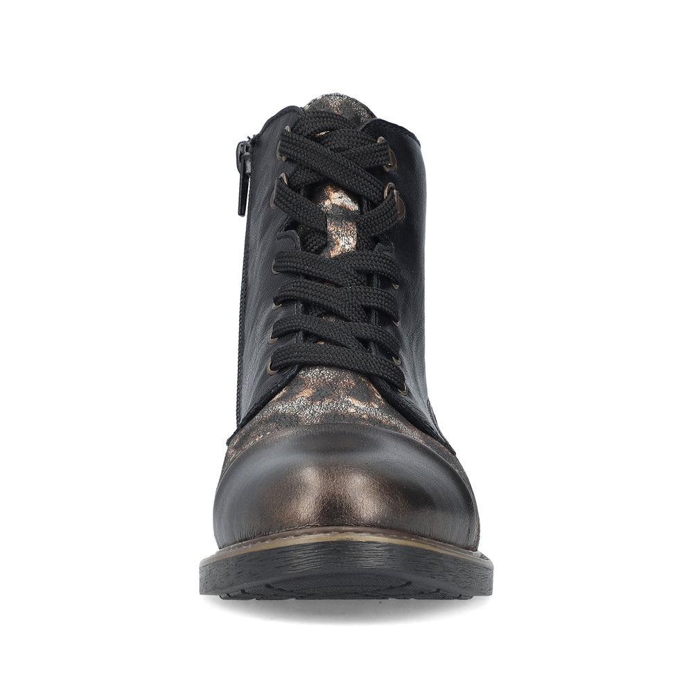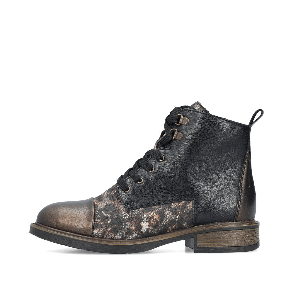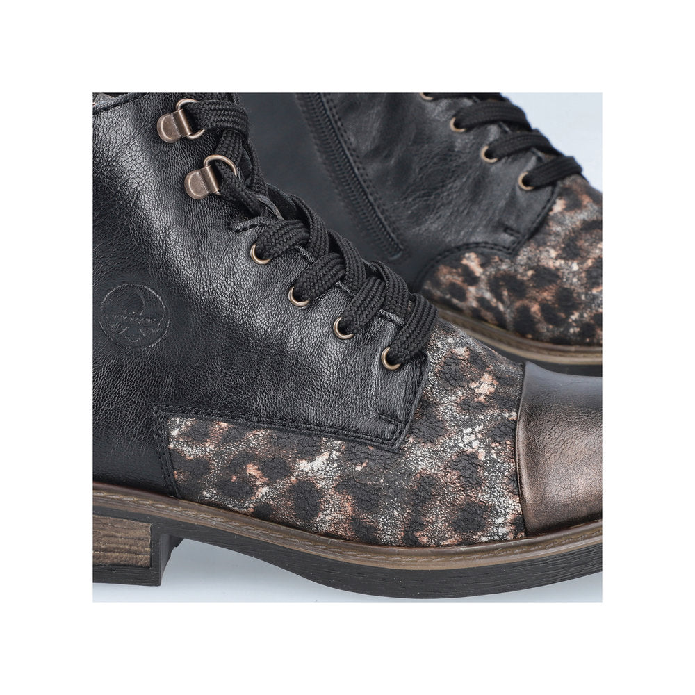 Stylish or comfortable? Why or? These black Rieker lace-up boots are the perfect companion for any occasion. The clever combination of lacing and zipper guarantees a perfect fit and optimal support. The fashionable animal print adds that certain something. The grippy sole provides traction on different paths. Another plus is the extra soft cover sole. The lace-up boots are ideal everyday companions!