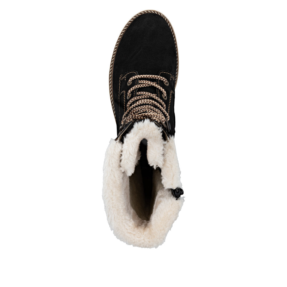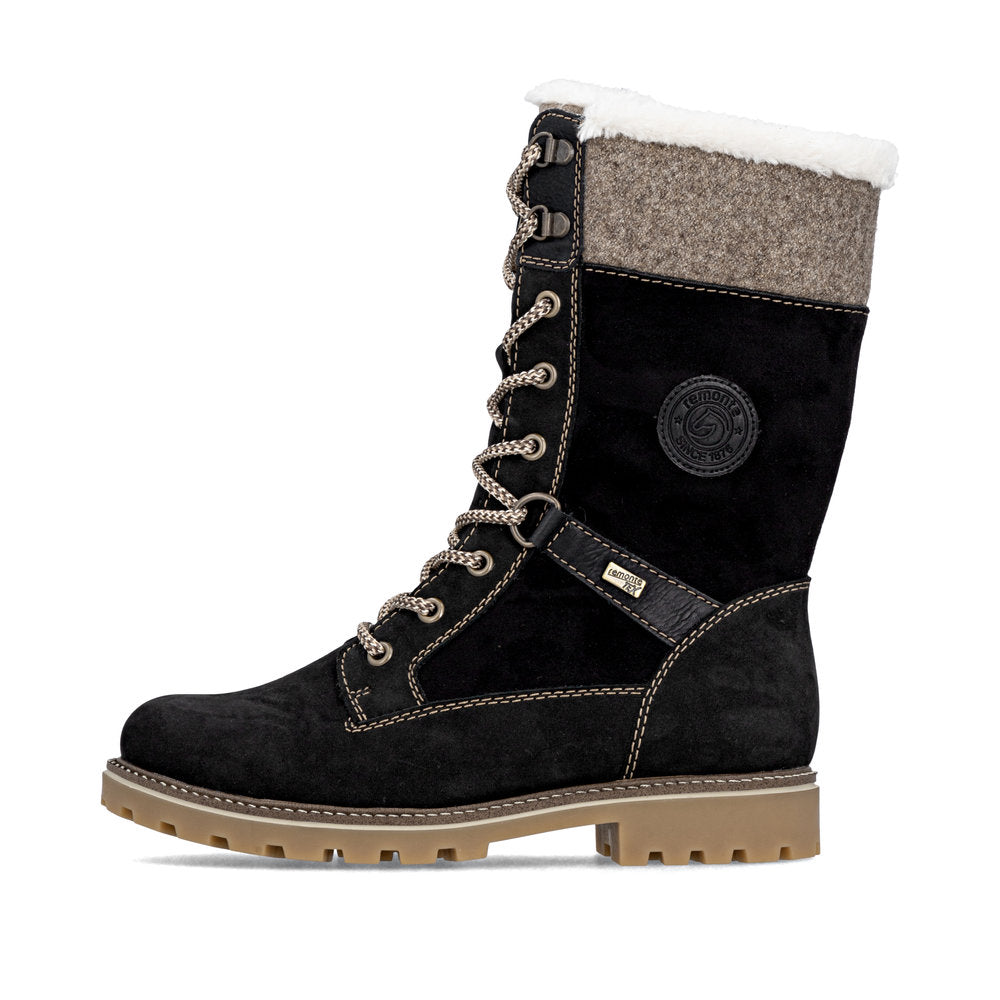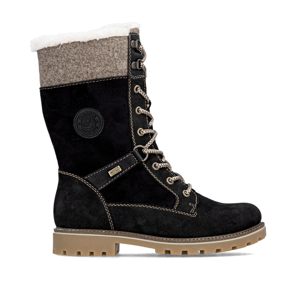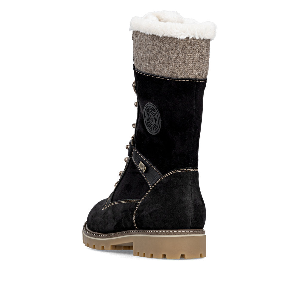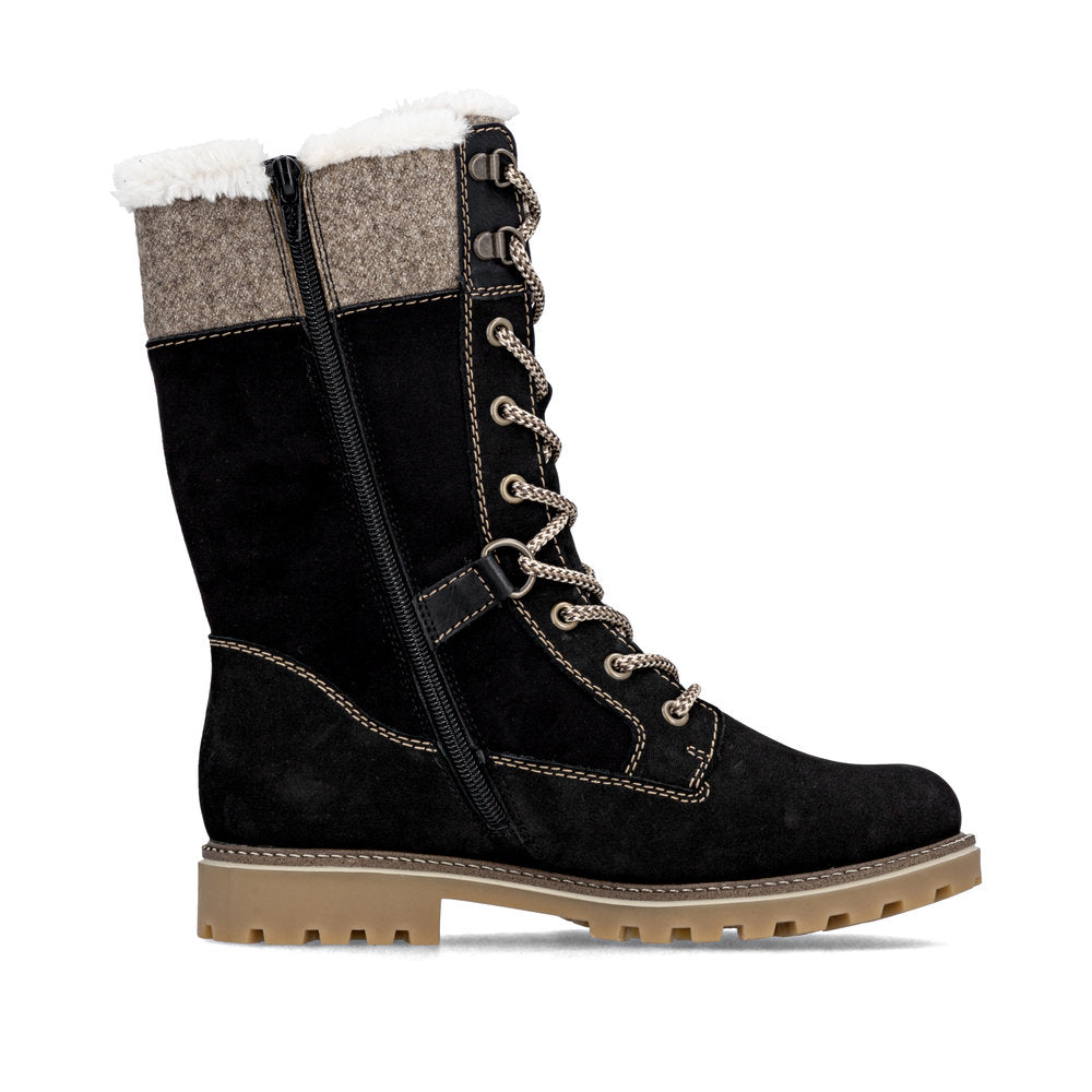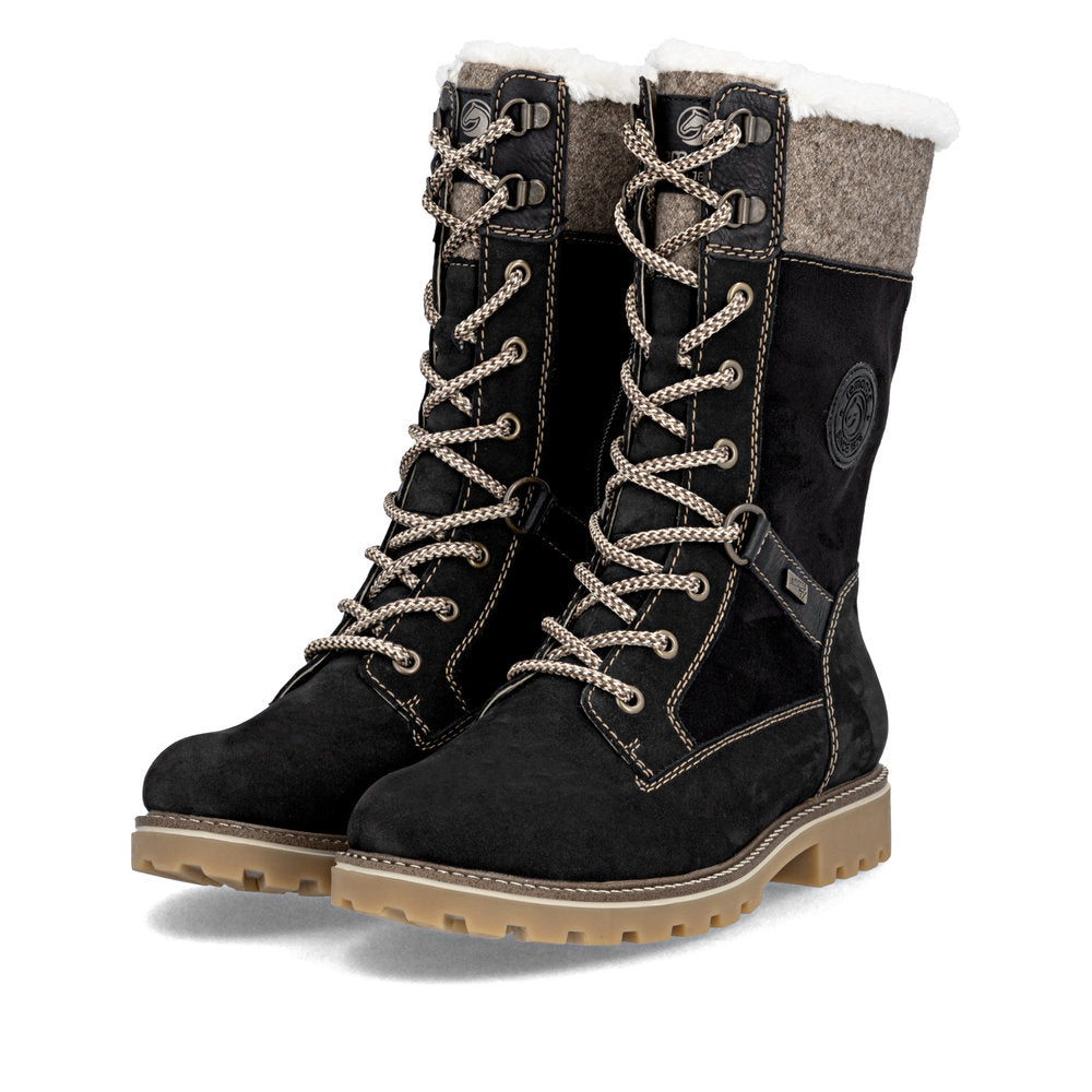 Cold feet are a thing of the past! With these grey remonte lace-up boots made of suede leather you can show up anywhere! Despite the lacing, the shoe can be easily closed by the zipper. The shaft collar in felt look effectively freshens up the design. The flexible and cushioning sole provides good support. Moreover, the comfort width offers your feet more freedom of movement in the forefoot area. The water-repellent surface of the shoes offers optimal weather protection and the thermal insole features protection against the cold. Cozy and very warm virgin wool makes these boots the perfect companions no matter when, no matter where! True to the motto comfort meets style!