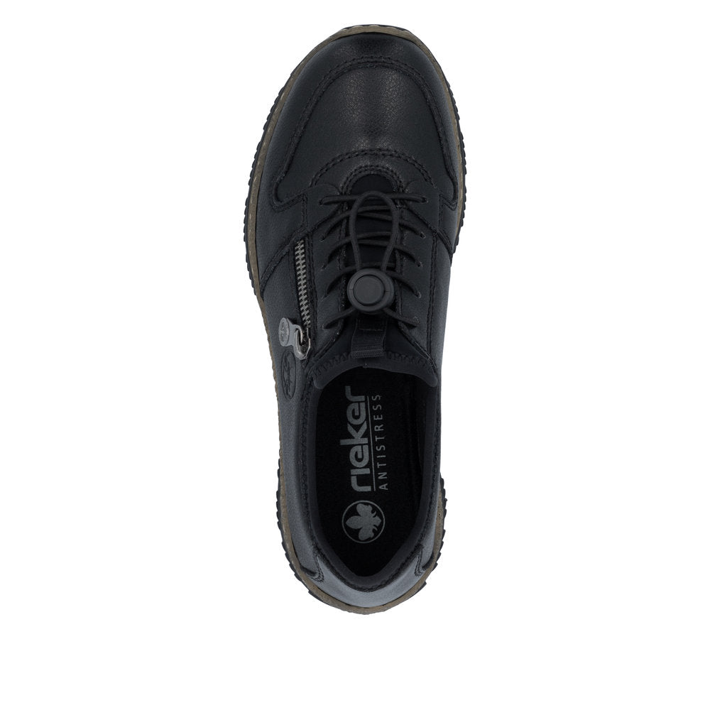 Fashion meets function. Go for maximum comfort and ultimate style with these jet black Rieker slippers made of smooth leather. The traditional stitchdown construction makes the shoe particularly flexible and robust and ensures a great fit. In addition to the elastic lacing, the model has an elasticated shaft edge, making it twice as easy to put it on. The light and shock-absorbing sole offers lasting comfort - even on long days. In addition, the extra soft MemoSoft cover sole provides an extra portion of comfort. 100% favourite shoe potential!