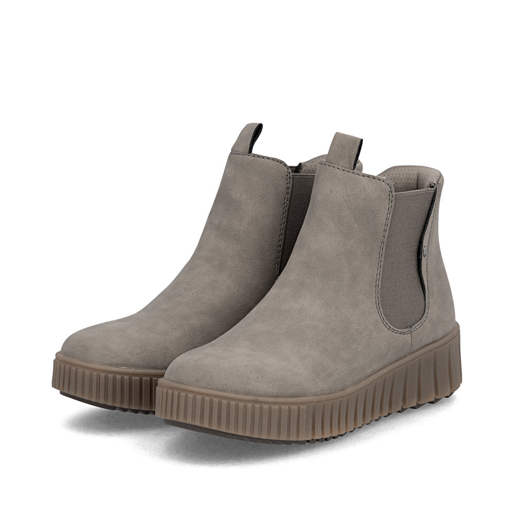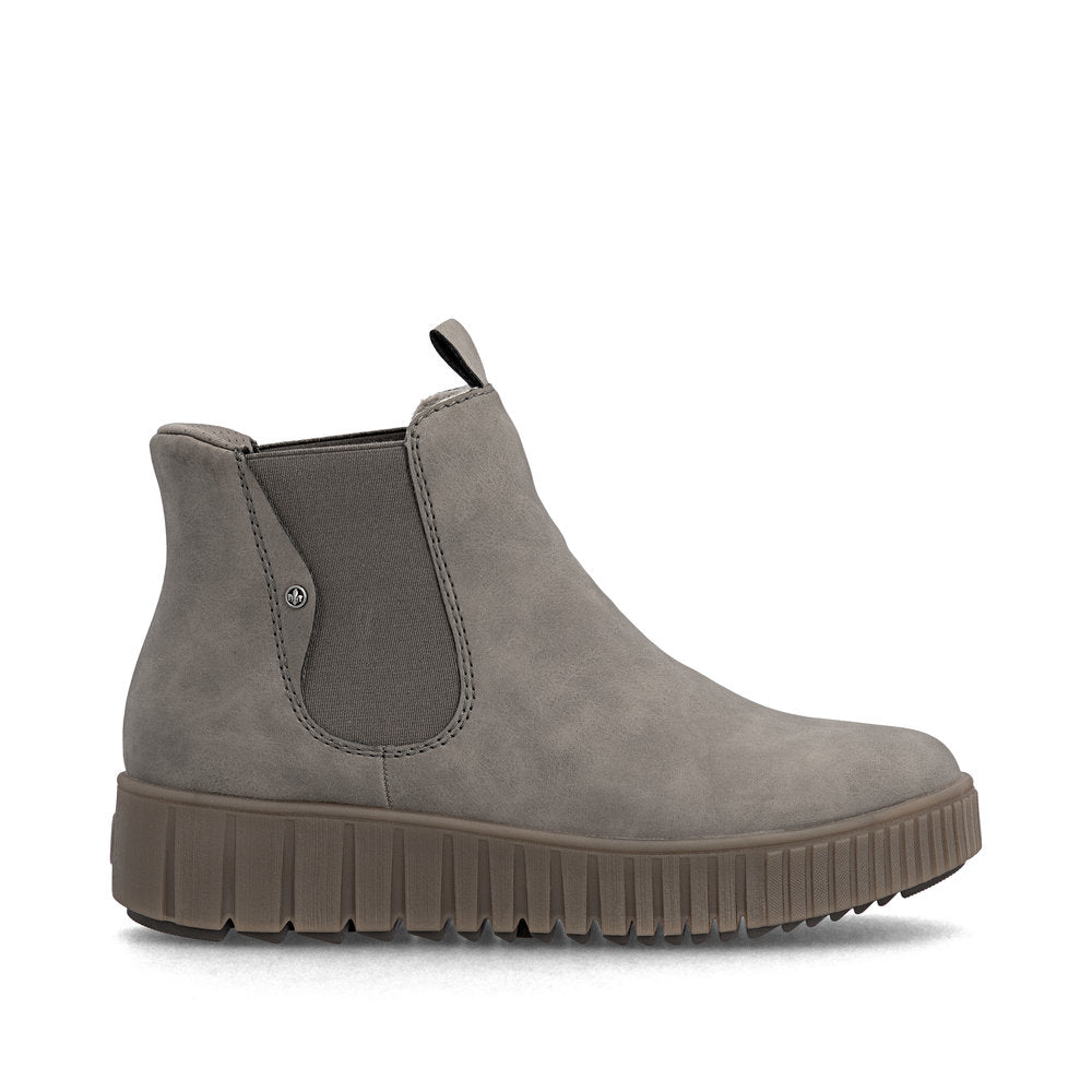 Put an end to cold feet! These light grey Rieker Chelsea boots are the perfect companion for any occasion. Thanks to the elastic band and the elastic insert, putting on this model is child's play. The grippy sole gives good traction at every step. The boots also score with a padded and removable insole. Ready2GO: thanks to the slip-on feature, the shoe can be put on super quickly without a shoehorn. Soft warm lining keeps the feet cozy and warm all day long. Just slip in and go!