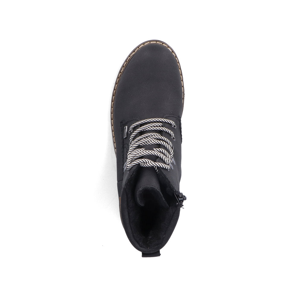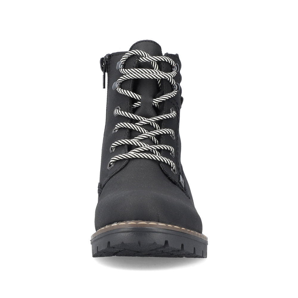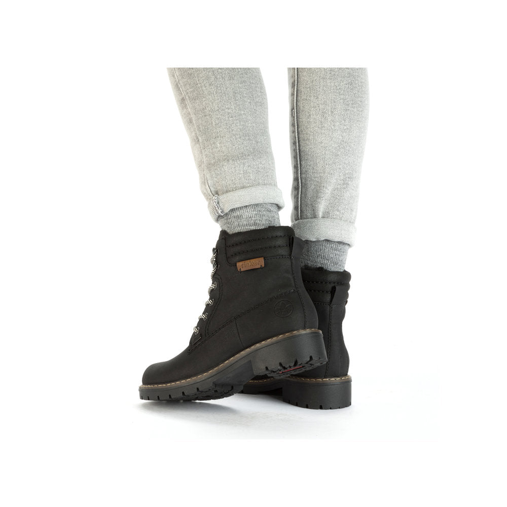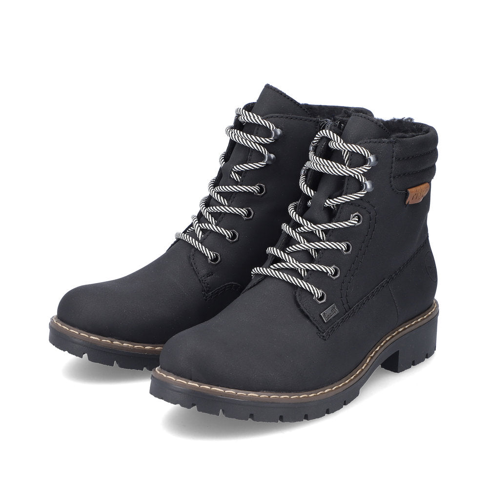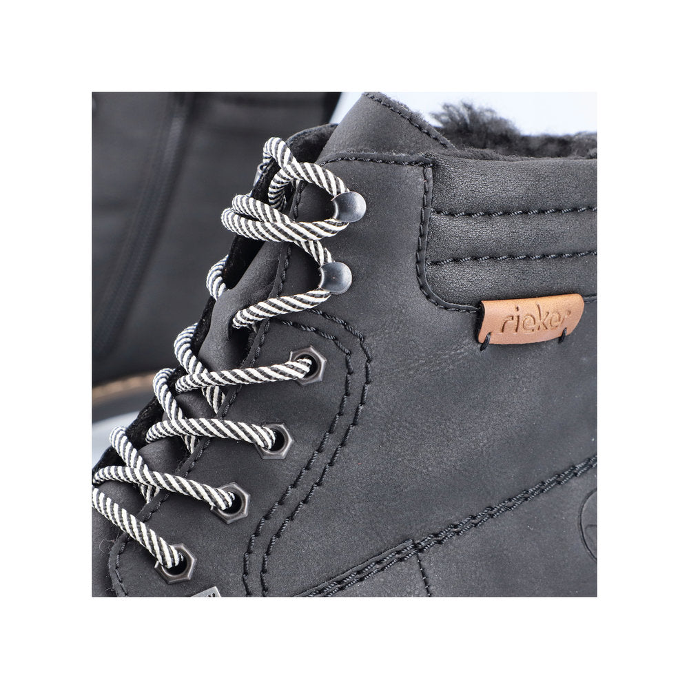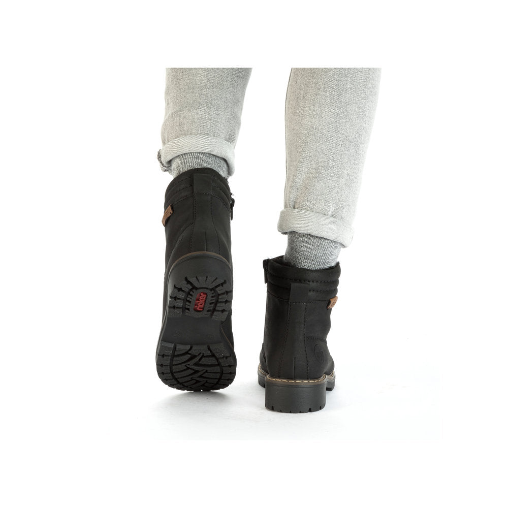 Cool and casual through the frosty days! These asphalt black Rieker lace-up boots impress with a classic design and high comfort. The shoe is constructed in the stitchdown style, which makes it particularly robust and flexible. In addition to the lacing, the model is equipped with a zipper that provides optimal support. With the grippy sole with block heel, sure-footed walking is a matter of course and the cover sole is extra soft. The cozy lining and the RiekerTEX technology keep the feet warm and dry. So let's get going!