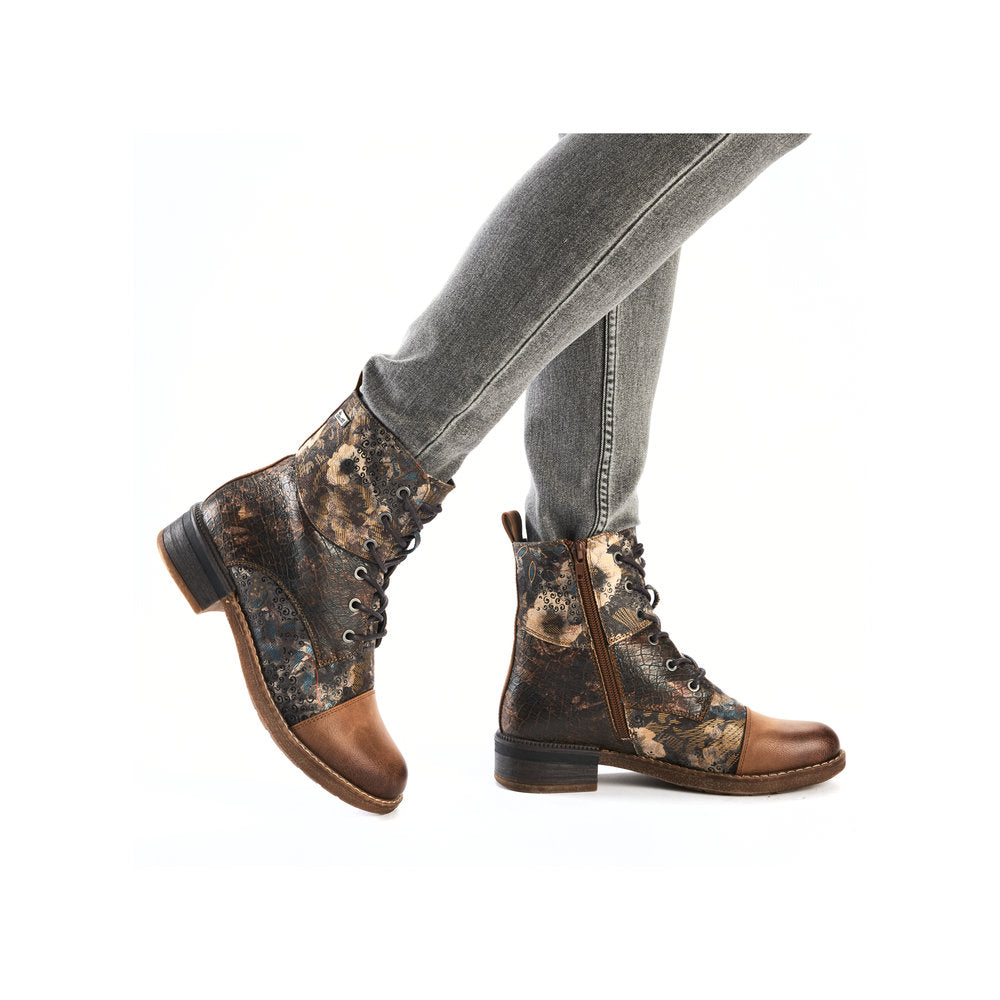 Comfortable and practical! These multi-coloured Rieker lace-up boots impress with their modern design and high comfort. The clever combination of lacing and zipper makes the shoe easy to put on and take off. With the grippy sole, sure-footed walking is a matter of course. Your feet are guaranteed to stay warm all day long thanks to the cozy lining and also dry thanks to the RiekerTEX technology. Here the cold goes away empty-handed.