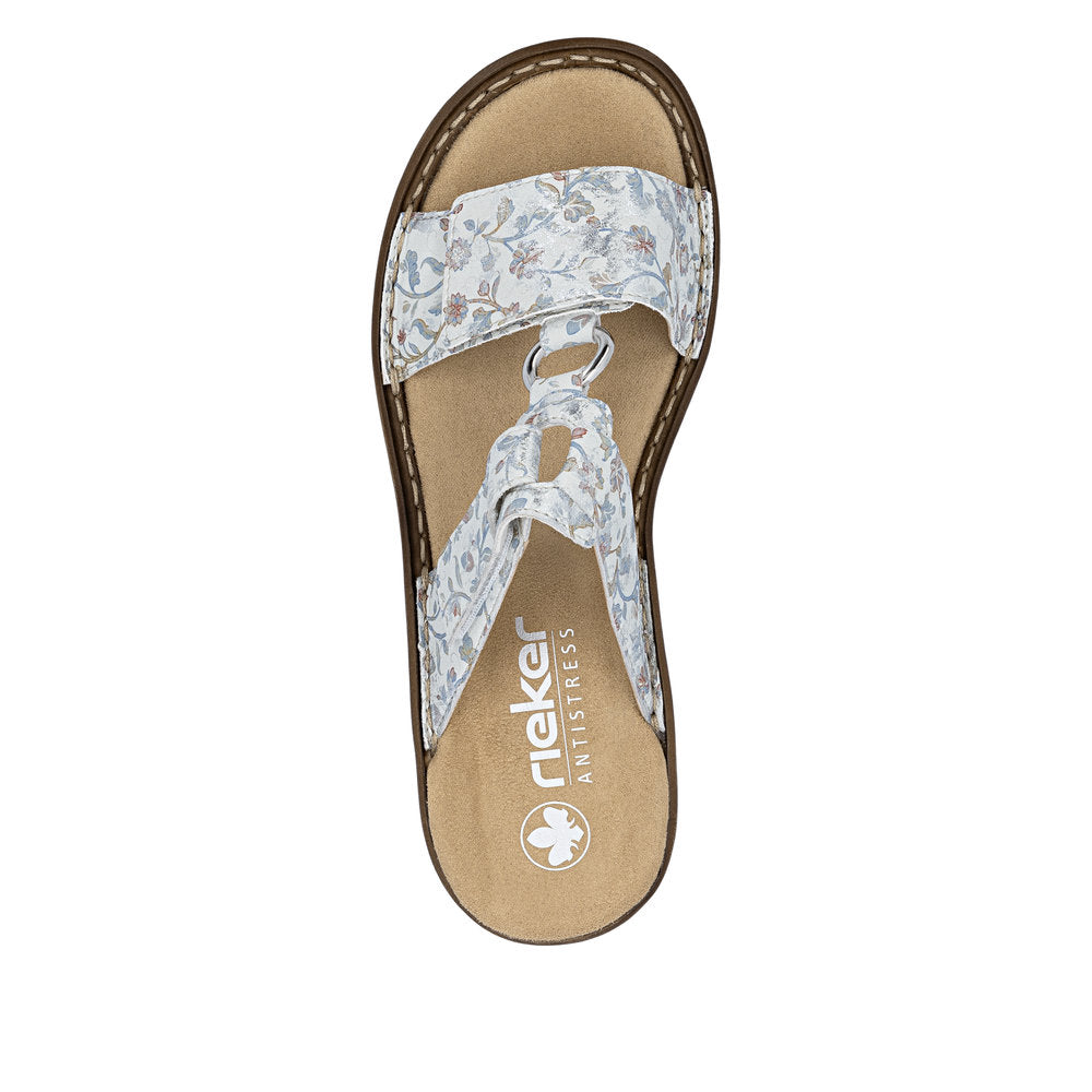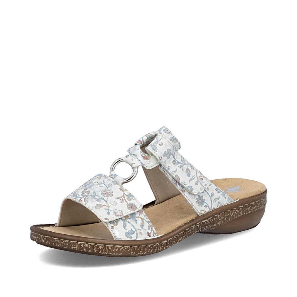 Maximum comfort every step of the way! These multi-coloured Rieker mules guarantee a heavenly feeling. The traditional stitchdown construction makes the shoe particularly flexible and robust and ensures a great fit. The mules are put on in no time thanks to a double hook-and-loop fastener. The floral pattern gives the shoe that certain something. With the light and shock-absorbing sole with wedge heel, a cushioned walking experience is the new standard. Moreover, the narrow fit provides extra support. Get your summer into the shoe closet!