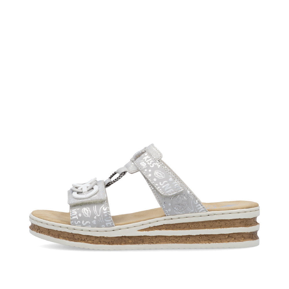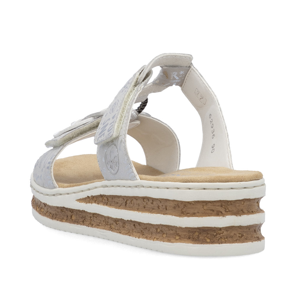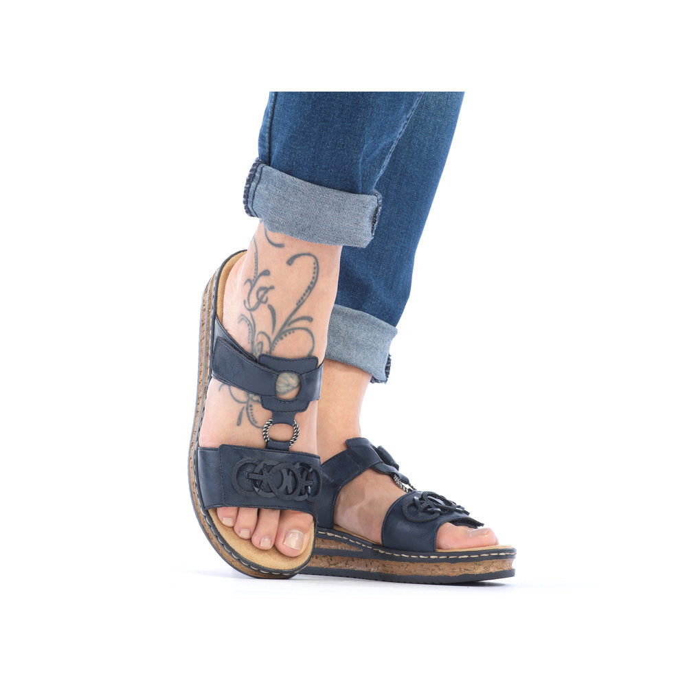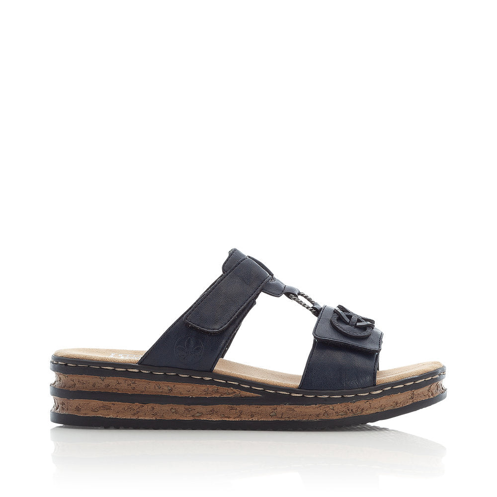 Summer feelings included! These blue Rieker mules combine style and comfort perfectly. Thanks to the stitchdown construction, this shoe is particularly durable and flexible. The mules are put on in no time thanks to a double hook-and-loop fastener. The high-quality decorative elements efficiently freshen up the design. The light and shock-absorbing platform sole ensures a pleasant, cushioned feeling with every step, and the extra soft cover sole provides extra comfort. Thanks to the narrow fit, the shoe fits comfortably tight. For your Rieker moment!