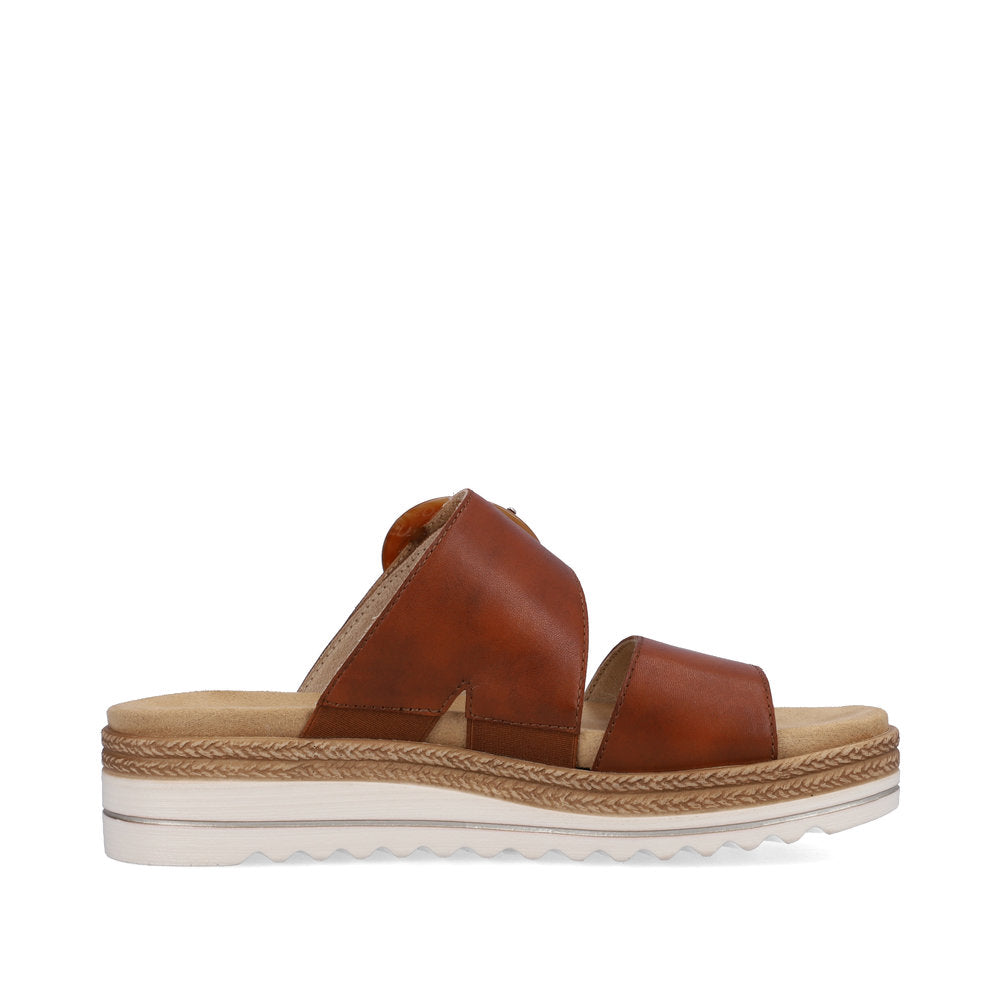 Comfy queen: with these brown remonte mules made of smooth leather you can show up anywhere! The hook-and-loop fastener makes the shoe easy to put on. The trendy buckle adds a stylish touch. Thanks to the proven remonte Lite 'n Soft technology and the soft and removable insole, these mules are featherlight and comfortable to wear. Thesemules are also available in extended sizes. Step into summer, ladies!