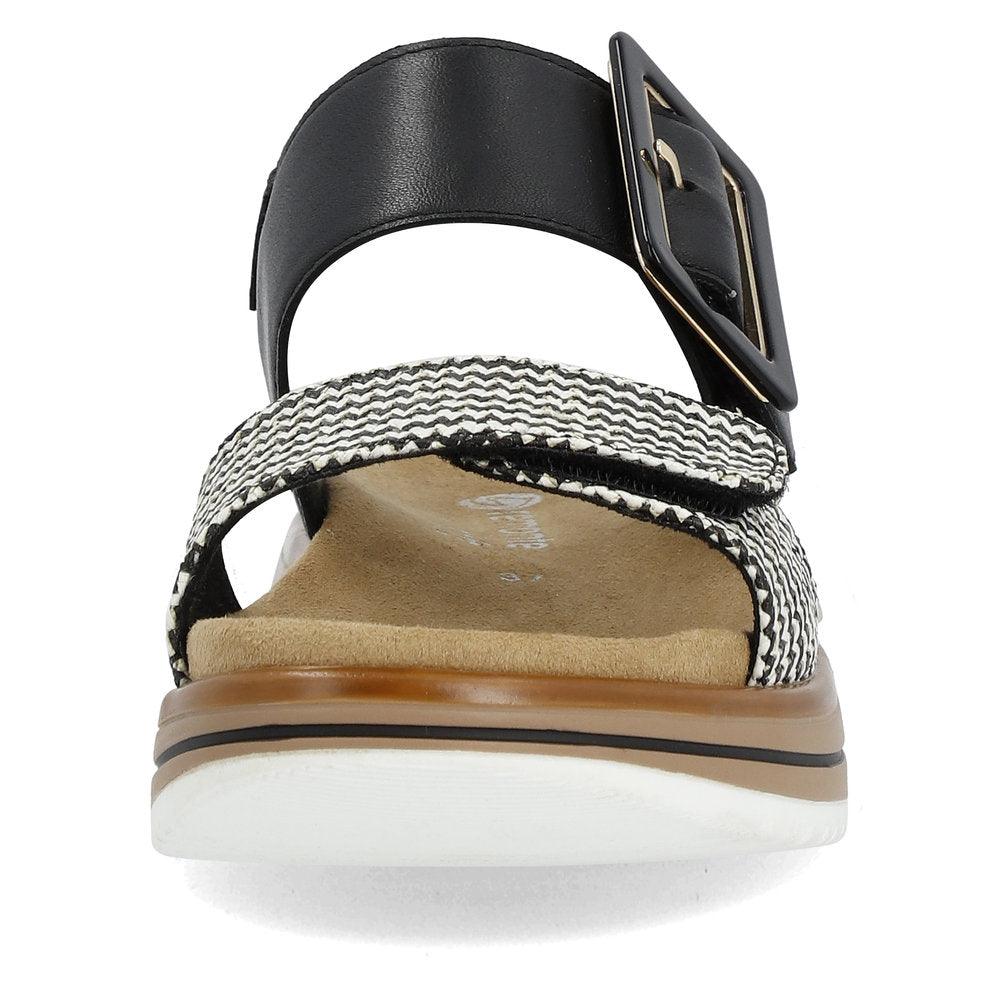 How can comfort be so stylish? This black-white remonte strap sandal made of smooth leather combines lightness, comfort and style. Perfect for everyday wear. Straps, together with a bright hook-and-loop fastener, ensure a secure support. The trendy buckle effectively freshens up the design. The Lite 'n Soft technology allows for the combination of a lightweight outsole and a soft and removable insole. For large feet, the shoe is available up to size 45. Step into summer, ladies!