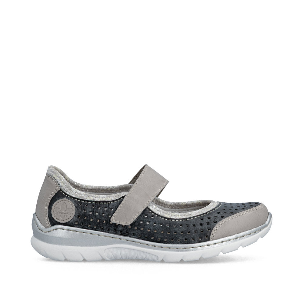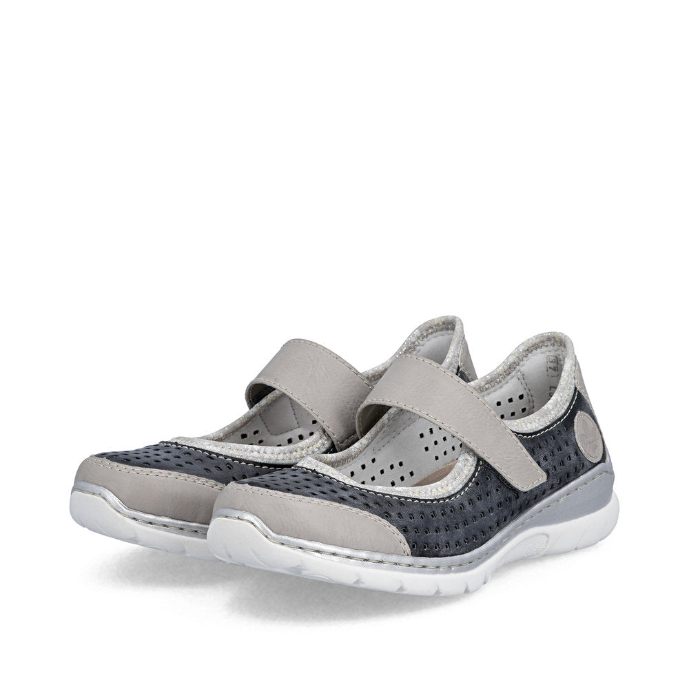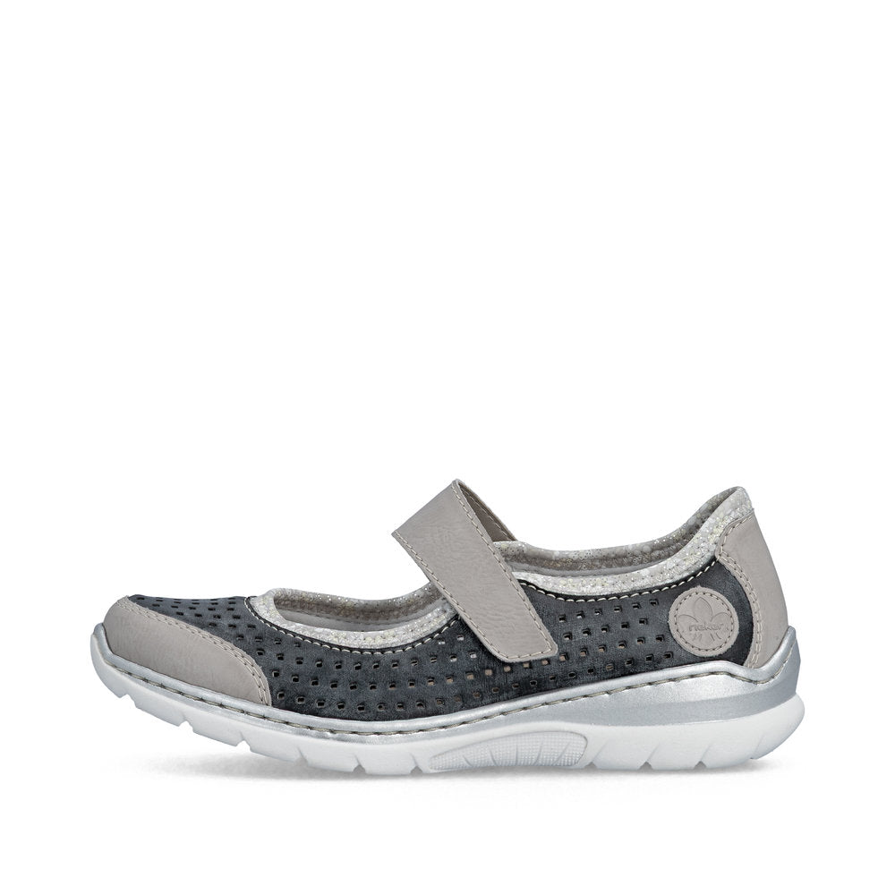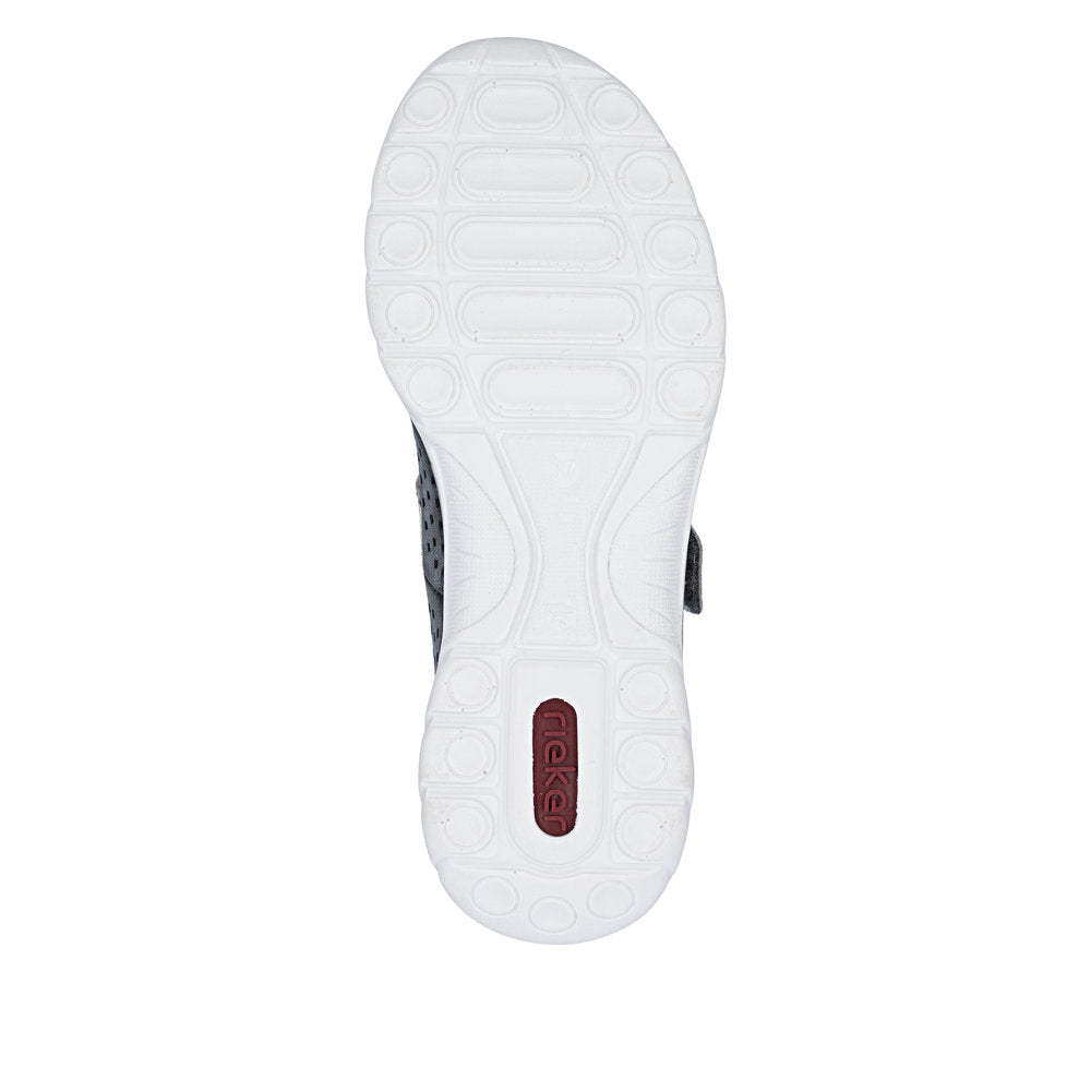 Summer Love! You'll be cool and casual on the move in these black Rieker ballerinas. This shoe was made using the traditional stitchdown technique, which gives it a high degree of robustness and flexibility. The model is put on in no time thanks to a hook and loop fastener. The shock-absorbing and light sole with wedge heel ensures a pleasant walking sensation even when worn for a long time, and the extra soft MemoSoft cover sole is another plus. Simply top!