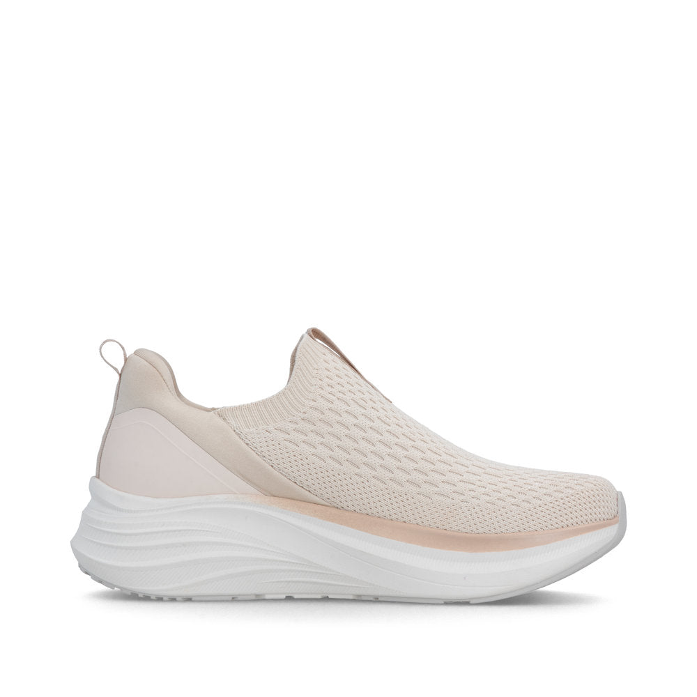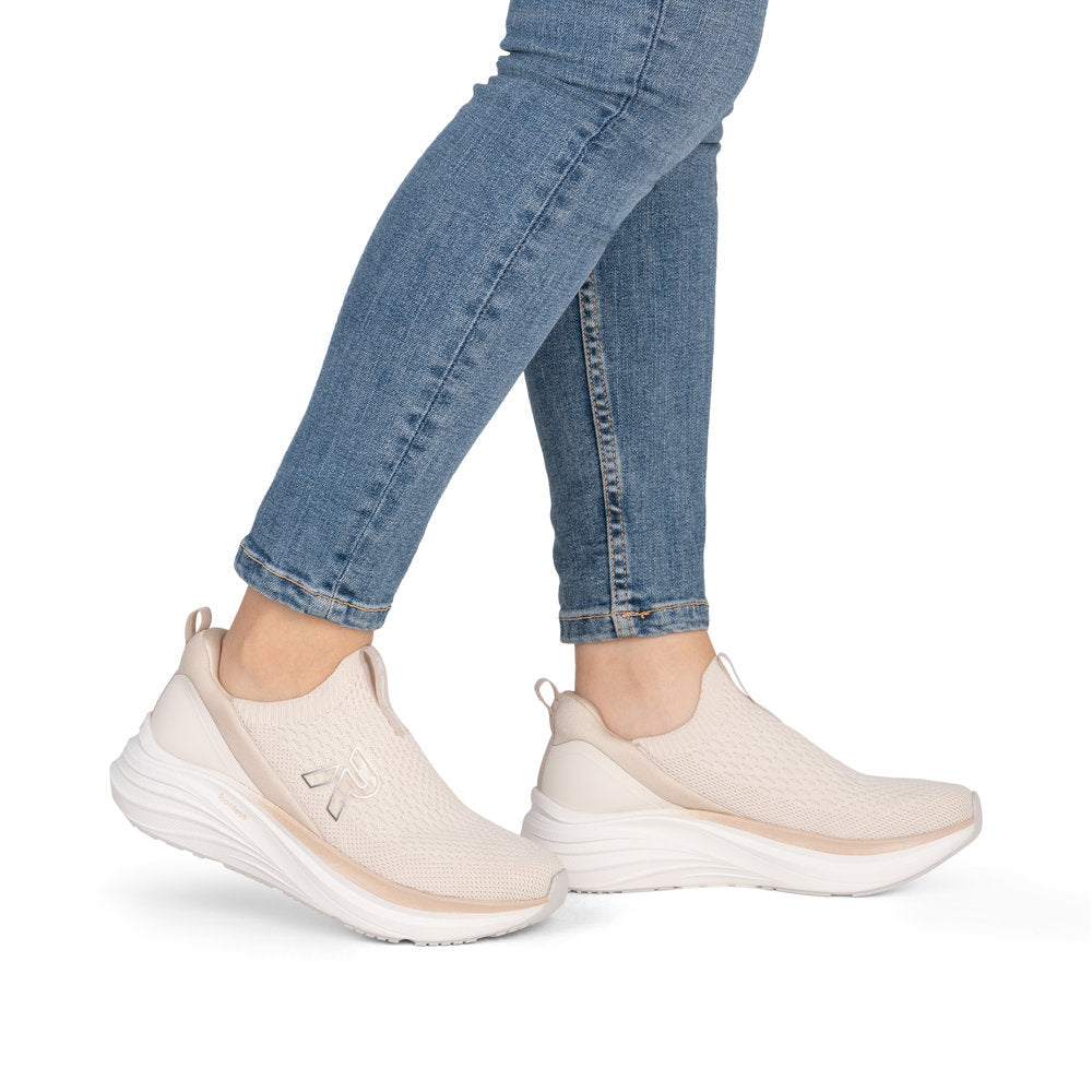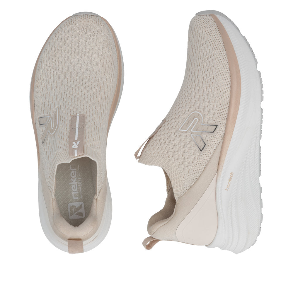 These beige Rieker slippers are made of quality textile. Walk Clean: the Machine Washable feature facilitates cleaning in the washing machine. Elastic band plus elastic shaft collar - for an easy on and off. Removable extra soft footbed with rebound effect for dynamic rolling motion. On top of that, the comfort width guarantees a perfect fit.