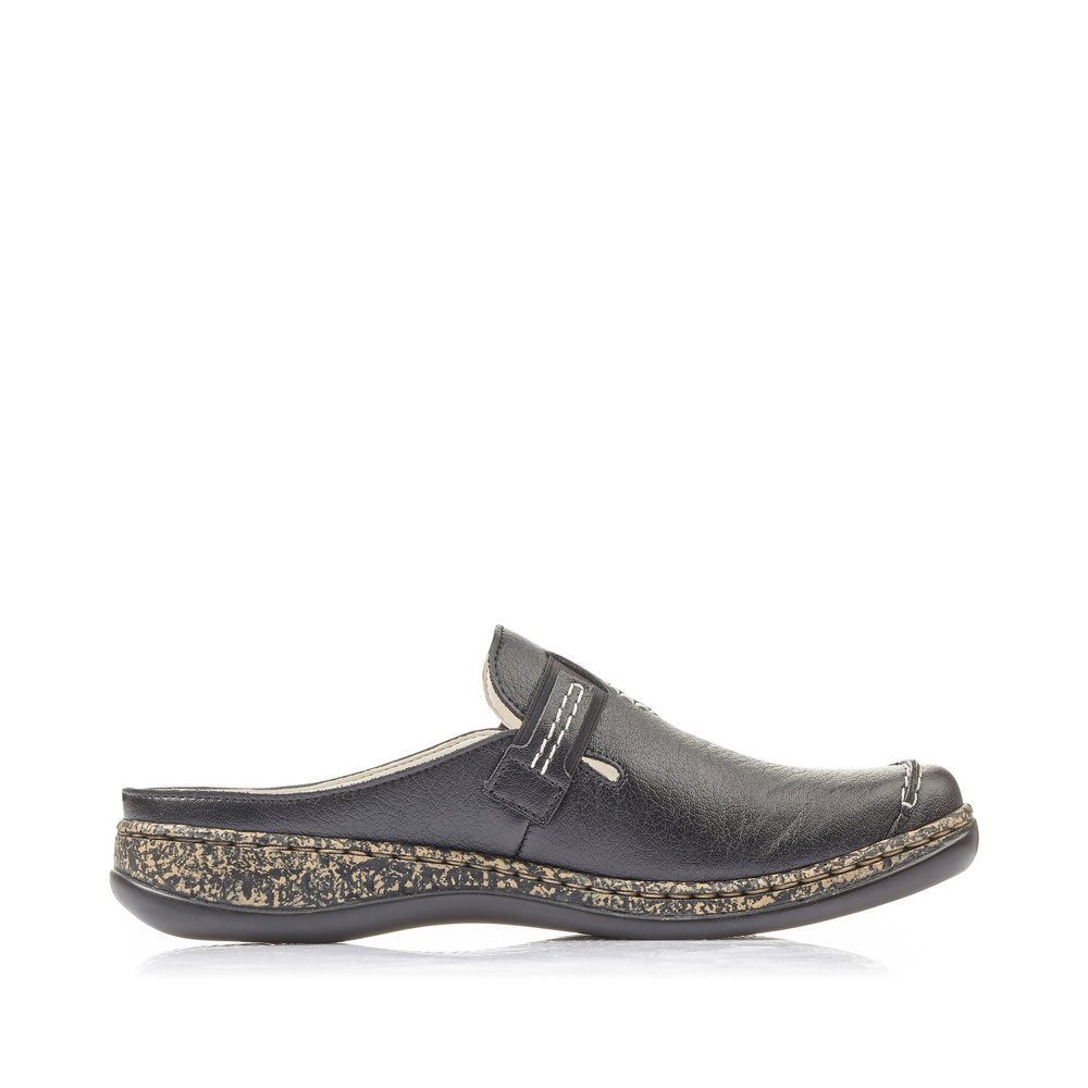 Comfortable and practical! With these black Rieker clogs, you can master your everyday life with maximum style and comfort. This shoe was made using the traditional stitchdown technique, which provides excellent robustness and flexibility. The elastic bands allow for easy donning. The modern decorative stitching gives the shoe that certain something. The shock-absorbing and light sole with wedge heel offers lasting comfort – even on long days. The extra soft cover sole provides additional comfort. Slip in and feel good!