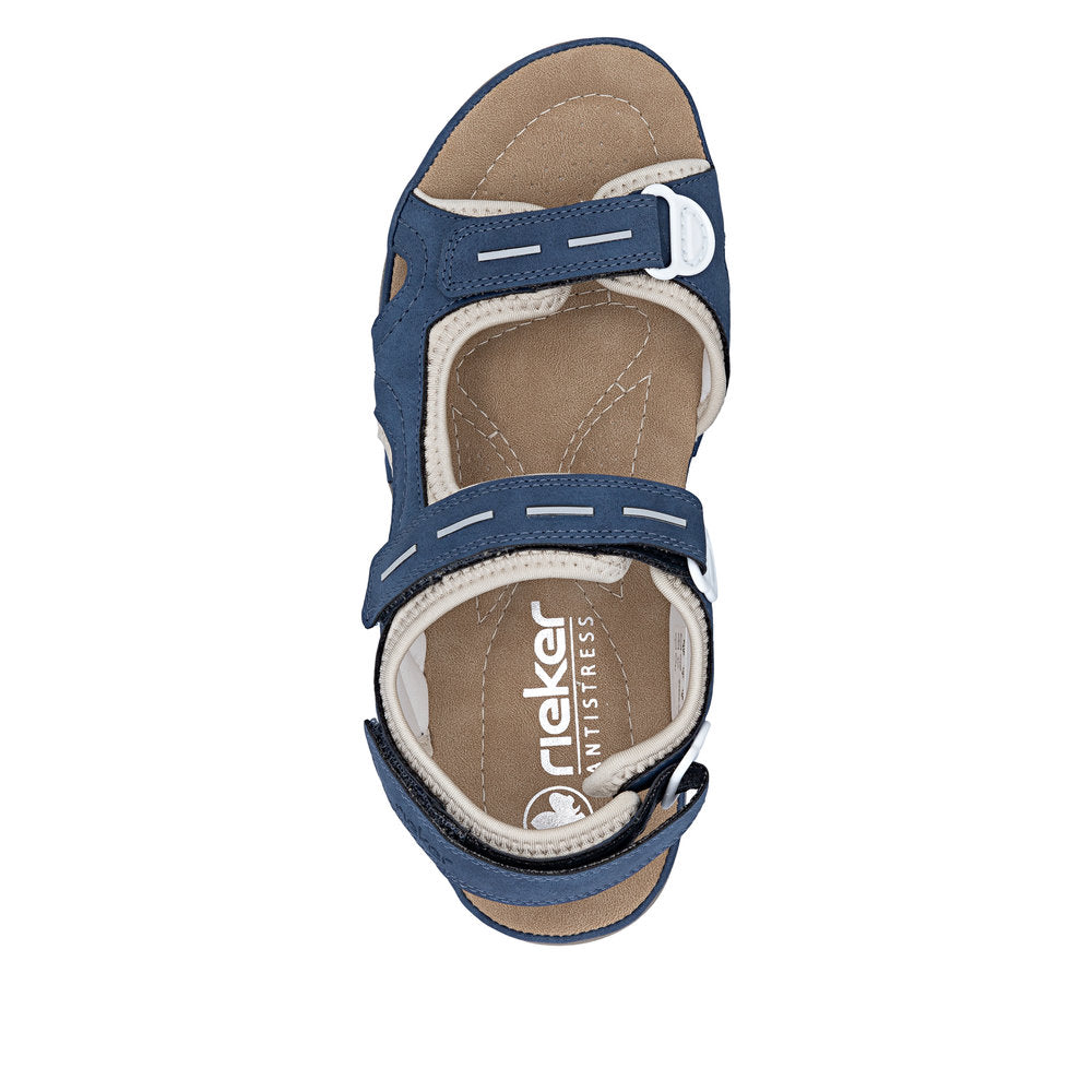 Comfort without compromise! These blue Rieker hiking sandals are comfortable companions. The sandals are put on in no time thanks to a triple hook-and-loop fastener. The shock-absorbing and ultra light sole offers lasting comfort – even on long days. Put them on and feel good!