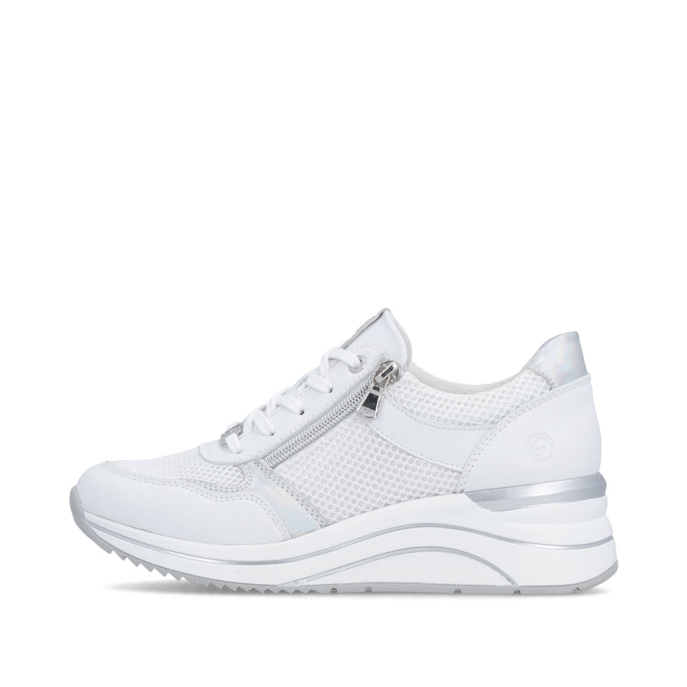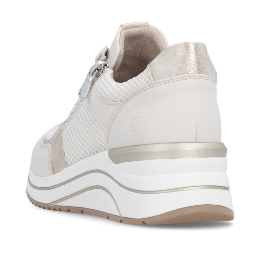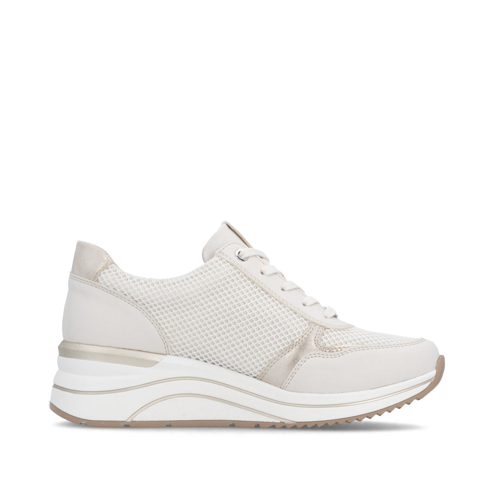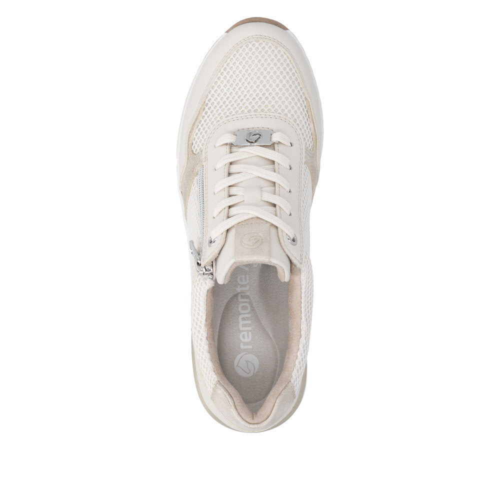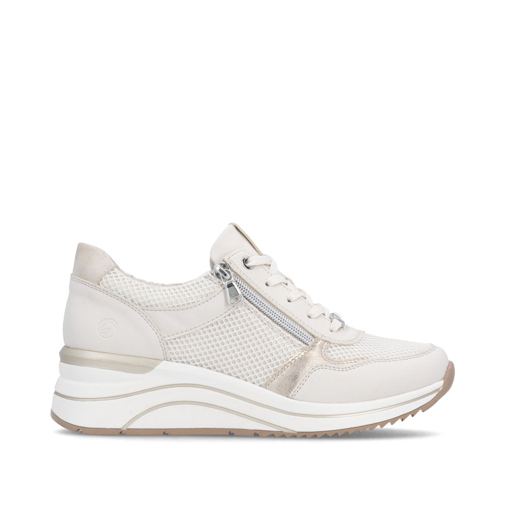 Stylish, comfortable and completely vegan! These beige remonte sneakers are versatile for your everyday life! The clever combination of lacing and zipper provides optimal support and makes the shoe easy to put on and take off. Lite 'n Soft: a padded and removable insole meets an ultra-light outsole. Thanks to the extra width, the shoe not only offers enough space in the forefoot area, it is also available in extended sizes. The microvelour lining is light and breathable. Comfort and elegance combined!