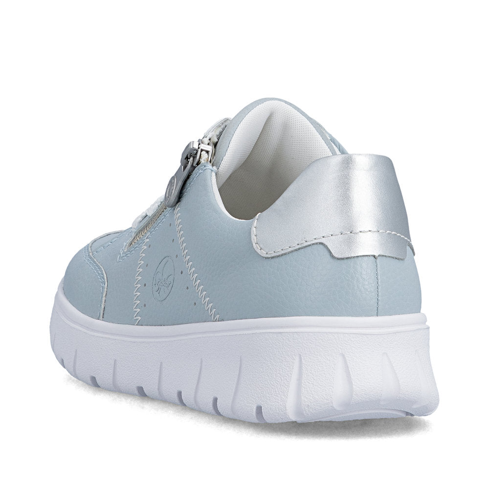 Dream team - style and comfort! These white Rieker low-top sneakers made of smooth leather are perfect for every day. In addition to the lacing, this model is equipped with a zipper that provides optimal support. The flexible and ultra light sole with wedge heel offers lasting comfort - even on long days. With the padded and removable insole, the sneakers have another practical comfort feature. Moreover, the extra width H offers your feet more freedom of movement in the forefoot area. Nothing stands in the way of long walks!