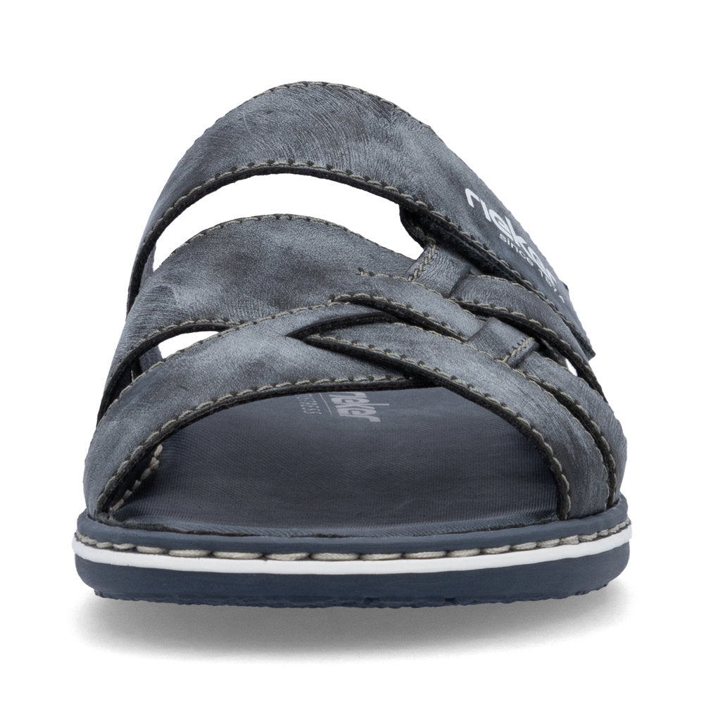Équipe de rêve : style et confort ! La belle saison sera encore plus belle avec ces mules Rieker bleues ! Fabriquées avec une construction cousue, ces mules sont robustes, flexibles et offrent un ajustement parfait. Elles s'enfilent en un clin d'œil grâce à une fermeture auto-agrippante. La semelle légère et amortissante assure une sensation d'amorti agréable à chaque pas. De plus, la largeur confort G offre une plus grande liberté de mouvement à l'avant-pied. Bien-être garanti !