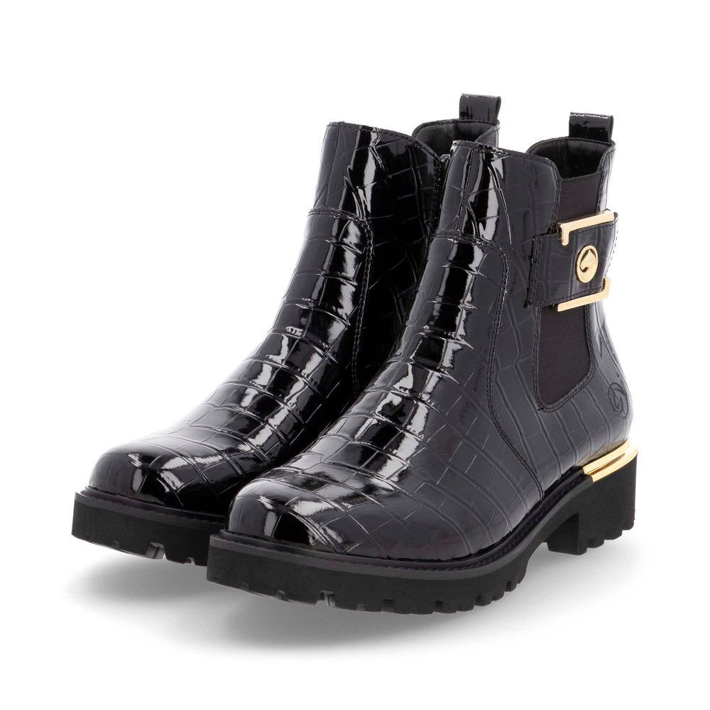 Design tendance et confort : le duo de rêve de la saison ! Ces bottines Chelsea noires Remonte ont le chic pour vous. La fermeture éclair facilite l'enfilage et le retrait. La boucle tendance ajoute une touche tendance. Une semelle ultra-légère et amortissante, ainsi qu'une semelle intérieure rembourrée et amovible, sont autant d'atouts de ce modèle. Leur largeur confort offre suffisamment d'espace pour que vos pieds soient à l'aise, même portés longtemps. Difficile de faire plus stylé !