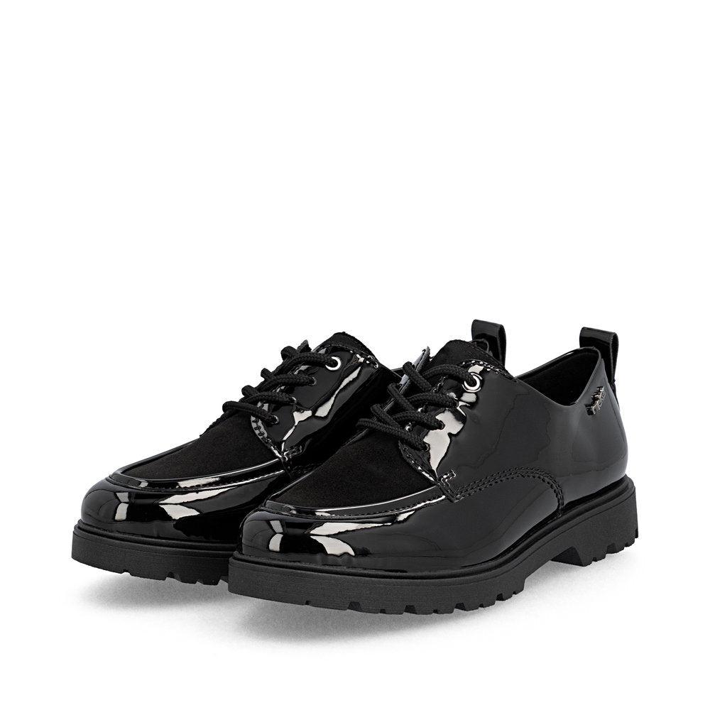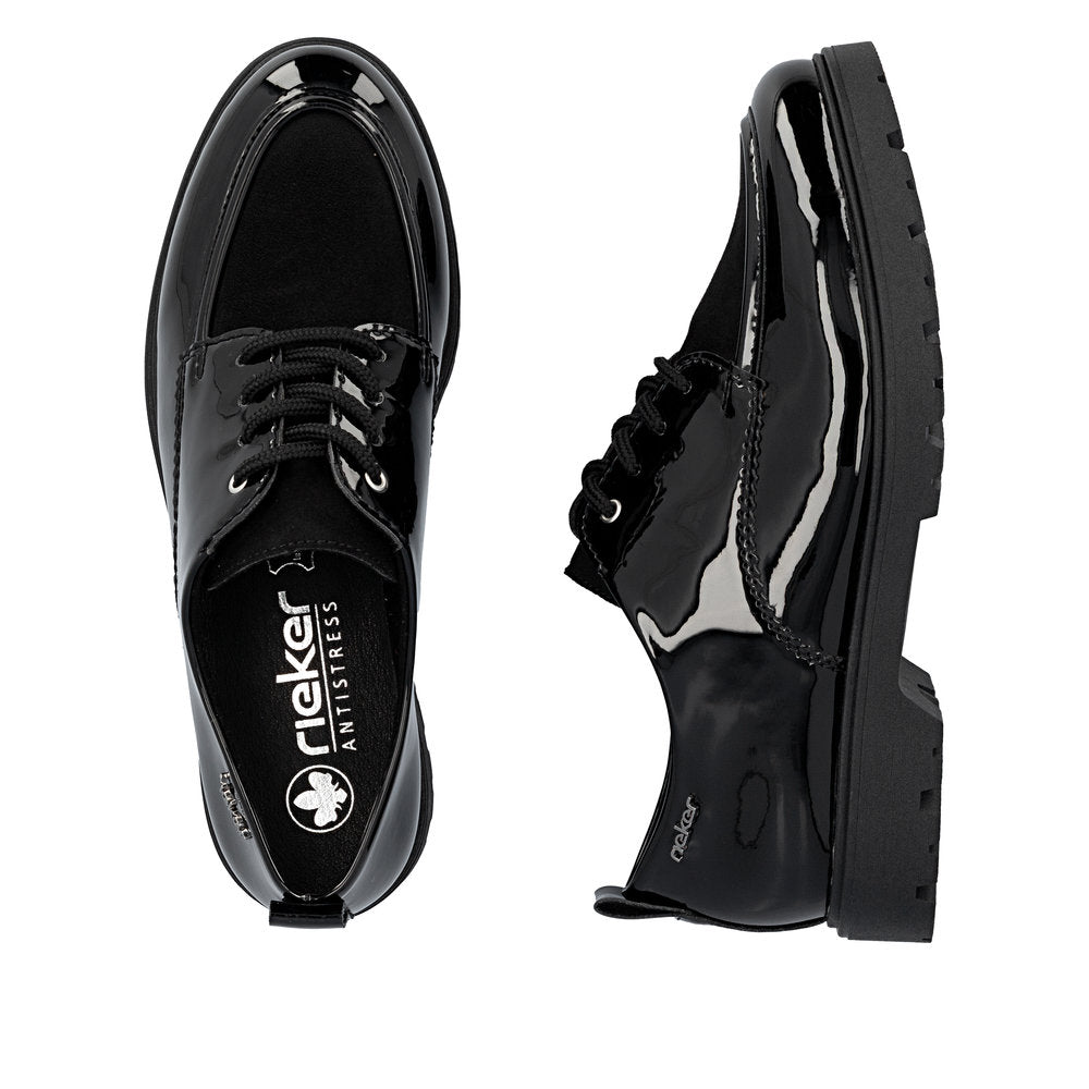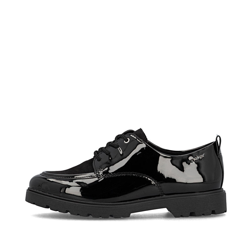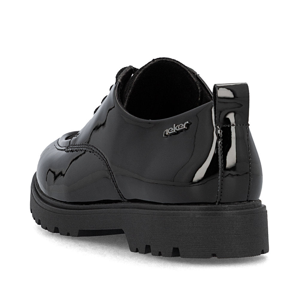Un confort maximal à chaque pas ! Ces chaussures à lacets Rieker noires décontractées sont simples et pratiques. Le laçage assure un ajustement parfait. La semelle adhérente et légère offre un maintien optimal à chaque pas. De plus, la semelle extra-souple offre un confort optimal. Vos meilleures alliées pour la nouvelle saison !