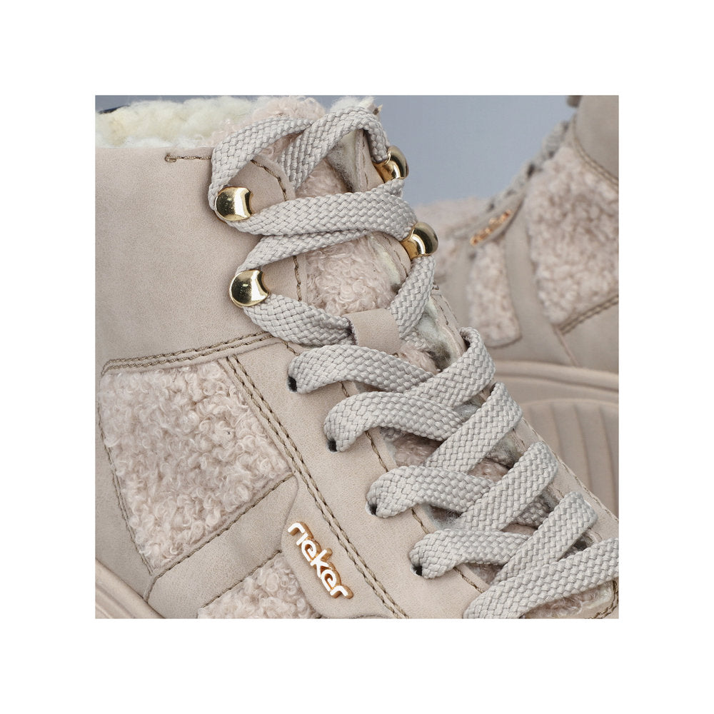 Confortables et pratiques ! Ces baskets montantes Rieker beiges décontractées vous accompagneront partout. Le laçage complète la fermeture éclair et garantit un maintien optimal et un ajustement parfait. Les détails en fourrure teddy rafraîchissent le design. Grâce à leur semelle plateforme légère et adhérente, une marche sûre est un jeu d'enfant. Ces baskets sont ultra-confortables grâce à leur semelle intérieure rembourrée et amovible. Leur doublure chaude et douillette vous offrira également un confort optimal. Un pur luxe !