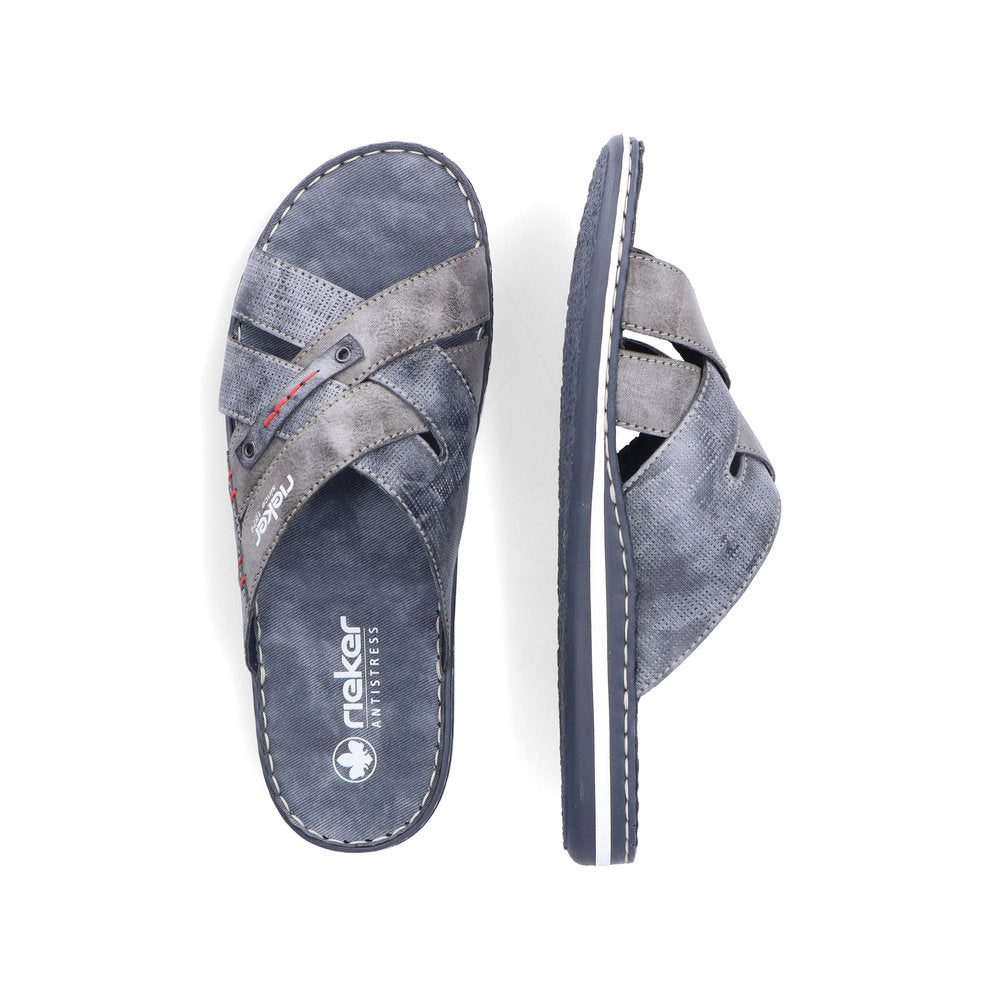 Vos chaussures préférées en perspective ! Avec ces mules Rieker bleues, vous aurez encore plus hâte de profiter du beau temps ! Fabriquées selon la technique traditionnelle cousue-collée, elles offrent une robustesse et une souplesse exceptionnelles. Sans fermeture, elles s'enfilent en un clin d'œil. Les surpiqûres décoratives modernes apportent une touche d'originalité. La semelle légère et amortissante assure un confort optimal à chaque pas. La largeur confort vous offre plus d'espace. Alors, en route !