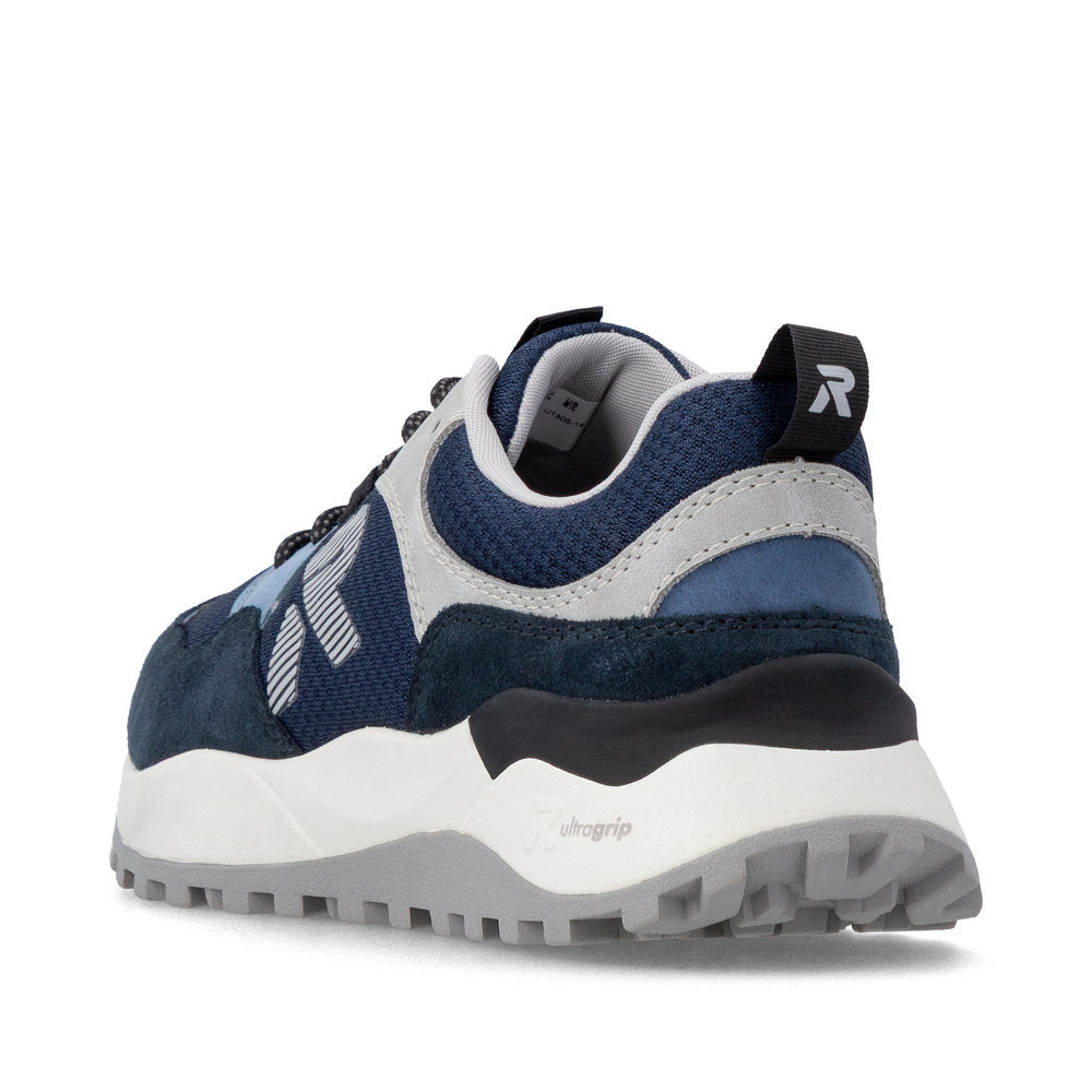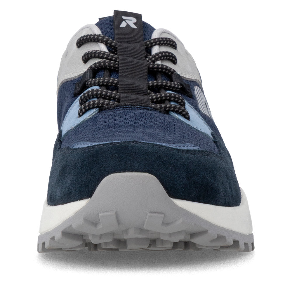 Ces baskets basses Rieker bleu-gris sont confectionnées en textile de qualité. Elles sont dotées d'une semelle intérieure rembourrée, amortissante et amovible, ainsi que d'une doublure légère en microvelours et Drysport respirante. Leur largeur confortable assure un chaussant parfait.