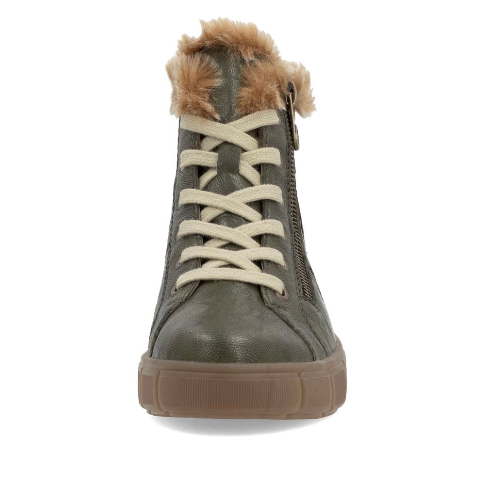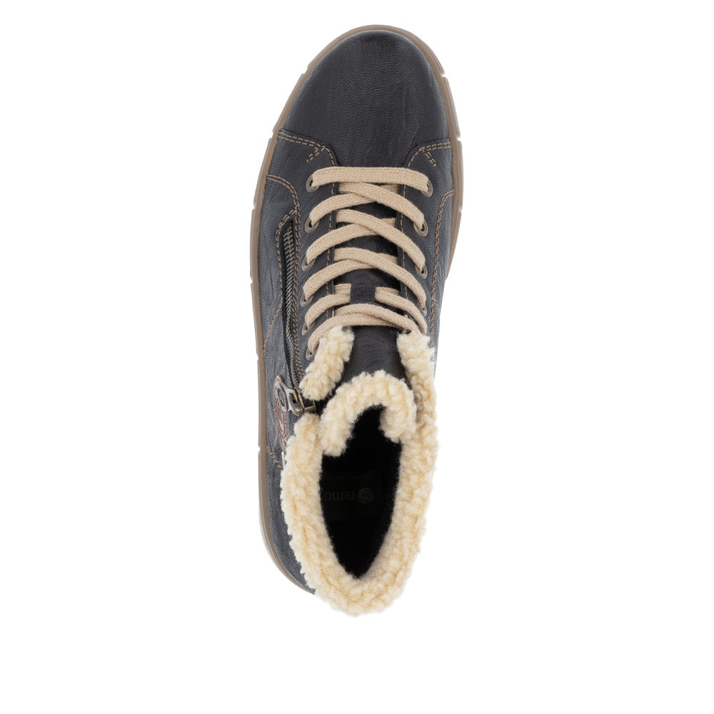 Des pieds heureux, une vie heureuse ! Ces bottines à lacets Remonte marron noir en cuir lisse réchauffent vos pieds grâce à leur doublure ultra-confortable. L'association astucieuse du laçage et de la fermeture éclair facilite l'enfilage et le retrait. Le logo marron ajoute une touche d'originalité. Une semelle souple et adhérente ainsi qu'une semelle intérieure rembourrée et amovible sont autant d'atouts de ce modèle. La largeur confort offre plus d'espace. La doublure en laine vierge douillette et très chaude garde les pieds au chaud, tandis que la membrane remonteTEX assure des pieds secs ! Ainsi, flâner sans souci !
