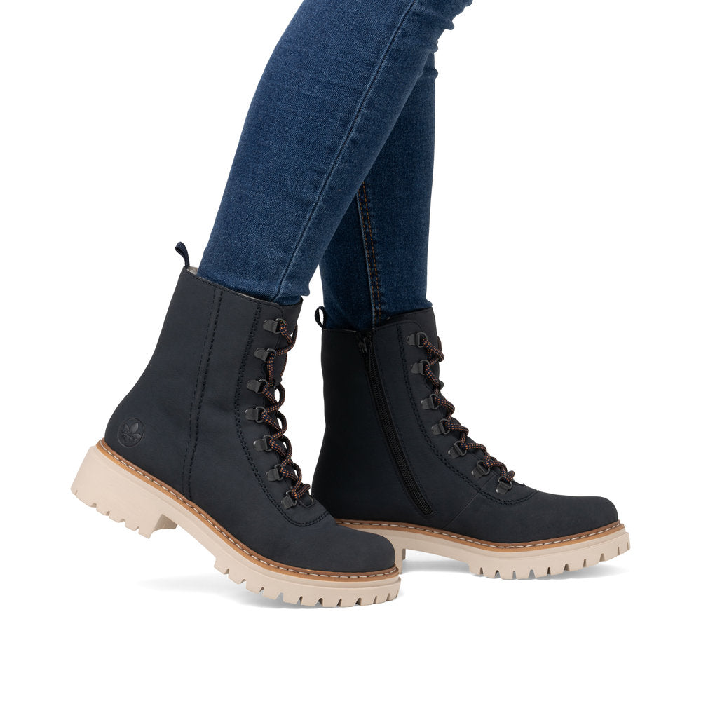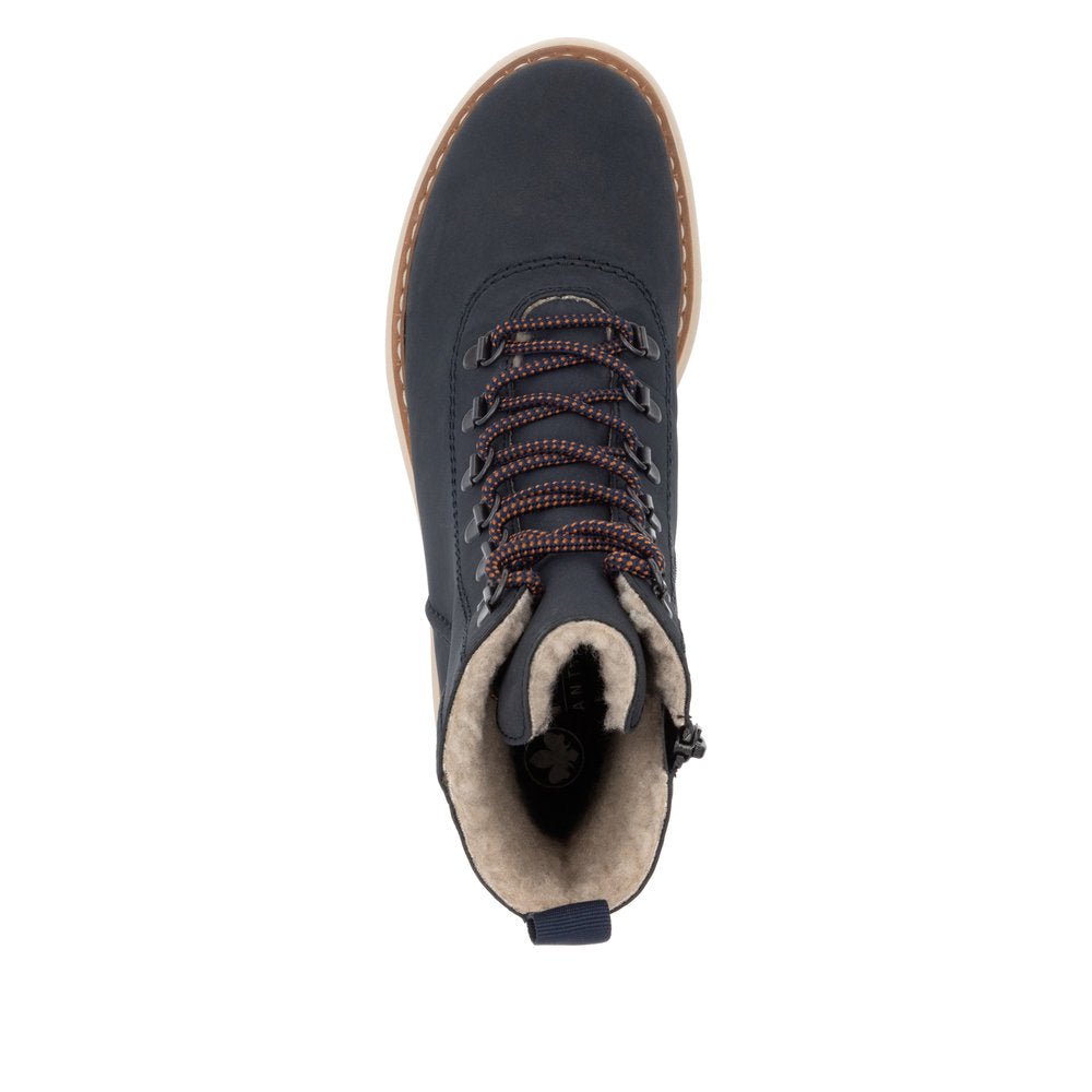 Un véritable coup de cœur ! Ces bottines à lacets bleu foncé Rieker sont un compagnon confortable. Leur construction cousue les rend particulièrement robustes et flexibles. Malgré le laçage, la chaussure se ferme facilement grâce à la fermeture éclair. La semelle légère et amortissante assure une bonne adhérence, tandis que la semelle extra-souple est un atout supplémentaire. Vos pieds resteront au chaud toute la journée grâce à la doublure douce et chaude. Le froid n'aura aucune chance !