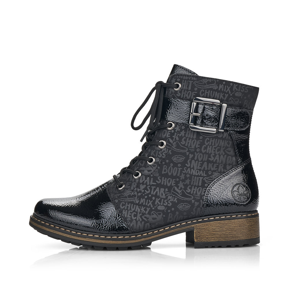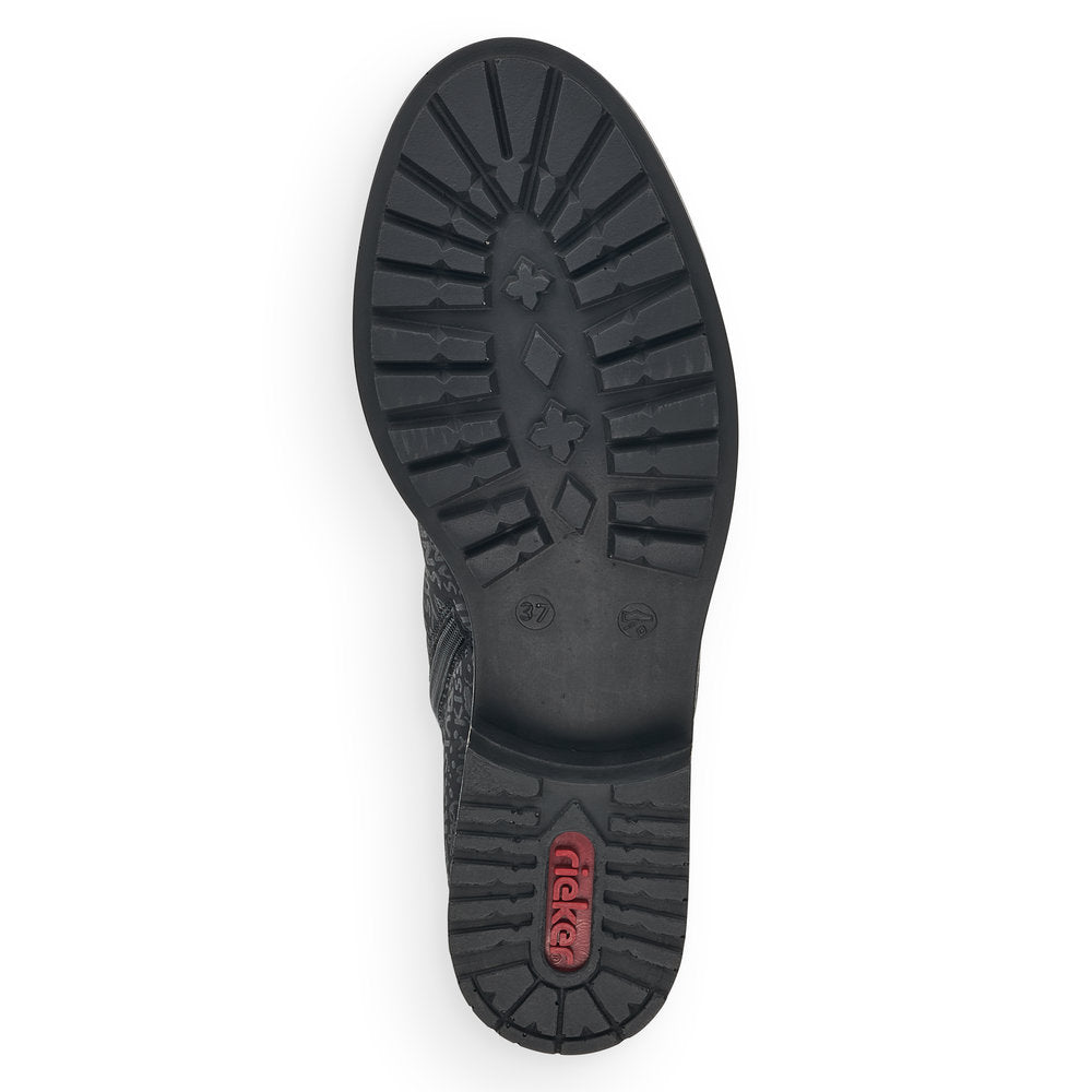 Rebellement cool et résolument tendance, ces bottes motardes Rieker noir asphalte séduisent par leur design moderne et leur confort exceptionnel. Leur construction traditionnelle à coutures apparentes rend la chaussure particulièrement souple et robuste, tout en garantissant un ajustement parfait. Le laçage complète la fermeture éclair, garantissant ainsi un maintien optimal et un ajustement parfait. La boucle décorative sur le côté apporte une touche tendance. Grâce à leur semelle légère et amortissante à talon bloc, vos pieds profiteront d'un confort de marche optimal à chaque pas. Autre atout : leur semelle extra-souple. Un tout-en-un : le top !