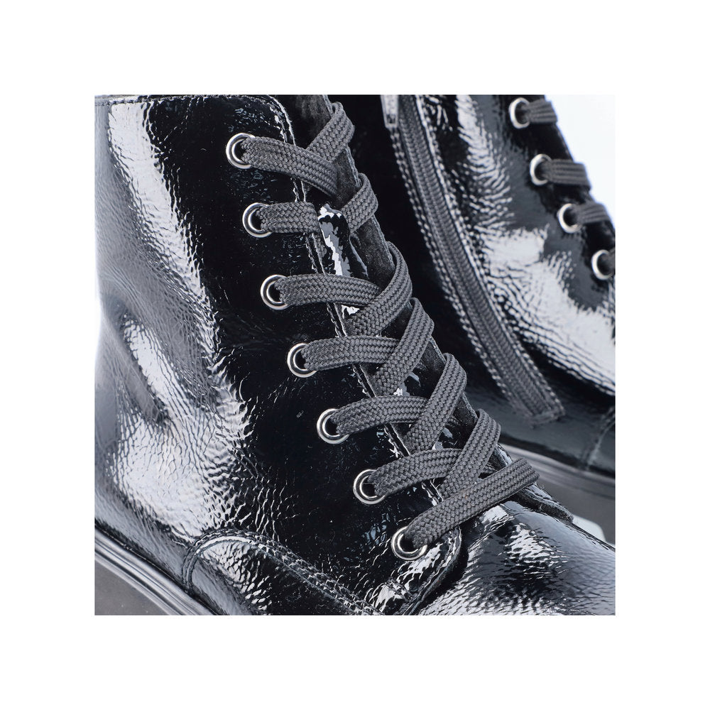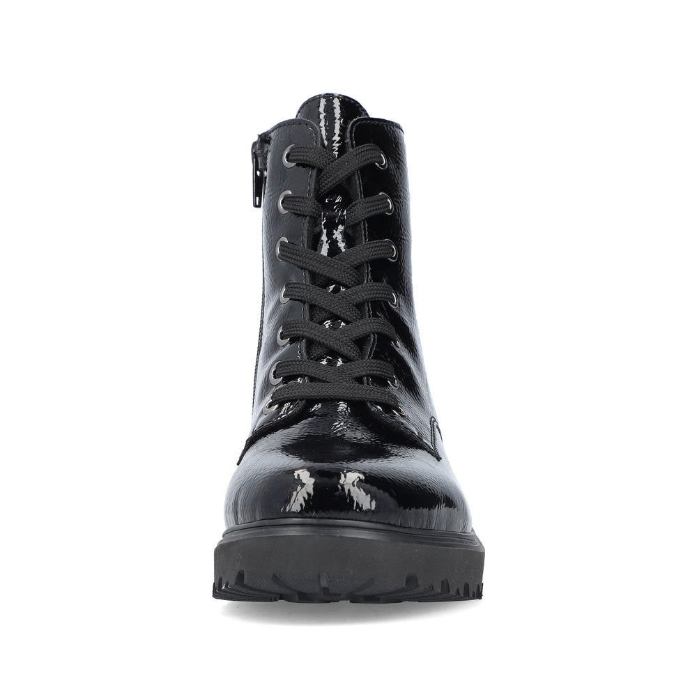 Un confort maximal à chaque pas ! Ces bottines à lacets Rieker noir brillant vous garantissent une sensation de bien-être. L'association astucieuse du laçage et de la fermeture éclair facilite l'enfilage et le retrait. La semelle à talon bloc est à la fois ultra-légère et flexible, offrant un double bien-être à chaque pas. Grâce à leur semelle intérieure rembourrée et amovible, ces bottines à lacets offrent un confort supplémentaire. Ce modèle offre une liberté de mouvement accrue grâce à sa largeur confort G. La doublure douce et chaude garde les pieds bien au chaud toute la journée. Le froid n'a aucune chance !